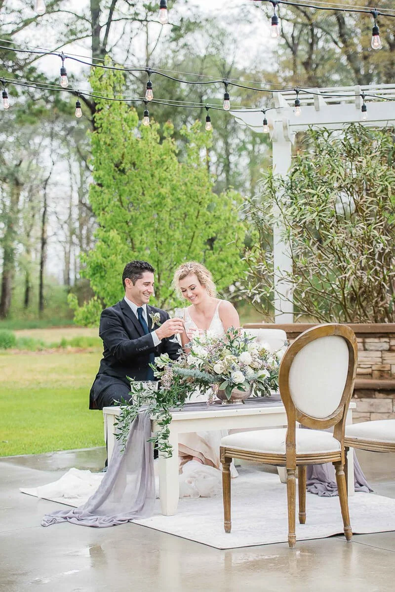 From the photographer: Neuse Breeze, one of our all time favorite venues in the Crystal Coast - overlooking the sound on the Neuse River in Havelock, NC. This styled editorial project was designed by Taylor with Whimsically Wed along with Whitney from W Designs. We wanted to draw inspirations from the soft and timeless feel of this beautiful venue. We just felt that the light blue colors, along with some pastels and greens projected the palette in mind.