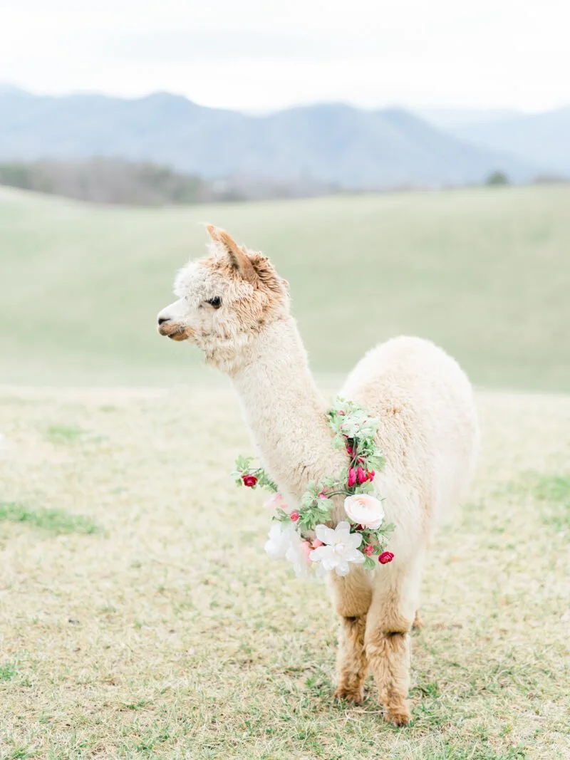 This awesome styled shoot was full of love, freezing temperatures, gorgeous florals, and tons of cuteness including two adorable alpacas fit with floral neck garland. The group of vendors was incredible and I was so thrilled to be a part!