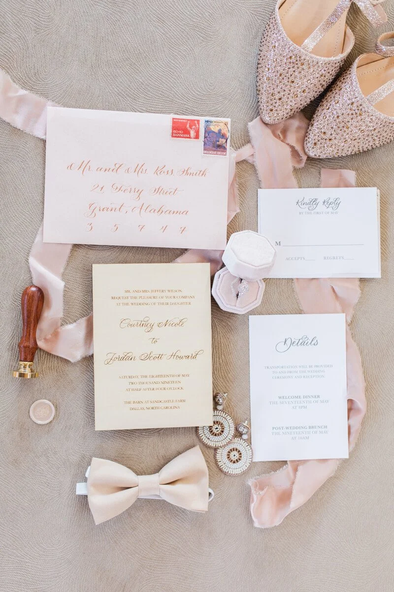 Apparel: Beautiful Idiot Clothing//Model: Caleb Sutton Model//Groomsman Attire: The Bold Bow Tie//Model: Katie Self Model//Apparel: Beautiful idiot clothing//DIY or Handmade Goods Designer: Honey Silks & CO//Calligrapher: Cut Above Stationery//Dress Store: Poffie Girls//Floral Designer: Wildflowers Floral Design//Bakery: Lets's Get Baked Artisan Desserts//Hair Stylist: Payton Kendrick//Makeup Artist: Cale Lassiter//Event Designer: A Bushel and A Peck Vintage Rentals//Equipment Rentals: Vintage Chic Rentals And Designs//Location: The Barn at Sandcastle Farm//Photographer: Jessica Dugener Photography
