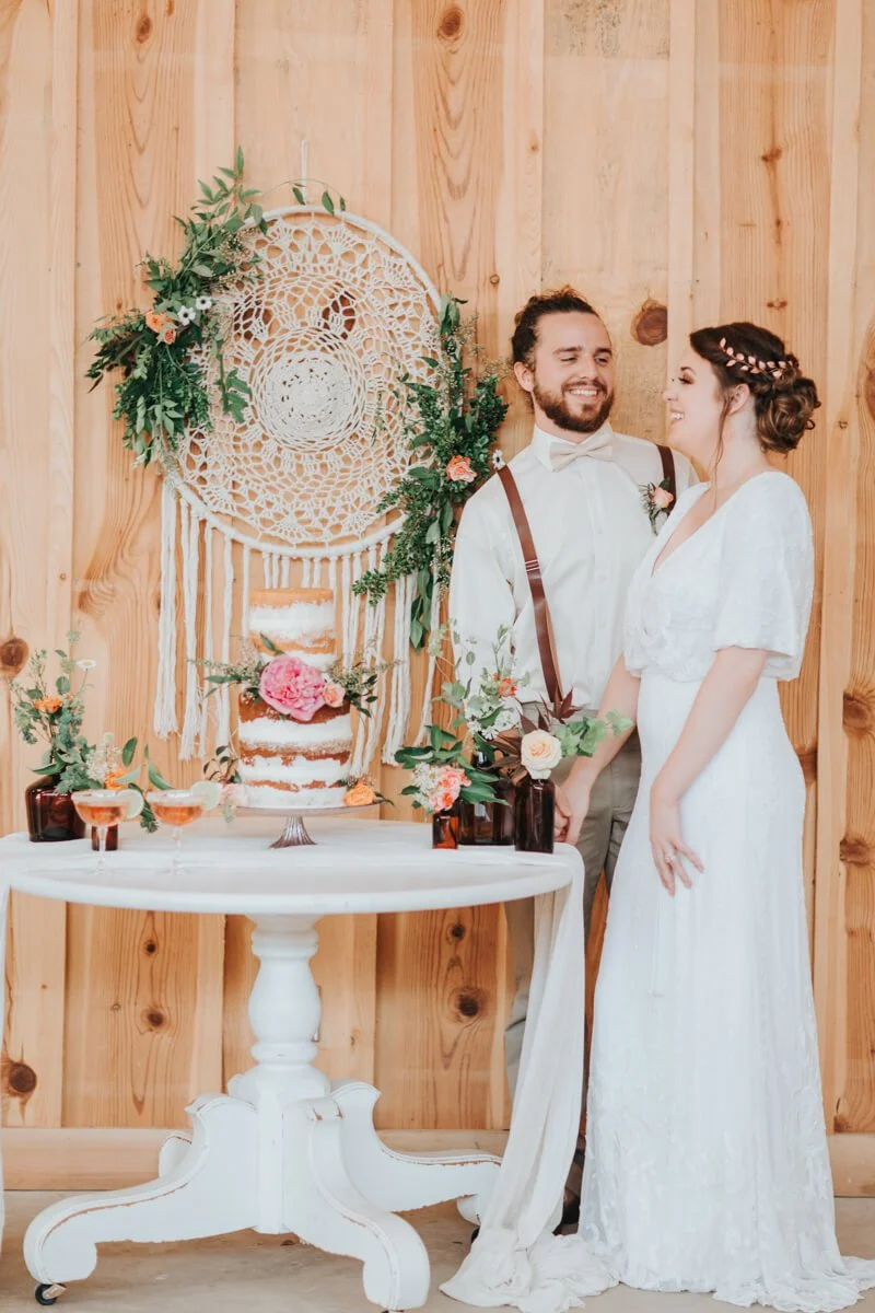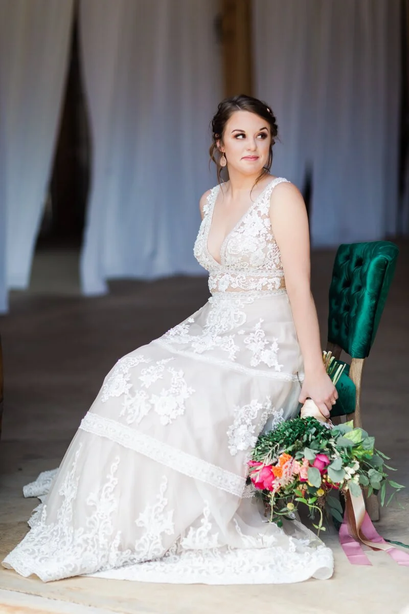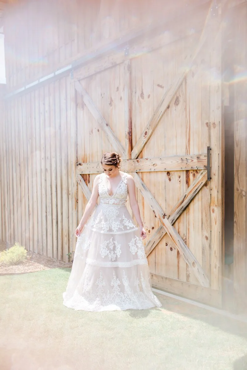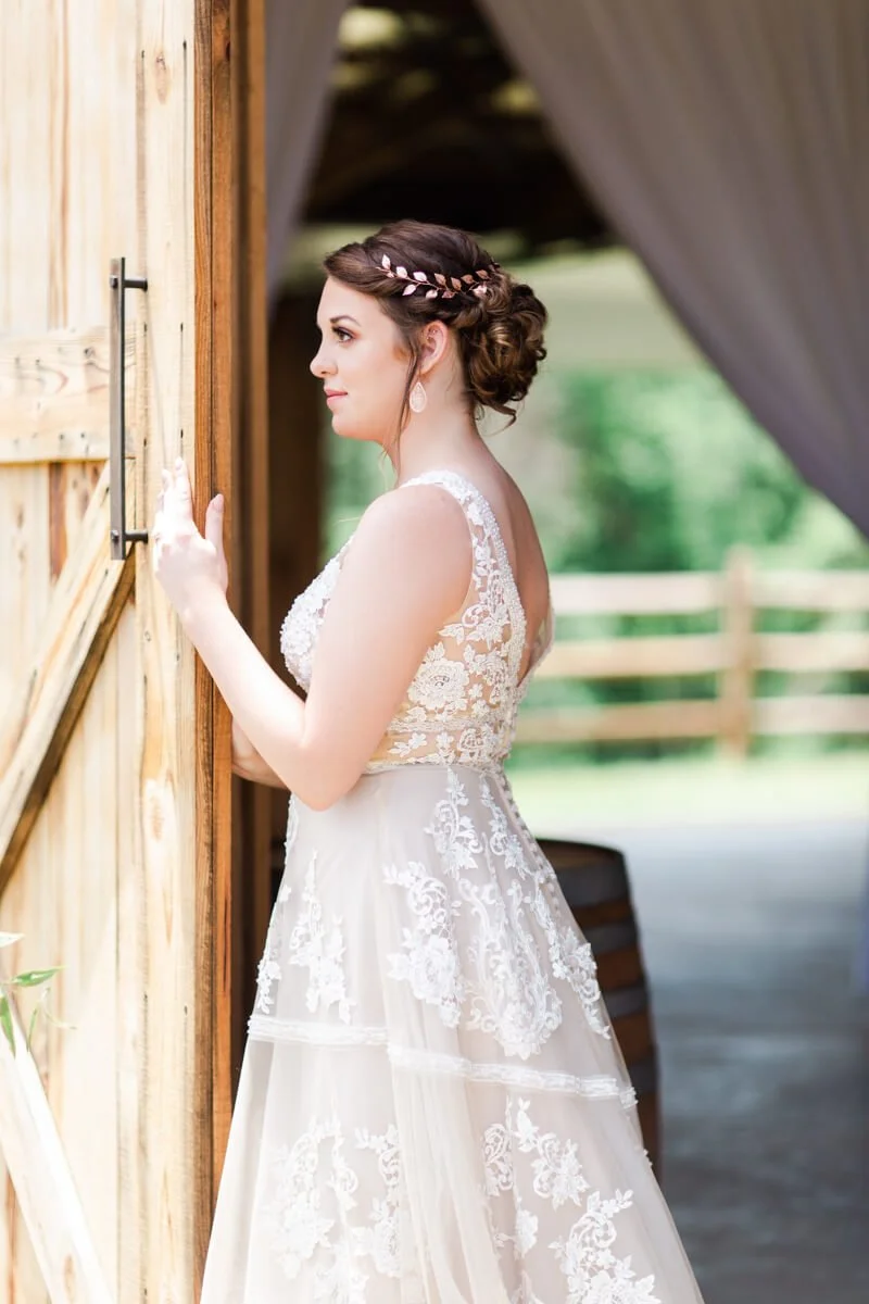 The lush green foliage and Barn at Sandcastle Farm were the perfect setting for this beautiful boho inspired styled shoot. This wedding shoot was organized by Kayla Adams Photography of Dallas, NC.