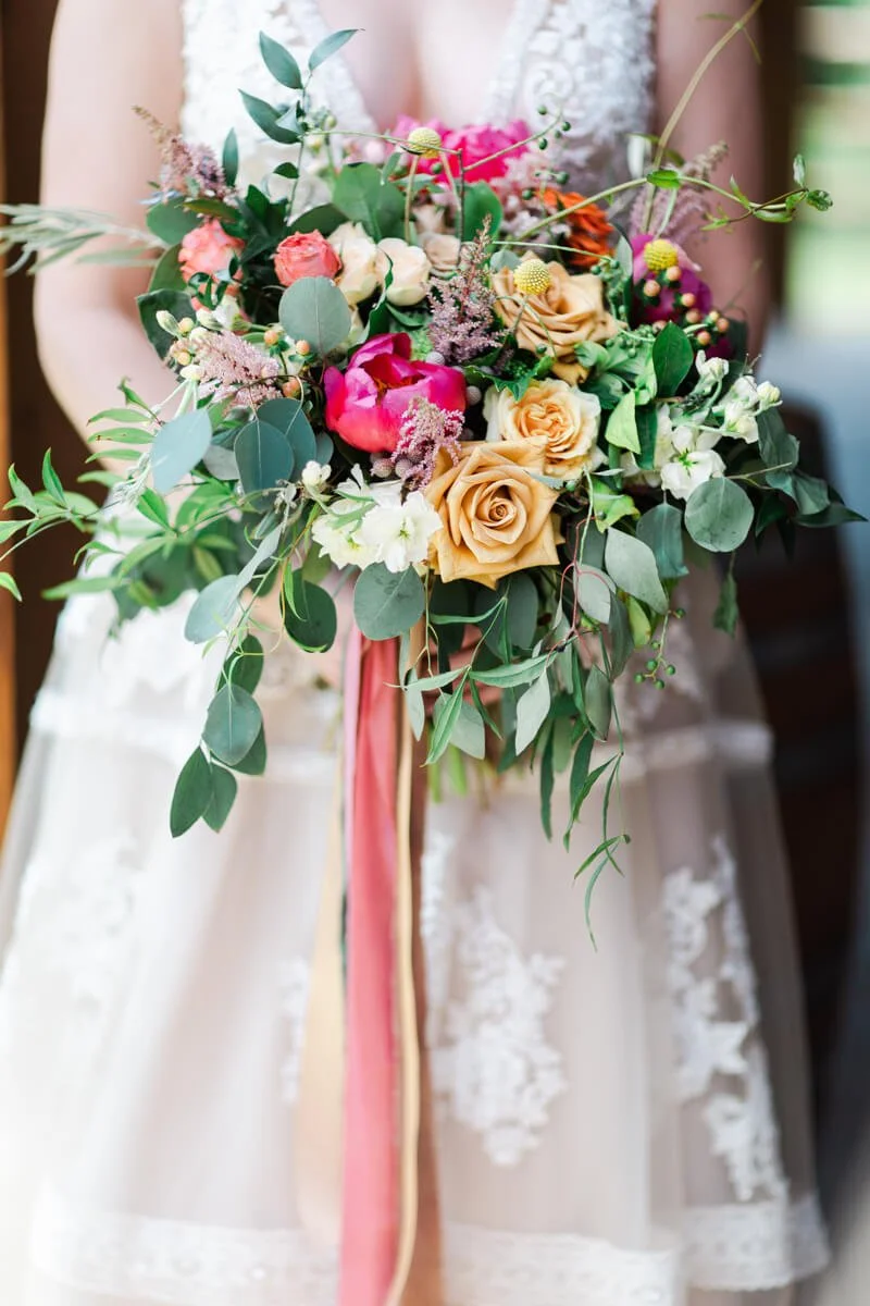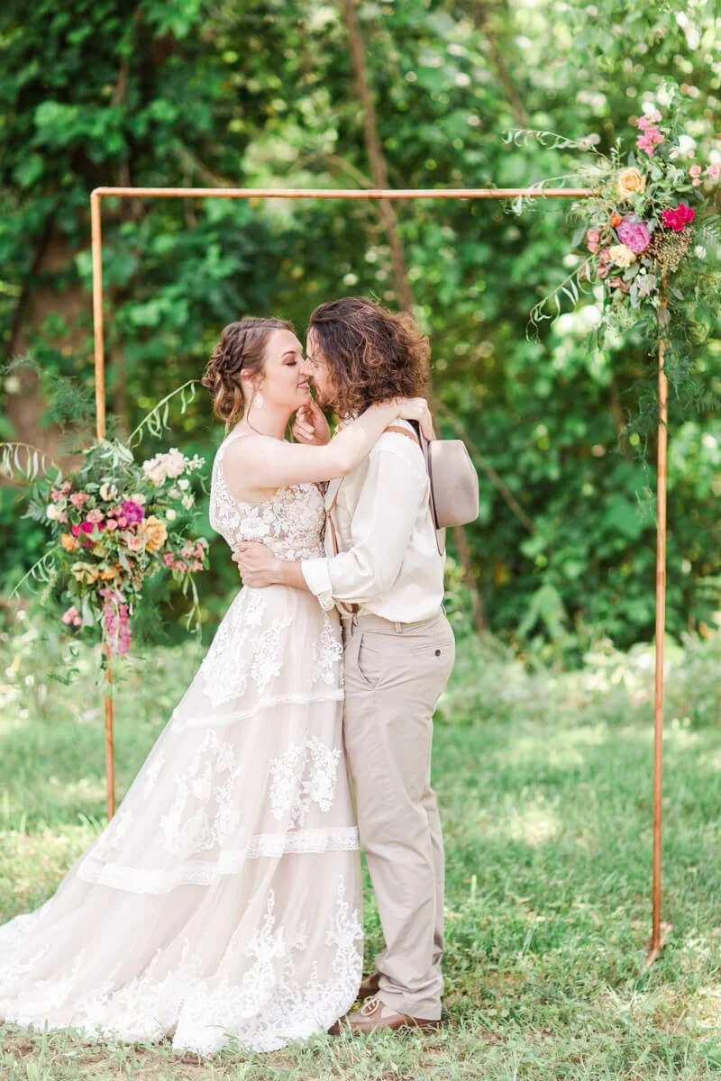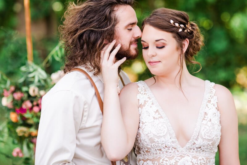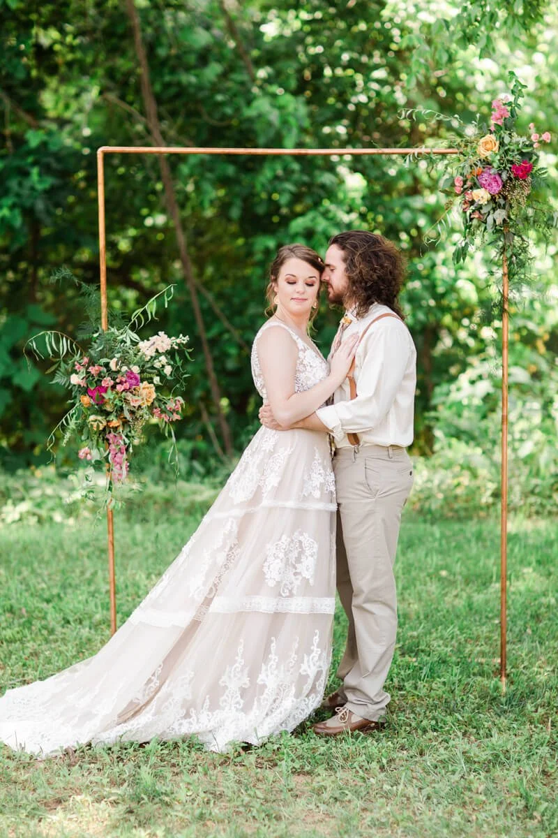 The lush green foliage and Barn at Sandcastle Farm were the perfect setting for this beautiful boho inspired styled shoot. This wedding shoot was organized by Kayla Adams Photography of Dallas, NC.