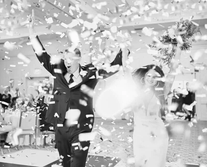 Afterward, we had plenty of time for portraits around the grounds of Wild Dunes - the shady back roads and private golfing greens made for a perfect place to catch the sunset. The most stressful part of the day for Erica, the planner, and I, was timing the confetti cannon just right so that it shot as soon as the couple stepped onto the dance floor - and as you can see, we nailed it!