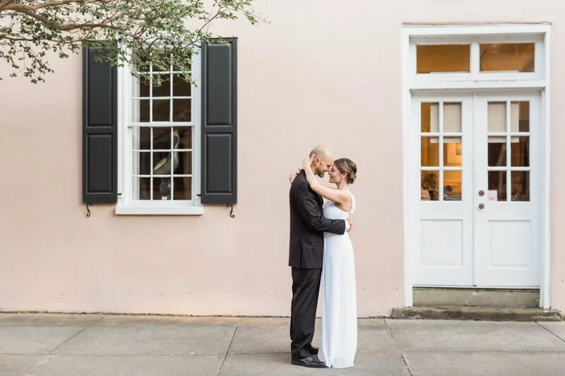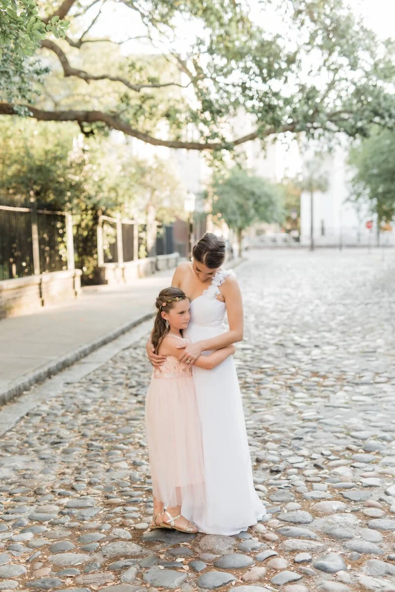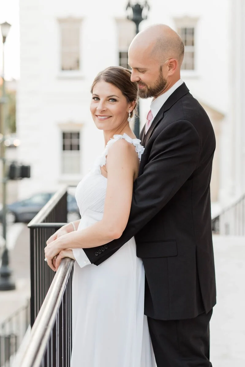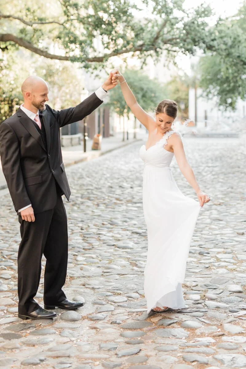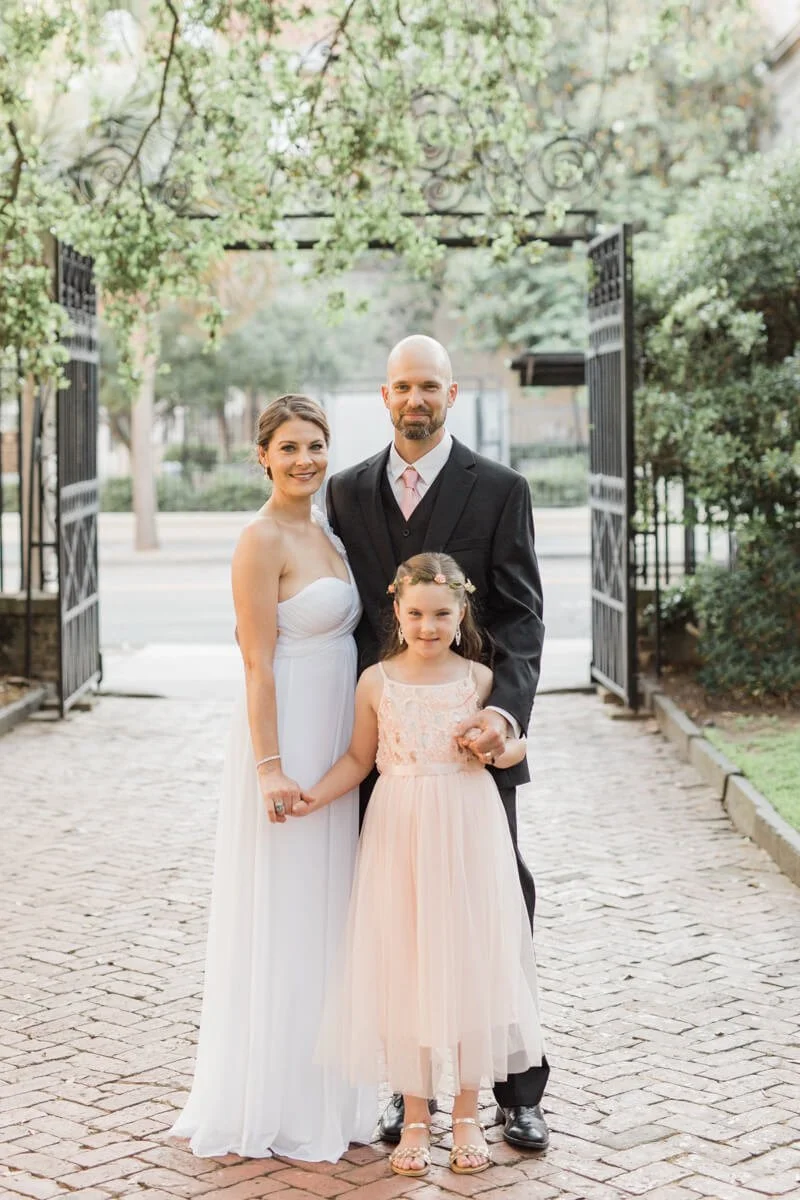 Lindsey and Aaron decided to celebrate their 5 year wedding anniversary by re-creating their wedding portraits. They wanted to finally have portraits that they wanted to print and frame in their home. So, along with their daughter, they dressed up in their wedding attire and danced around downtown Charleston. They shared kisses on marble staircases. They created memories that will last a lifetime!