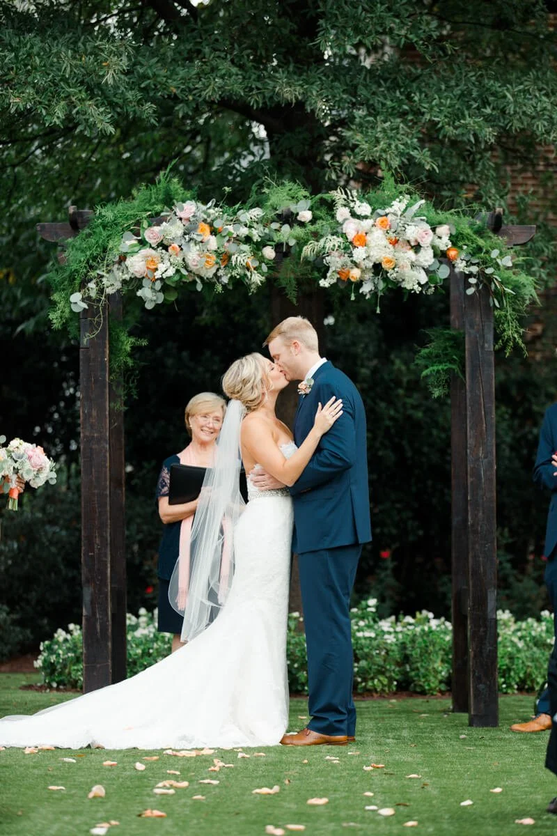 After the intimate outdoor ceremony, guests gathered on the Merrimon-Wynne House’s gorgeous lawn for cocktail hour as the sun set before heading into the carriage house for the reception. As grateful as they were to be surrounded by so many loved ones, one of the most special memories of the day was the time Anne and Kyle spent alone right after the ceremony for a few portraits. The joy they found in their new marriage was palpable, and I know that being in the presence of their love inspired their guests as much as it did me.