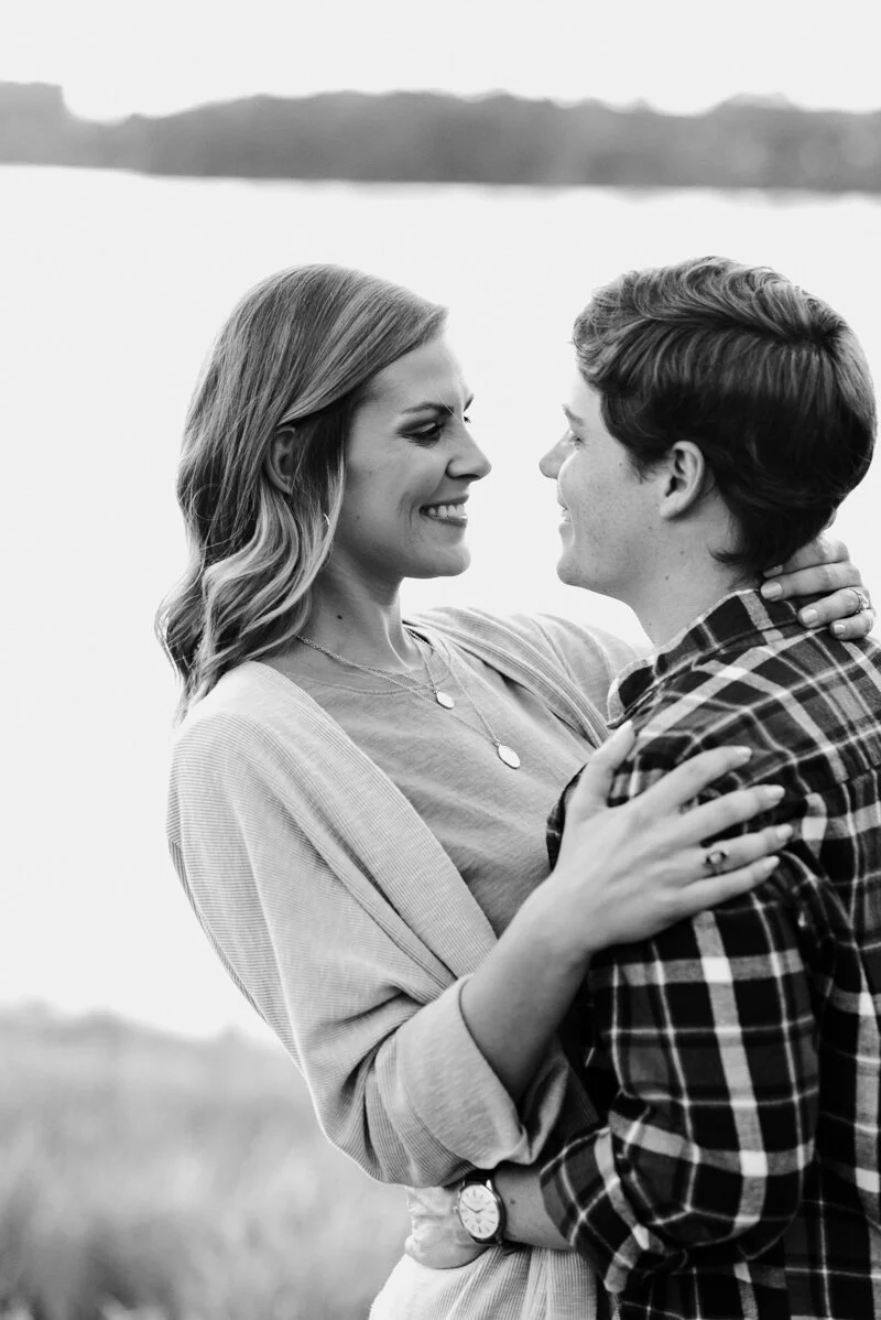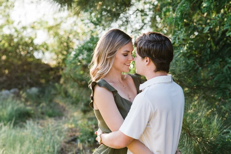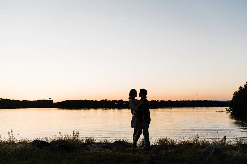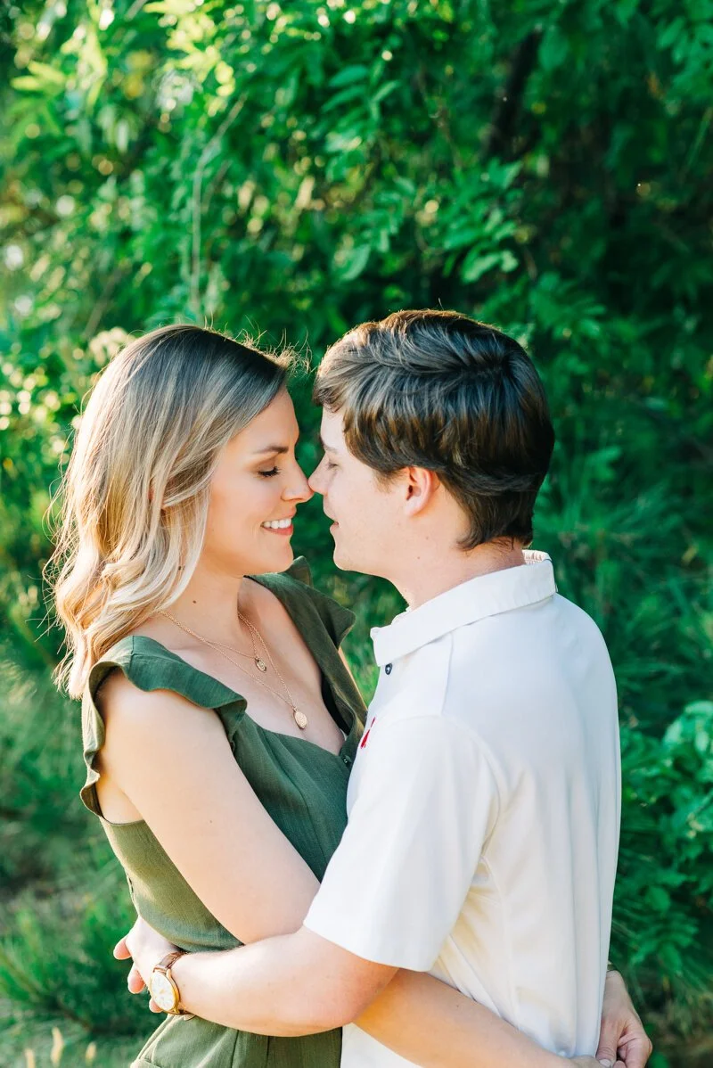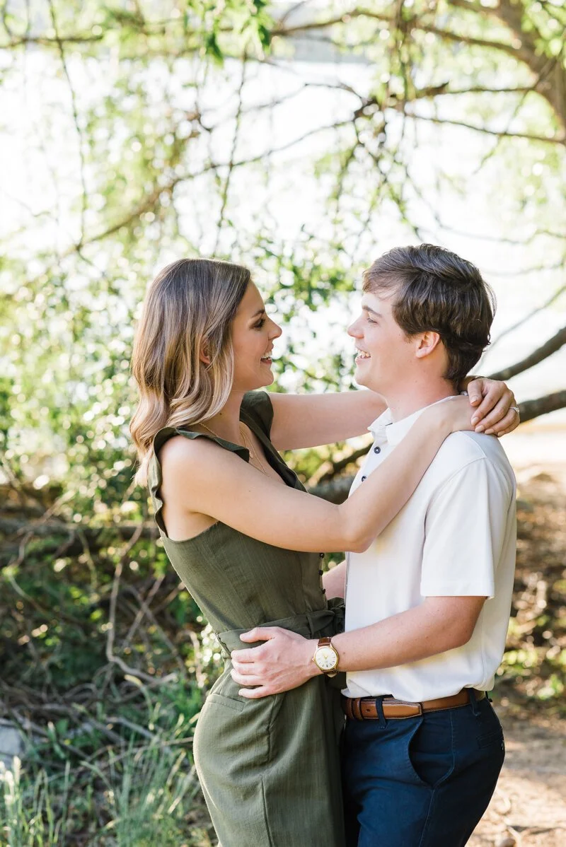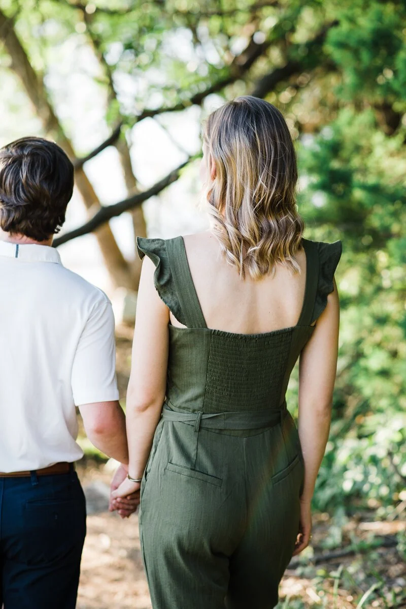 A: Like many proposals, I was at the point where she was starting to get impatient waiting for that ring! Eric and I had talked about our timeline and what we wanted and we were on the same page, but he would not give up any clues. Thanksgiving holiday arrived and I had friends getting engaged and I was so confused why he hadn't popped the question yet. He just kept telling me to "Trust him." We decided together to have more date nights because he hadn't been going out as much, so Eric planned a date night for the first Friday in December. I honestly thought it was regular date night. He told me it was a surprise, and for some reason, I still was not suspicious. I wasn't even suspicious when he told me he wanted to start the date 2 hours earlier than we had planned! We started at the local wine bar which we could walk to from my house, he told me there was another surprise before the surprise dinner that we had to drive to. On our walk back to my house he said he wanted to go look at the tree in the square and I didn't really want to but I saw some students caroling so I said okay. Turns out the kids were my students from the school I yeah at so I stood and listened to them. Eric disappeared to the other side of the tree hoping I would follow him and I didn't so he had to come to get me around this huge tree and make me go to the other side. As soon as I saw his face when he pulled me to the other side of the tree, I knew what was happening. He pointed to an ornament that said "will you marry me?" and the rest is a blur. I do remember his best friend running down the hill out of nowhere trying to take pictures and me taking the ring out of the box and putting it on myself because I was so shocked and excited! The next hour we called family and friends and then had a lovely dinner at our favorite restaurant. The next day he surprised me with my best friend at the ACC championship game in Charlotte and it was a perfect weekend!