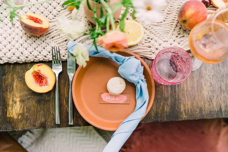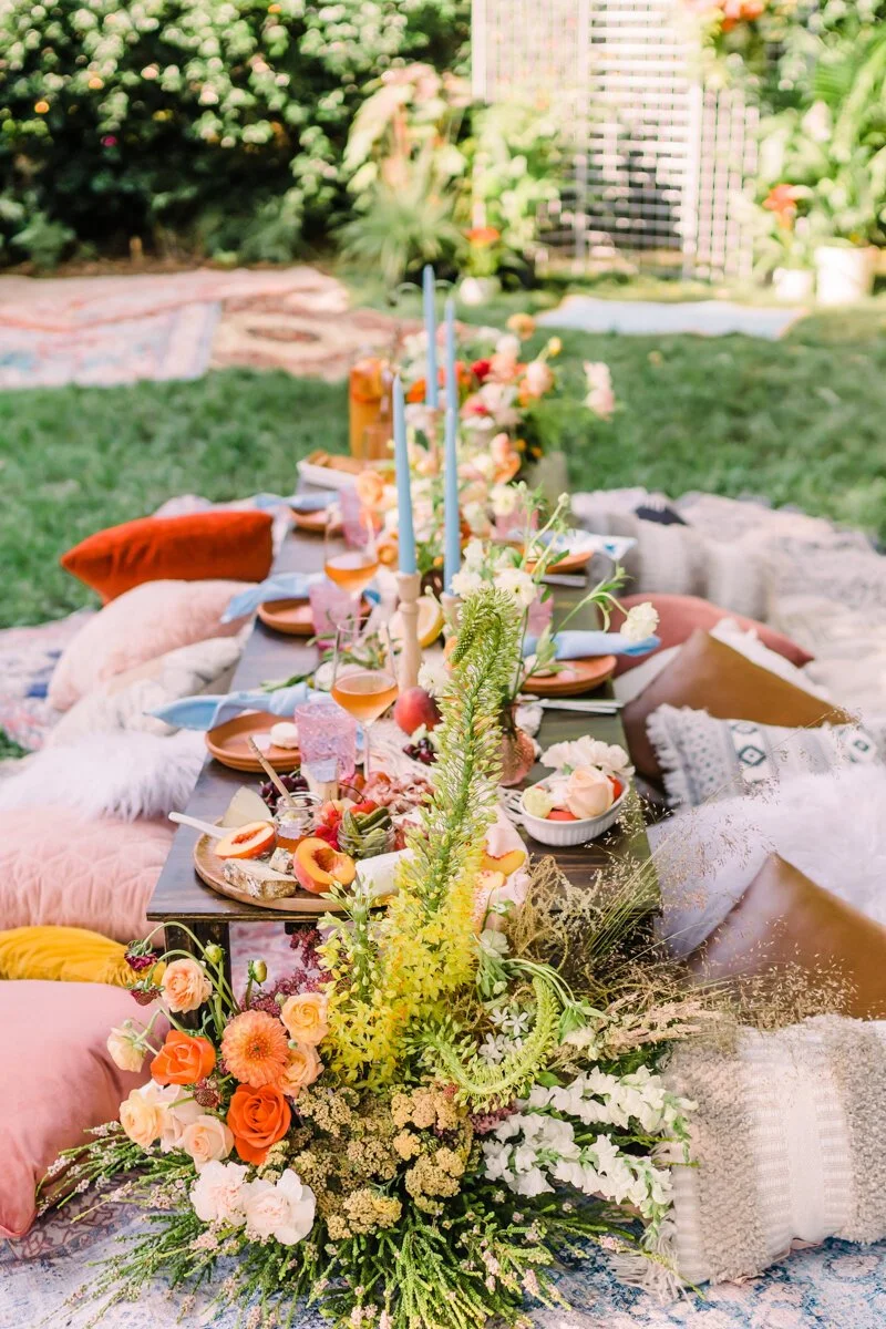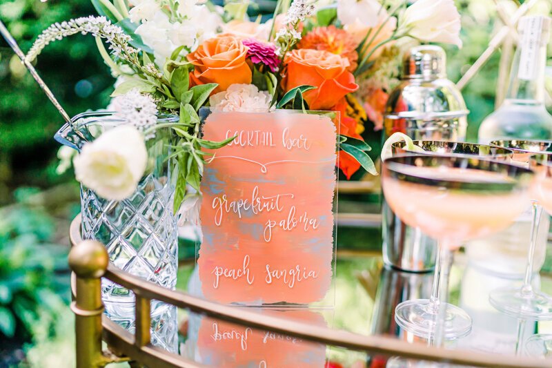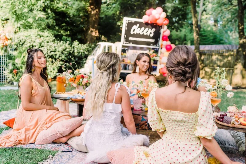 A florist and a photographer put their creative minds together to create a bright, citrus-inspired styled shoot in the midst of a quarantine-summer. The models were all friends and a real-life group Charlotte power-women, including an actual #COVIDBride who had her own shower postponed due to the restrictions. Another model was the hilarious creator behind the popular wedding Instagram account @wish.I.knew.before.I.do, who has been providing inspiration and tips for brides based on her personal experiences with wedding planning. Makeup and hair services were provided by the Insta-famous duo behind LookLoveBeauty.