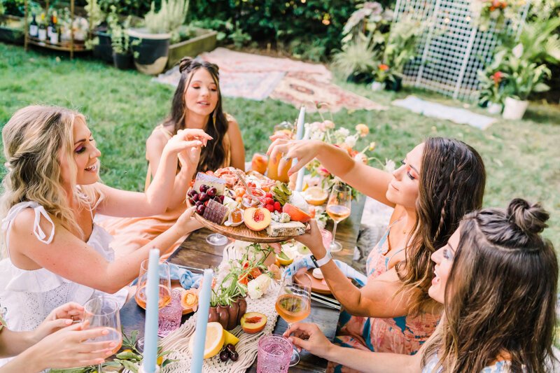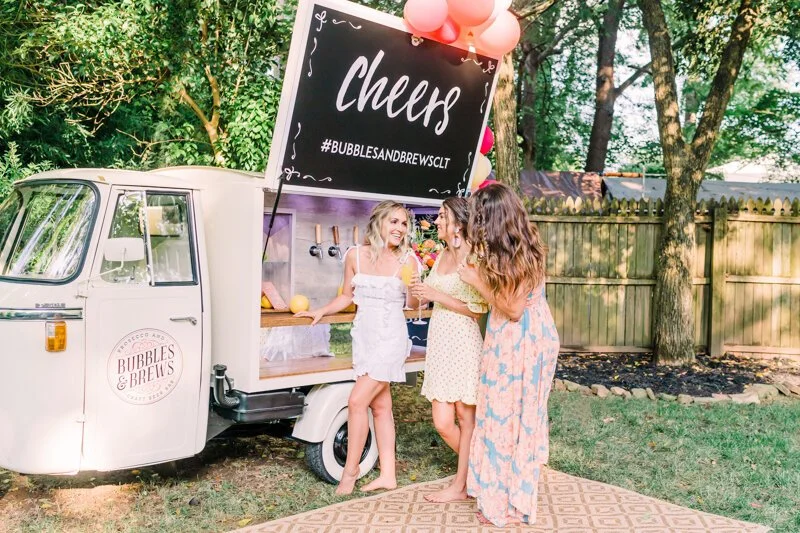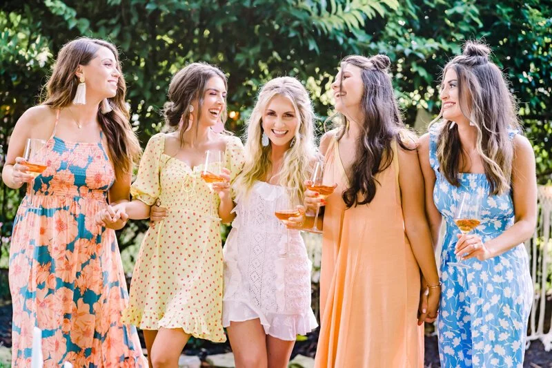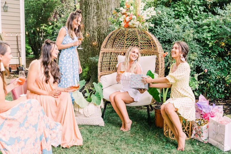 Within a matter of a week, the group of phenomenal Charlotte-area vendors was on board to plan this whimsical backyard bridal shower styled shoot for a real bride. The night was less of a shoot and more of an hour-long hang out with girlfriends, filled with a lot of laughs, even more rosé, and the most Instagram-worthy outfits curated by style consultants, Prept.