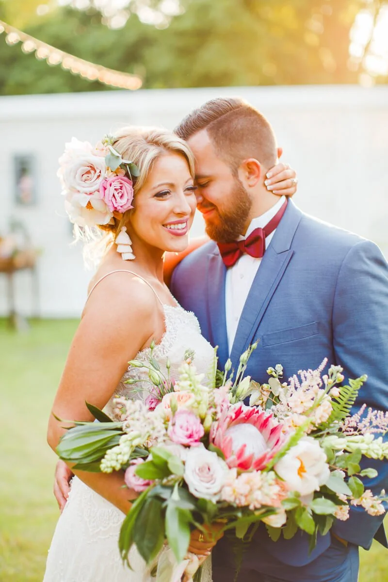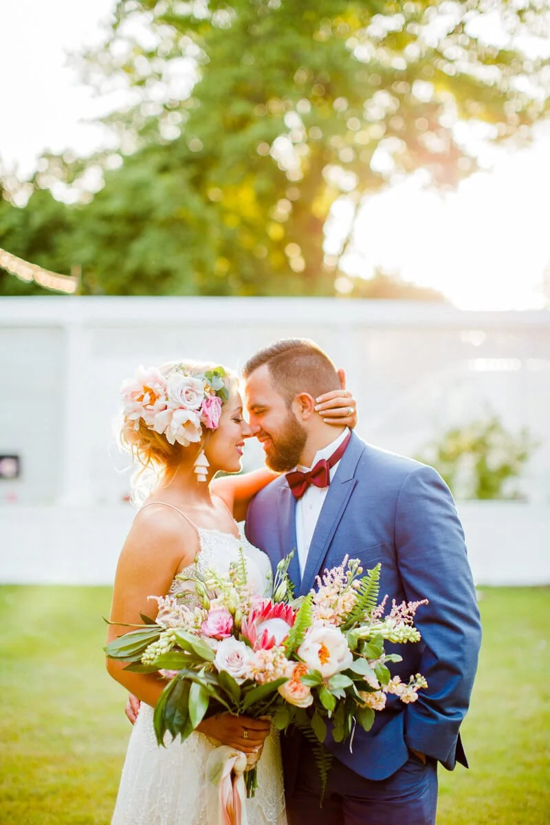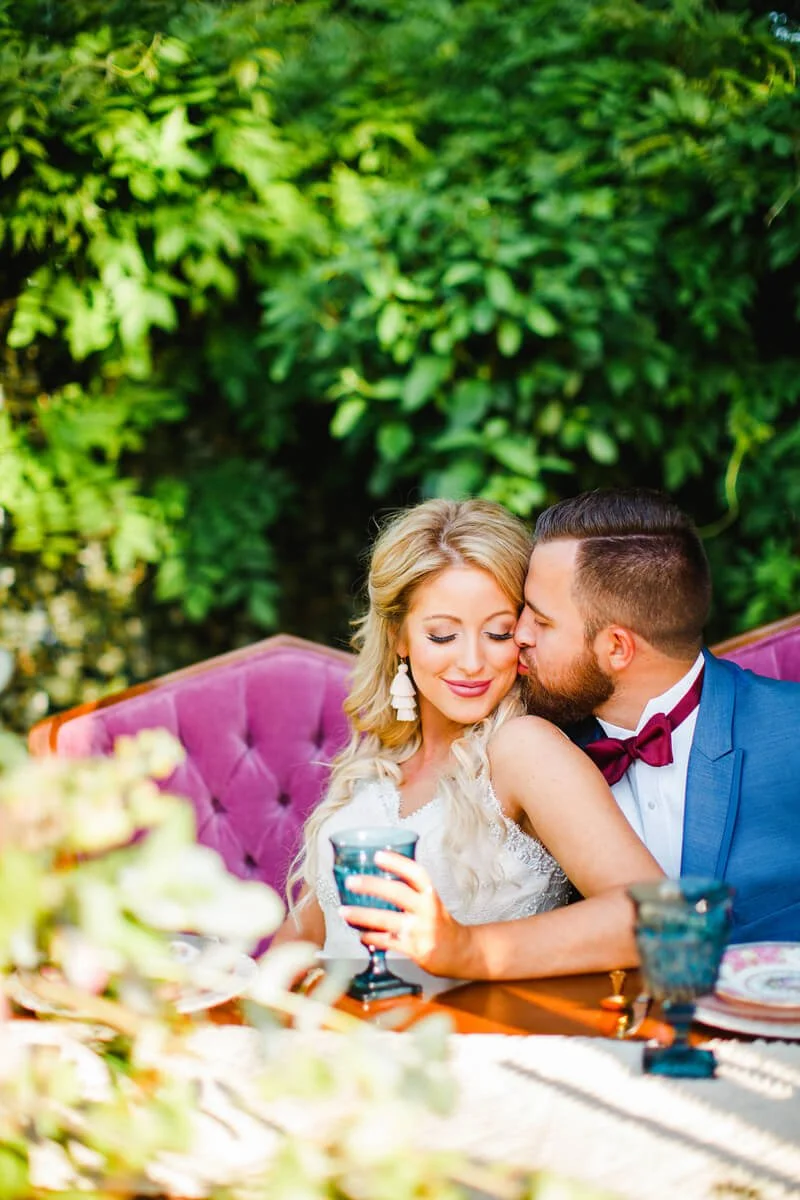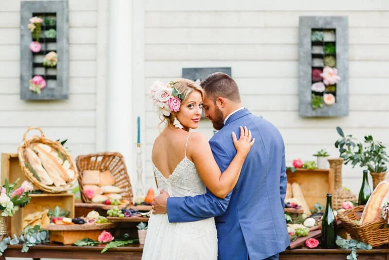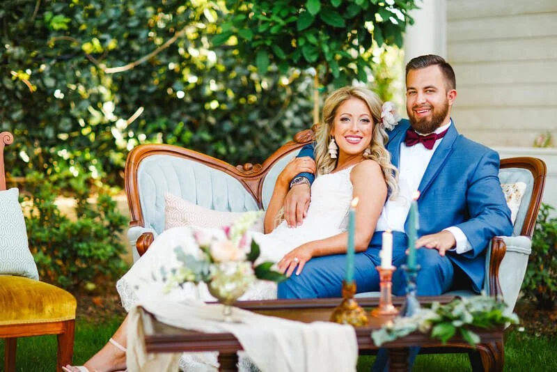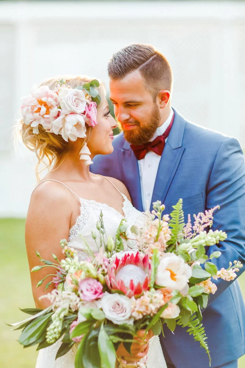 Recently married real life couple Emily and Zach were the perfect models for this shoot. They were married at Separk Mansion in late 2017, but it unfortunately rained and they weren't able to get many outdoor photos. We loved that we were able to give them another chance for photos with better weather! With her gorgeous blonde hair and his blue tuxedo, they made for the ideal boho couple and their adorable chemistry was evident as soon as we started shooting. An adorable flower girl complete with a peony flower crown was the perfect addition to their "wedding party," along with a few other precious little ones.