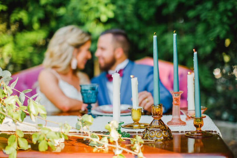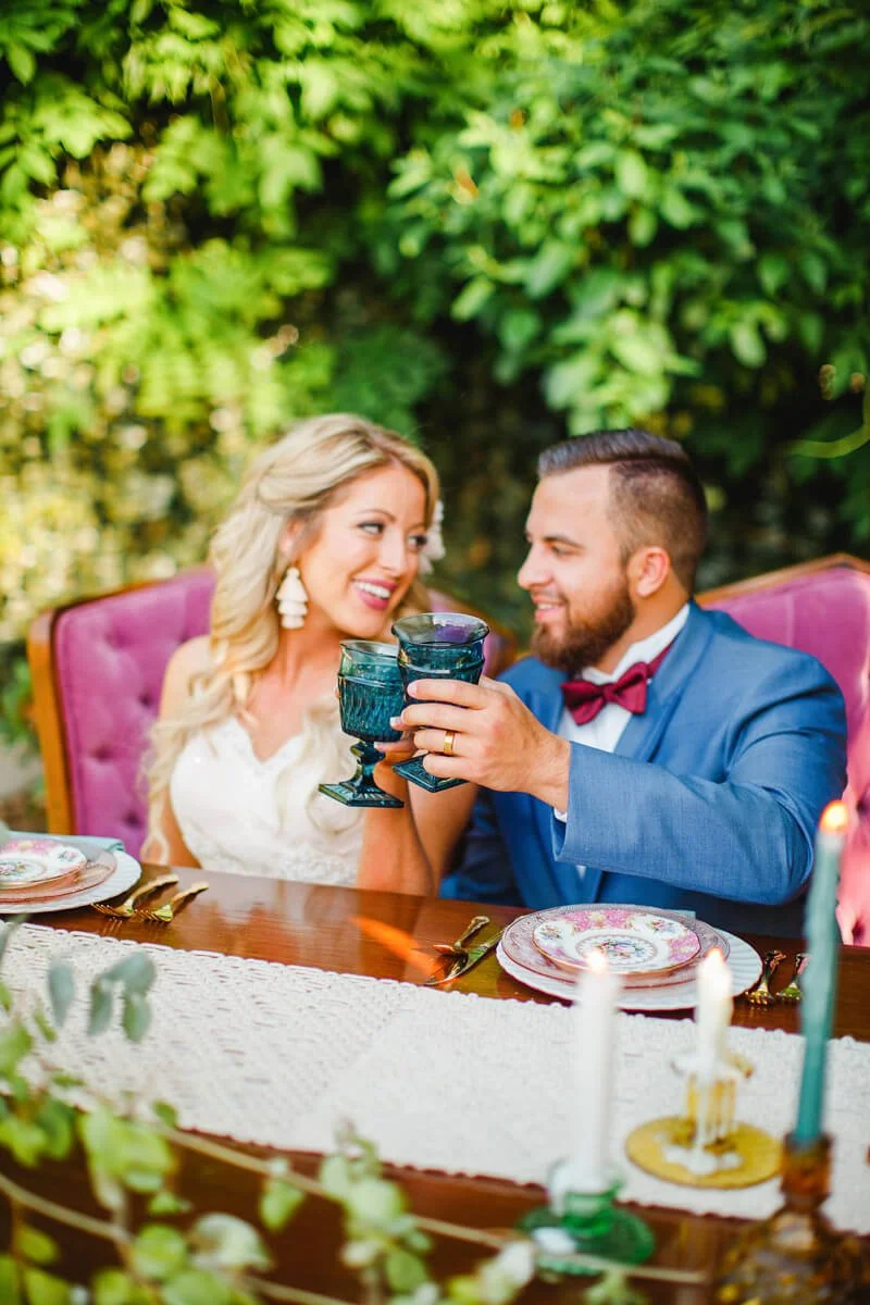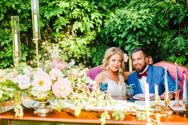 This shoot has everything - COLOR, stunning florals, an amazing food display and most importantly, a happy couple!