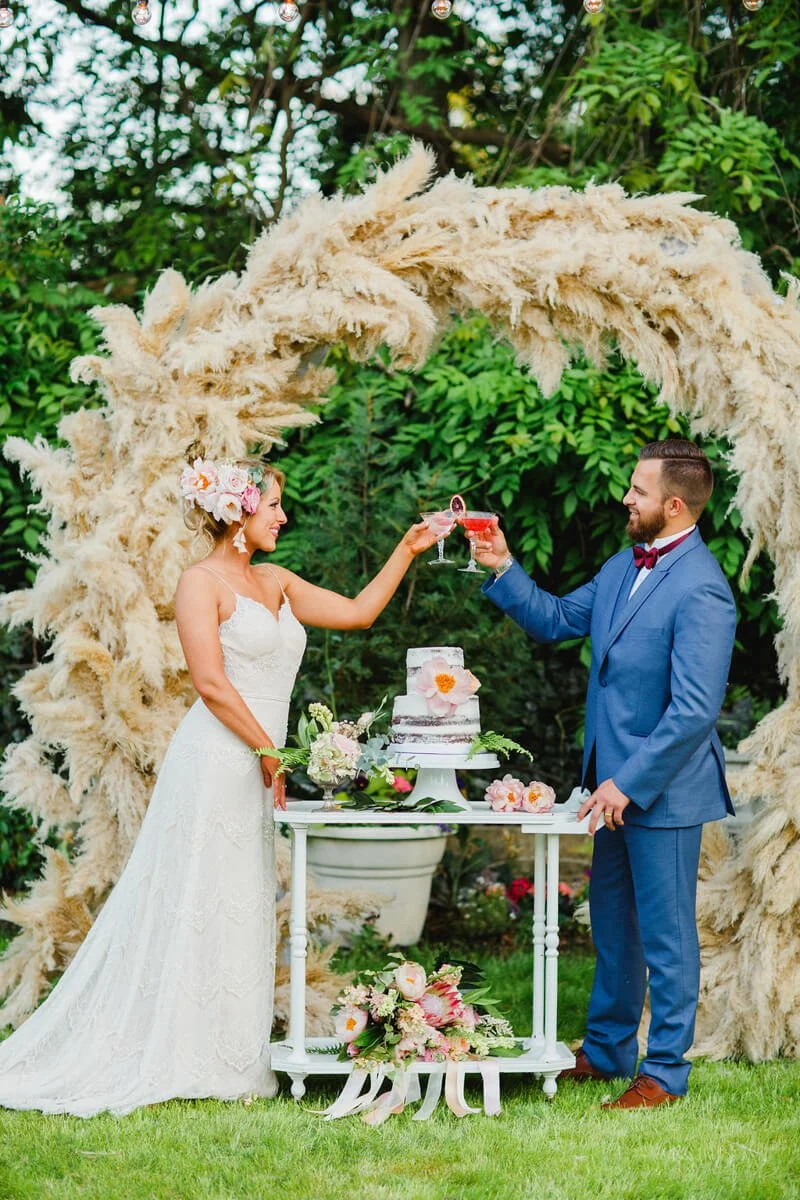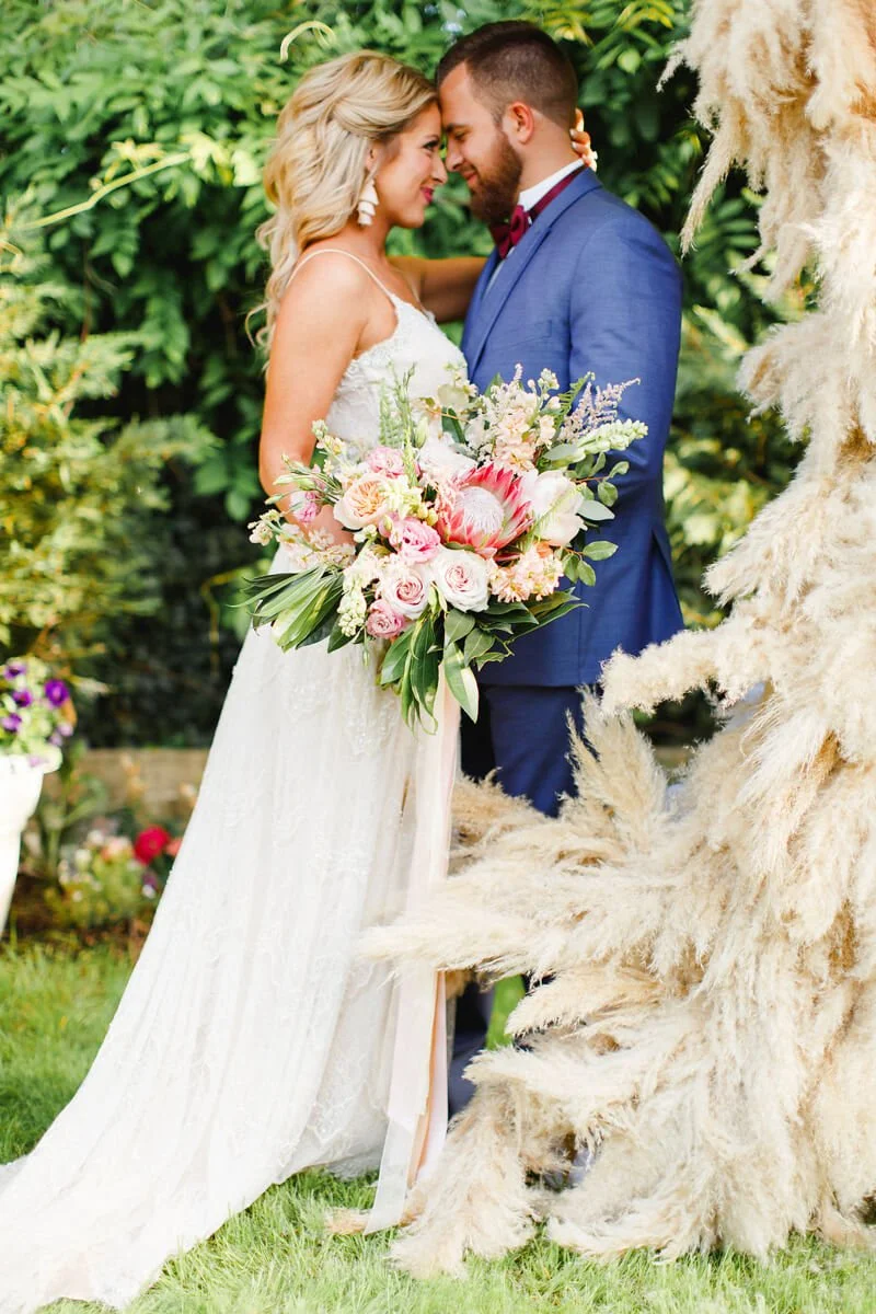 We started with a pampas grass ring as the ceremony backdrop, and that was the focal point and design inspiration for the bohemian aesthetic.