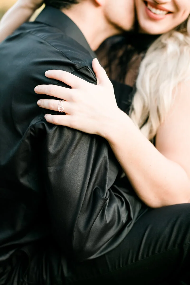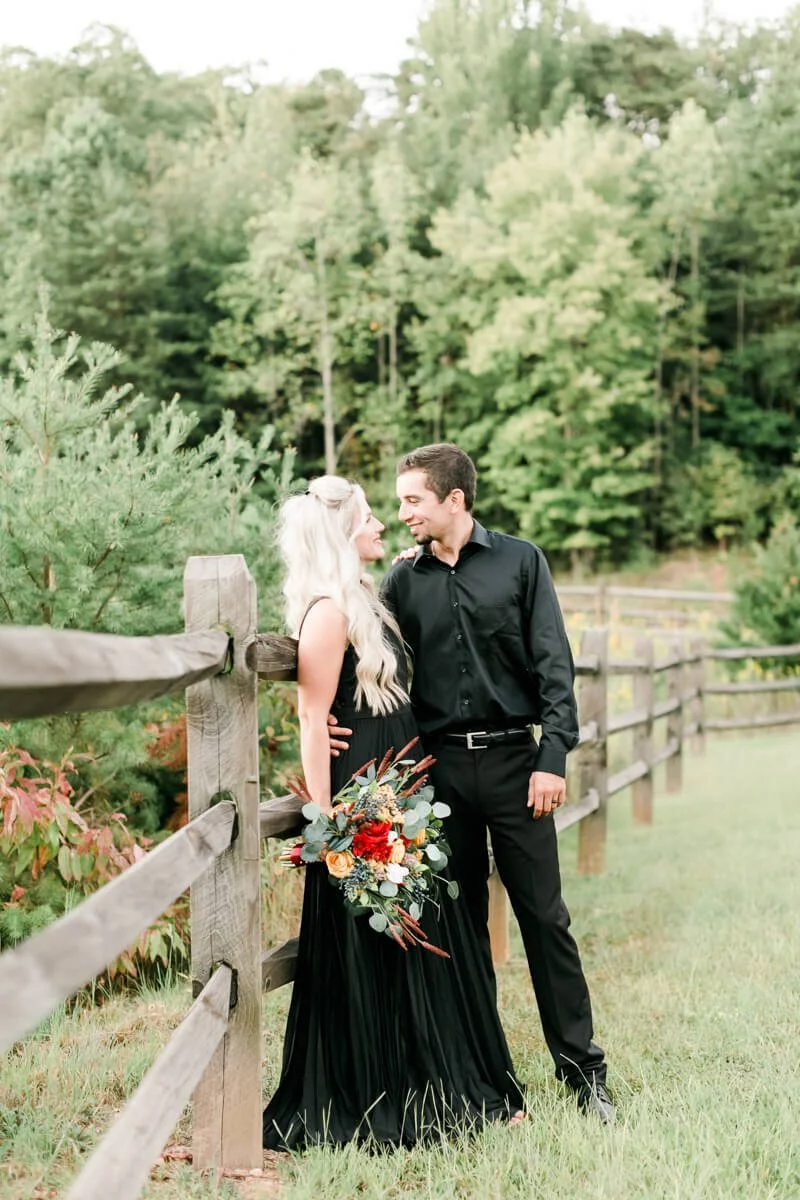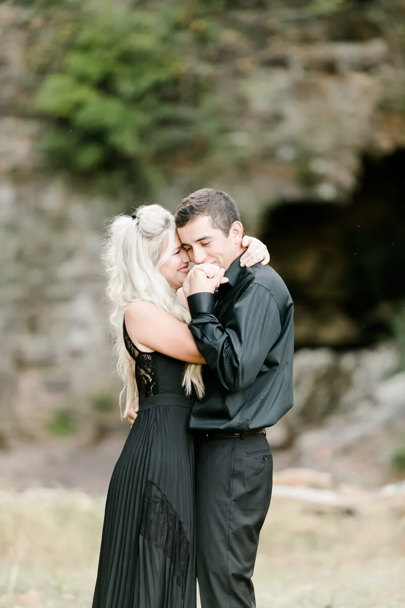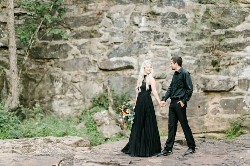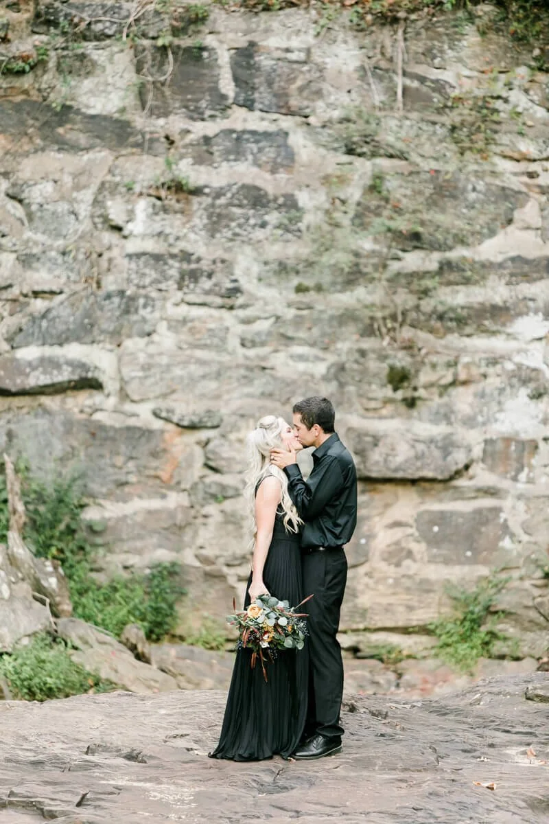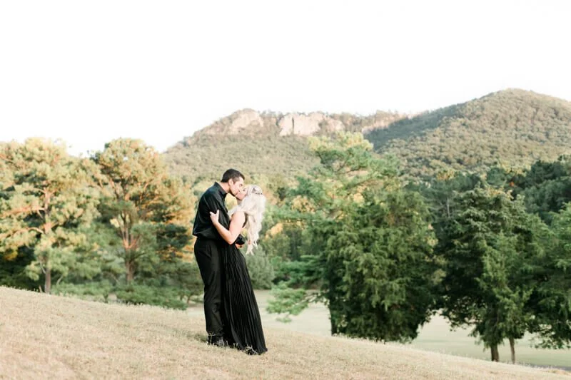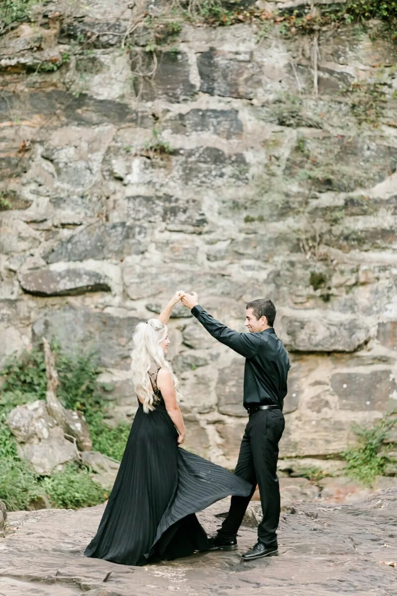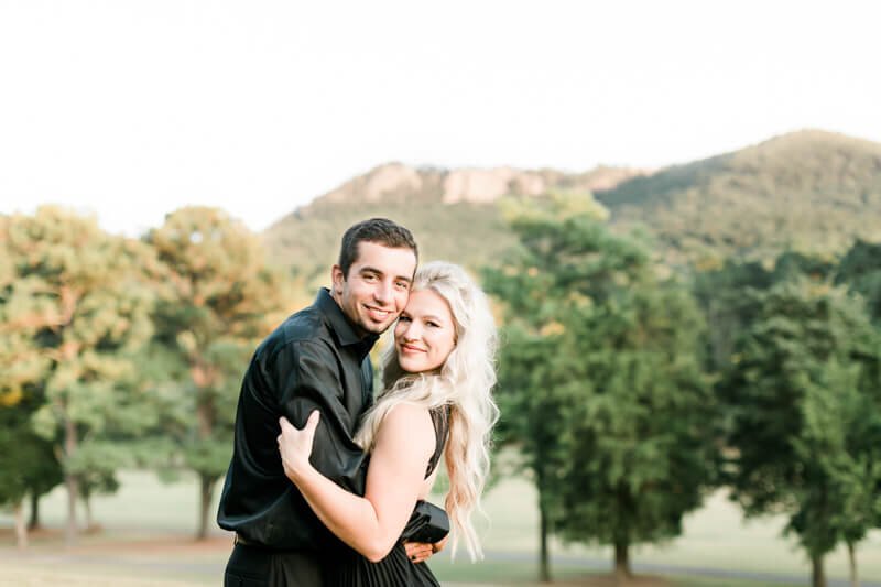 We were so excited heading off to Crowders Mountain for the session, but when we arrived all of the access points were closed due to construction. Talk about a mini panic attack! So, we improvised and made several stops along the mountain roads to get to all of these sweet spots and it couldn’t have worked out any better! And let’s all take a minute to talk about how stunning Jessie looked in her pleated, flowy gown from Lulus!