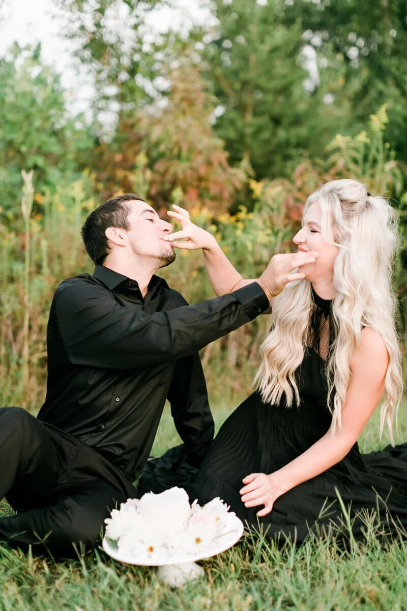 This styled anniversary session was filled with so much love and these two still look at each other the same way they did on their wedding day, which made them perfect for this styled couples session! Jessie and Christian even brought along the top tier from their wedding cake to eat! Too cute!!