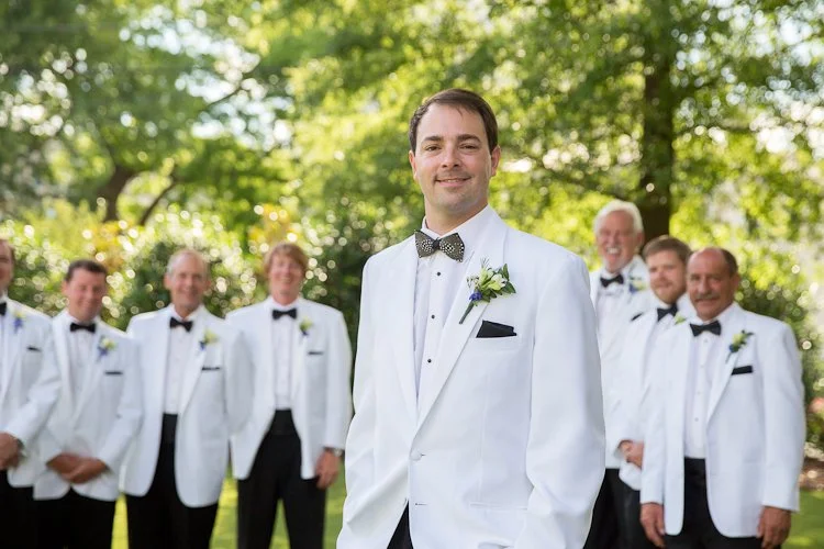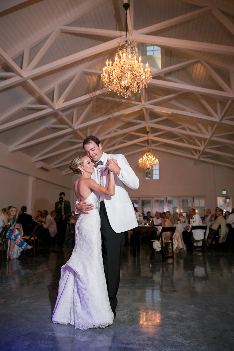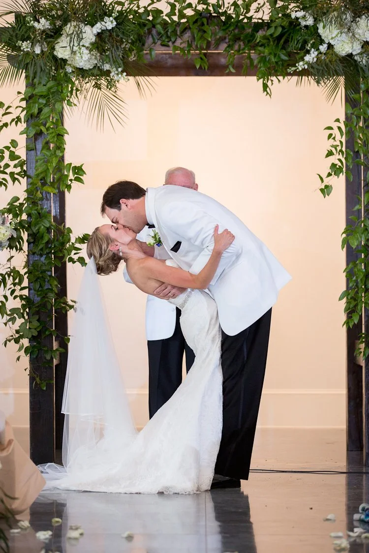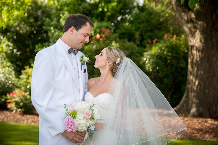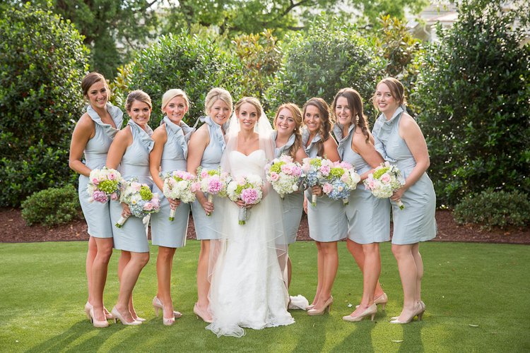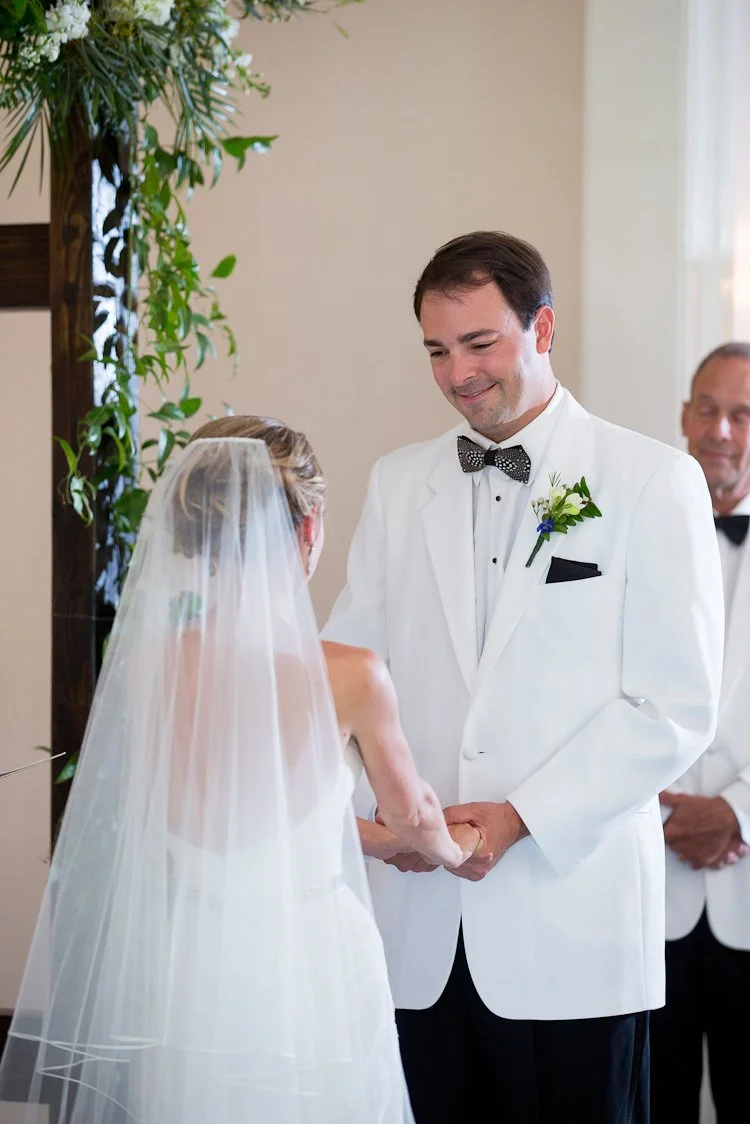 Tell us a little about your wedding planning experience - How did you choose your venue/theme/vendors?As soon you get engaged, it becomes very overwhelming to begin the wedding planning process. In my mind I already had an idea how I wanted my wedding to be. I wanted a venue that can facilitate the ceremony, cocktail hour, and reception. A one-stop shop, if you will. The venue needed to have an outdoor ceremony option. I started the process by researching venues in the Raleigh area. I ran into a friend at the grocery store a week after we had gotten engaged. She recently started working for the Merrimon-Wynne and asked if I had considered that as a venue. After I saw the house, and finding out that I could be one of the first brides to use the new carriage house facility, I was in love! I was on a wait-list for my original wedding date, as Merrimon-Wynne books over a year out, but I was lucky enough to score the May wedding date! After setting the date and venue, everything fell into place. The vendor search began as I sought out a day-of-coordinator. I planned the wedding myself, but needed someone to organize and orchestrate the event. My mother and I attended a wedding show at the NC State Fair grounds that April to meet prospective coordinators. The first coordinator I met at the show I immediately clicked with was, Erin, at Chestnut and Vine Weddings. I looked to Lula Kate as the designer for my bridesmaid’s dresses as her frocks are well-known as a classic southern style. The colors and fabrics available worked well with my theme. The style I selected for my bridesmaids was the “Zoe” made in Poly Shantung fabric, short-tulip style skirt, in the color ”sky”. “Sky” was a soft, pastel blue that worked well with my pastel palette theme. The ladies at Bella Bridesmaids in Cary were super helpful in helping me choose the styles, fabrics, color, and ordering process! I have to give my husband credit to finding our fabulous wedding photographer and making that step easy in the process! He hired Ellen Leroy Photography to capture our engagement. Our families were so pleased with how wonderful she was to work with and the quality of the pictures we had to book her! She traveled to Southport for our engagement photo session, Raleigh for my bridal portrait session, and back to Raleigh for the wedding. She was very always very responsive and creative.What were your wedding colors and did you have a theme? How did you make this event personal?A Southern Spring Pastel Party became my theme/inspiration throughout the wedding planning process when we set the date for May 2016. My mind was already filled with images of lush spring blooms consisting of peonies, hydrangeas, and roses amongst the classic beauty of the Merrimon-Wynne House. Parker and I are both born and raised in Eastern North Carolina. We had the same vision of how we wanted our wedding to reflect our upbringing and personalities. I did not choose set colors, but wanted a full palette of pastels accented by gold. My bridesmaids were adorned in a pastel, powder blue ruffled collar dress made of the classic shantung fabric with tulip skirt by Lula Kate of Charleston, SC. His groomsmen sported the ever-dapper, classically- Southern white dinner jacket tuxedos. When selecting the table linens, I chose different textures and colors for different areas of the property. A light celery green linen was draped over the cocktail tables in the house, a blush shantung for the cocktail tables on the side porch of the house and carriage house, and a champagne satin topped paisley lace runner for the reception tables. Parker is an avid outdoorsman and would spend every day hunting and fishing if he was able. Antlers and hunting became the accent theme and special detail to our wedding to incorporate his passions. Antlers were featured on our powder blue cocktail napkins printed in gold foil with antlers surrounding our names, painted gold antlers on the cake table, and our coozies. Parker’s crafty, dexterous sister built a set of corn hole boards from scratch for a lawn game during the cocktail hour. She stained the wood a dark mahogany and hand painted deer head with the letter “H”. My personal favorite touch to this theme were the iced sugar cookies that surrounded our cake. The cookies were in the shapes of antlers with white icing and German Shorthaired Pointers with powder blue icing. Parker and I have a German Shorthaired Pointer, Duke, who we love dearly and anyone who knows us knows about Duke. To continue with this theme, Parker wore antique Pewter German Shorthaired Pointer cufflinks with his white dinner jacket tuxedo. The bowtie worn by only Parker, the groom, was black and white made of Guinea feathers by Brackish Bowties of Charleston, South Carolina.What made our wedding special to Parker and myself, was the fact the officiant for our ceremony was my Grandfather. Currently, he serving as a magistrate and has married numerous members of our family. Since I was a teenager I had always planned on my grandfather being the one to marry me when the time came, but over the course of the years his heart health had declined. A quadruple bypass, several heart attacks, stints, and a few hospital stays he made it to my big day! We were able to integrate Parker’s side of the family in our ceremony by having his grandfather perform the reading 1 Corinthians 13:4-8.