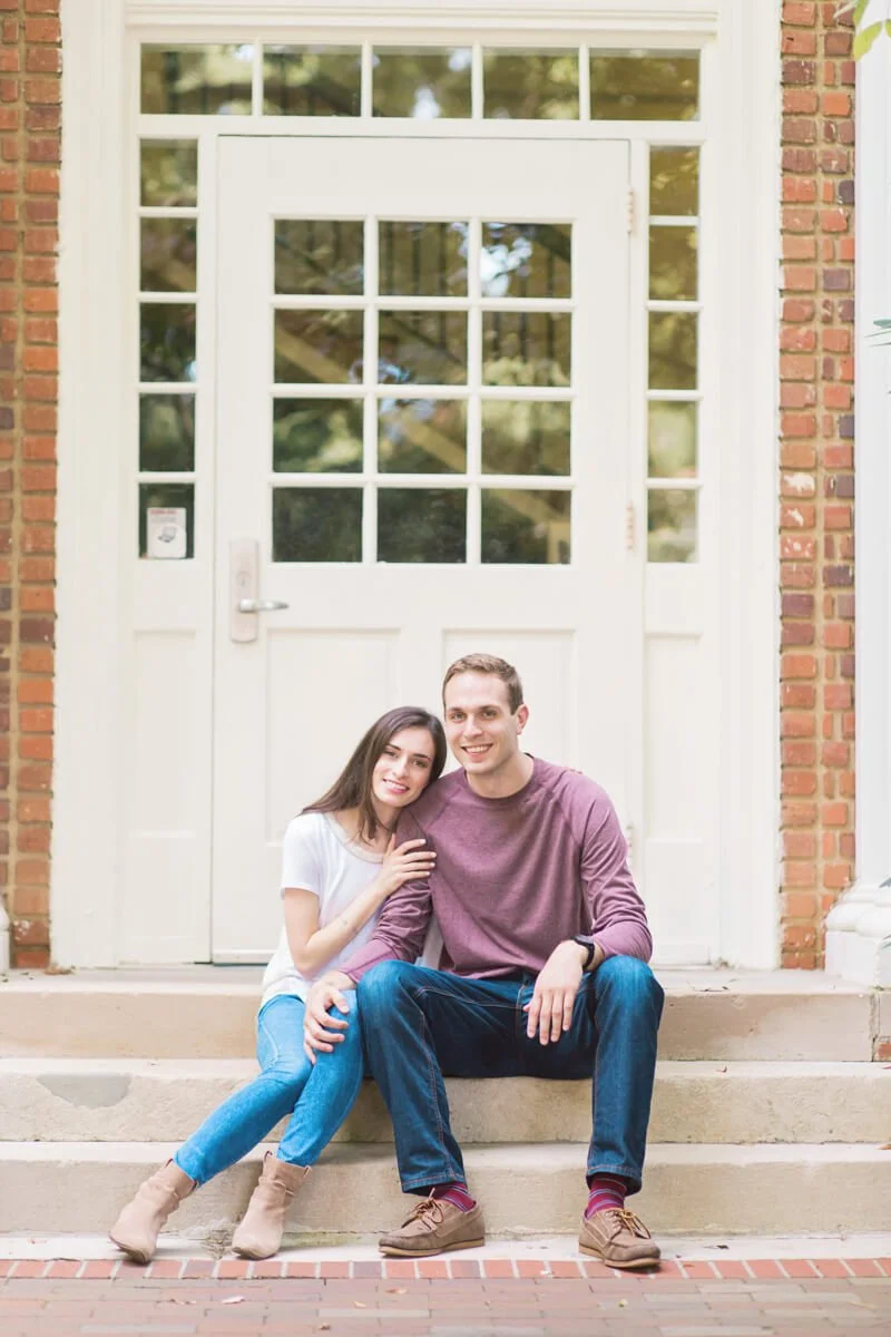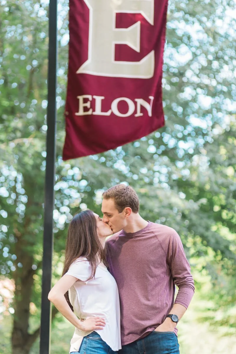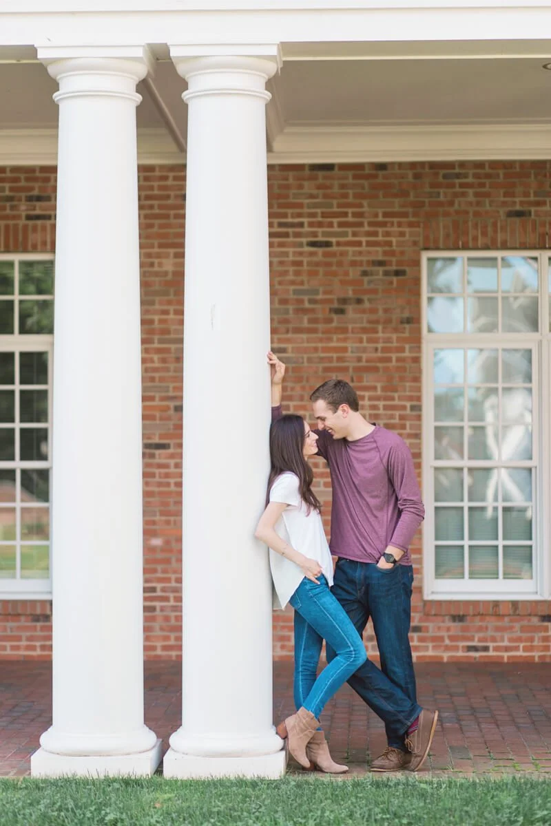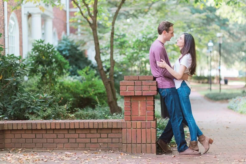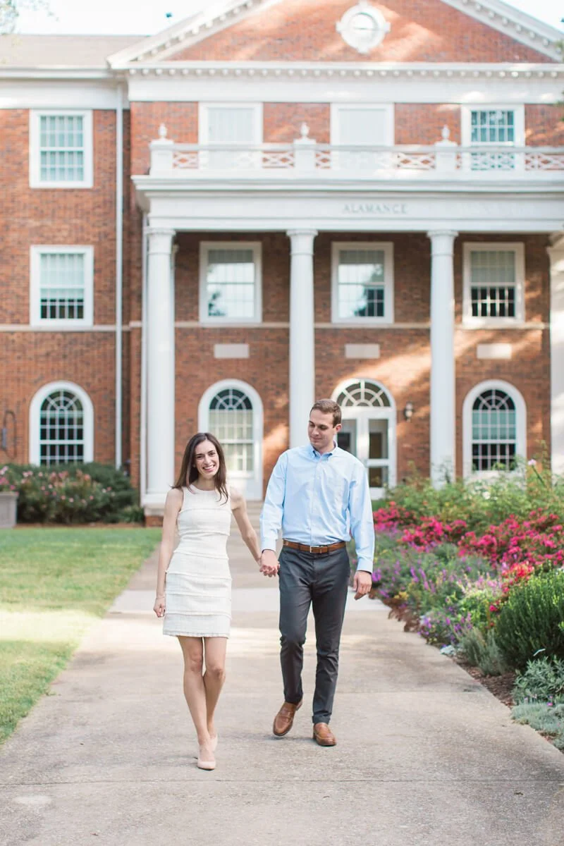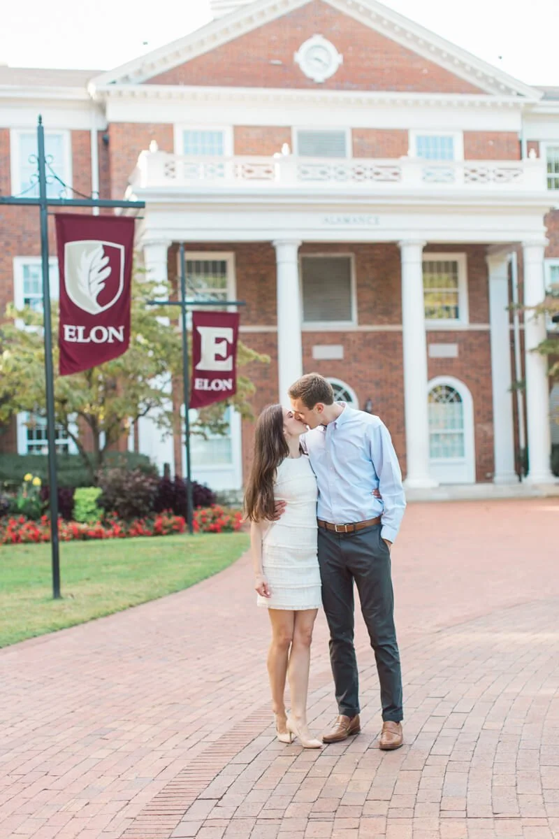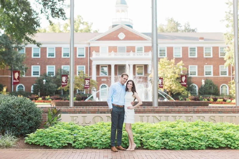 Kerry & Matt strolled through Elon University beautiful campus for their engagement session. This couple met during their time at Elon University while serving with Habitat for Humanity. Amanda Donaho Photography captured this lovely engagement session.