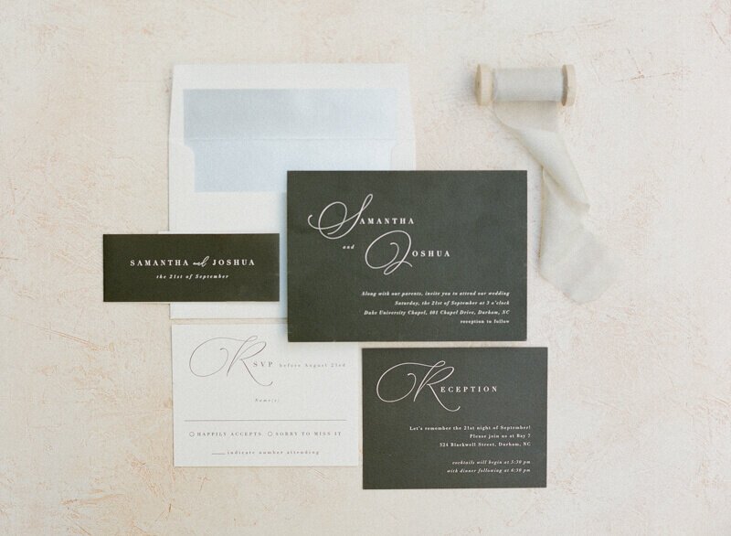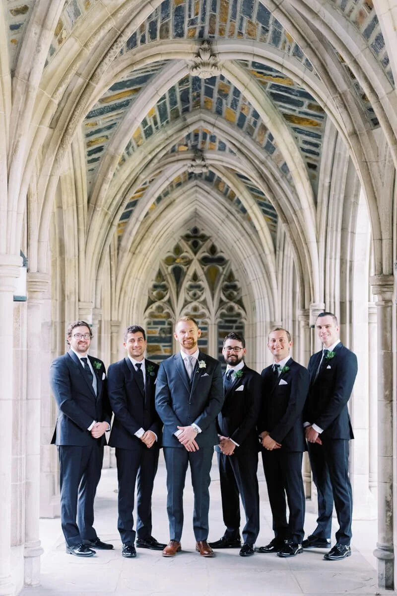 Bakery: Southern Sugar Bakery//Cinema and Video: Thomas Blake Films//Dress Store: Lana Addison Bridal//DJ: Joe Bunn DJ Company//Lighting: Get Lit, Special Event Lighting//Equipment Rentals: CE Rental//Floral Designer: Embellished Blooms//Ceremony Location: Duke Chapel//Event Venue: Bay 7//Caterer: The Angus Barn//Beauty: Wedded Kiss//Event Planner: A Southern Soiree//Photographer: Krystal Kast Photographers