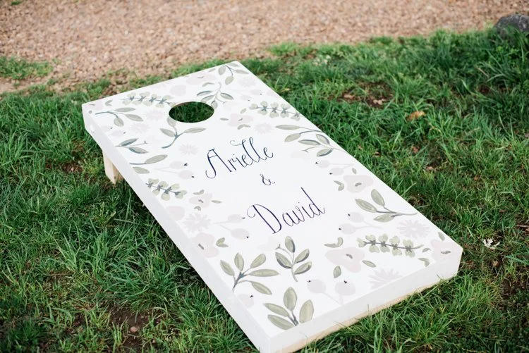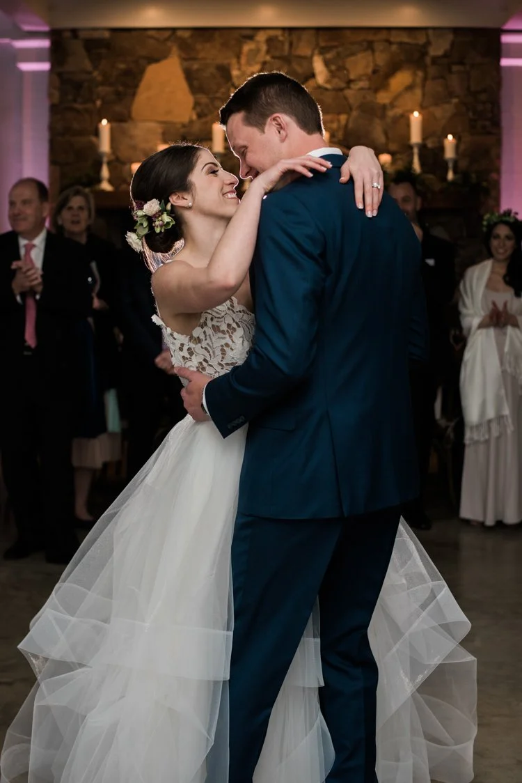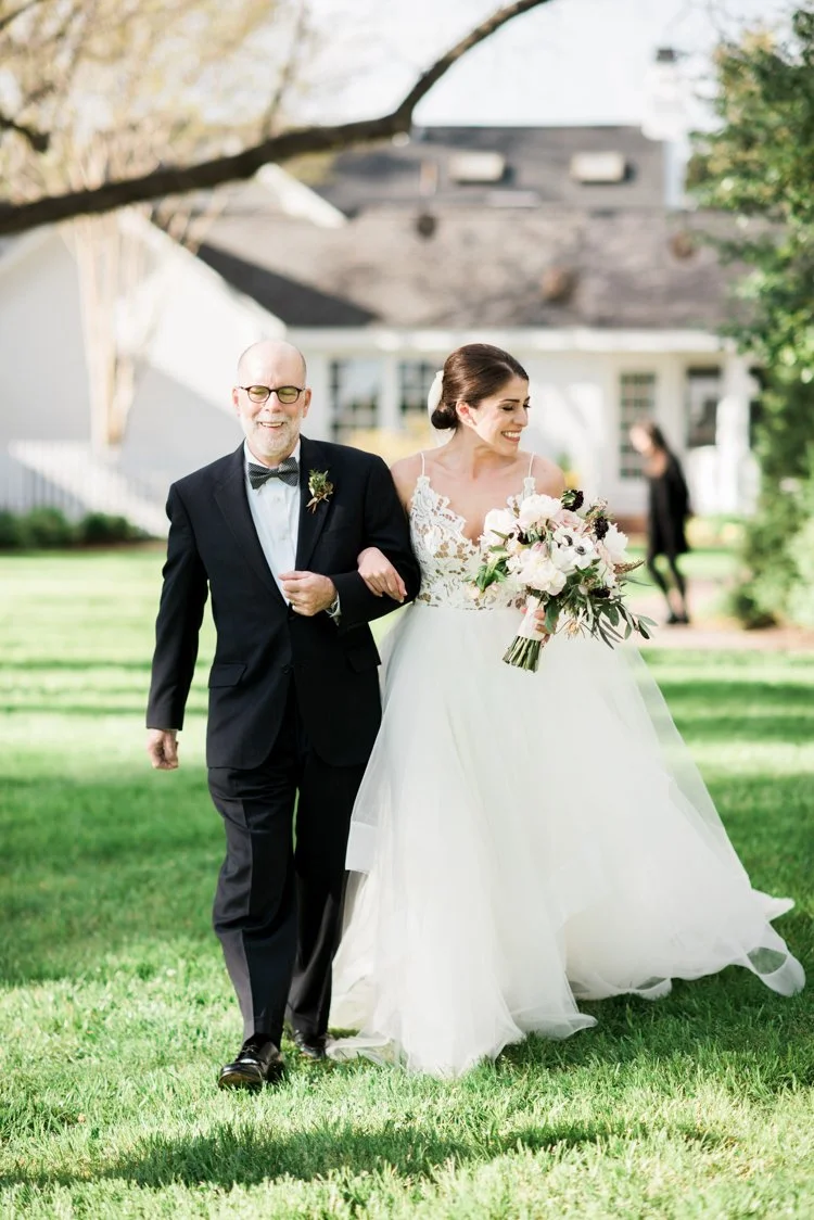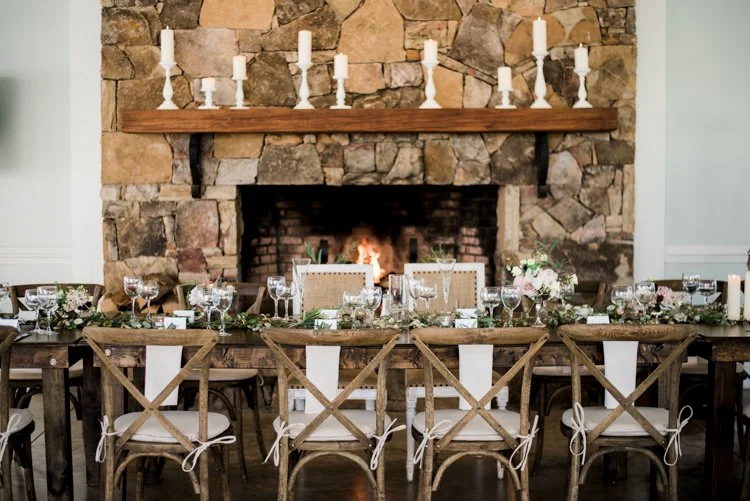 3) Our vision for the wedding was for it to feel romantic, intimate, cozy, and very inclusive. We wanted all of our beloved friends and family to know that they had an exceptional role in sharing and creating the day with and for us. So, we incorporated our guests into the ceremony, had pictures of us with all of our guests as our escort cards, and had our talented family and friends assist with personal touches like the calligraphy, ceremony music, and corn hole boards; my mother, a Minister, even officiated! After choosing Fearrington Village and the Garden Terrace specifically, we knew we wanted a big focus for the space to be on our flowers; we had unstructured and textured floral arrangements of dusty rose, smokey mauve, white, and burgundy, and we added greenery and candles wherever we could. The fire was roaring all night long, adding to the coziness! We also wanted the reception to feel full of energy from start to finish, so we had two high energy songs play right at the beginning of the reception to get everyone on the dance floor immediately. The night was magical - it was filled with so much love and so much fun!!!