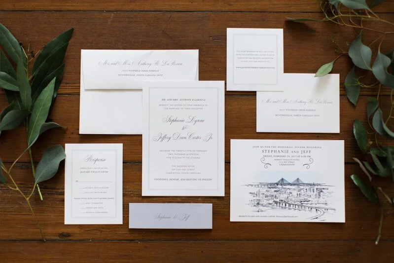 This couple truly embraced the city of Charleston and used it as their inspiration, including in their invitation suite which featured a picture of the city.