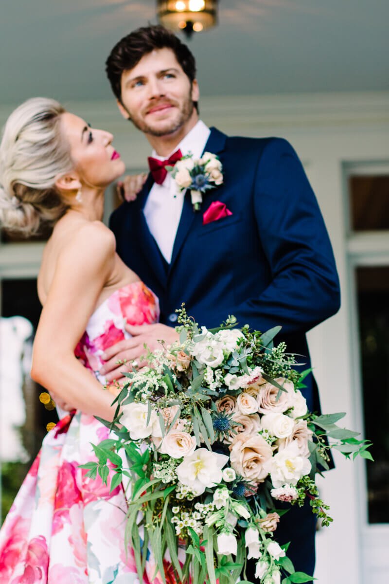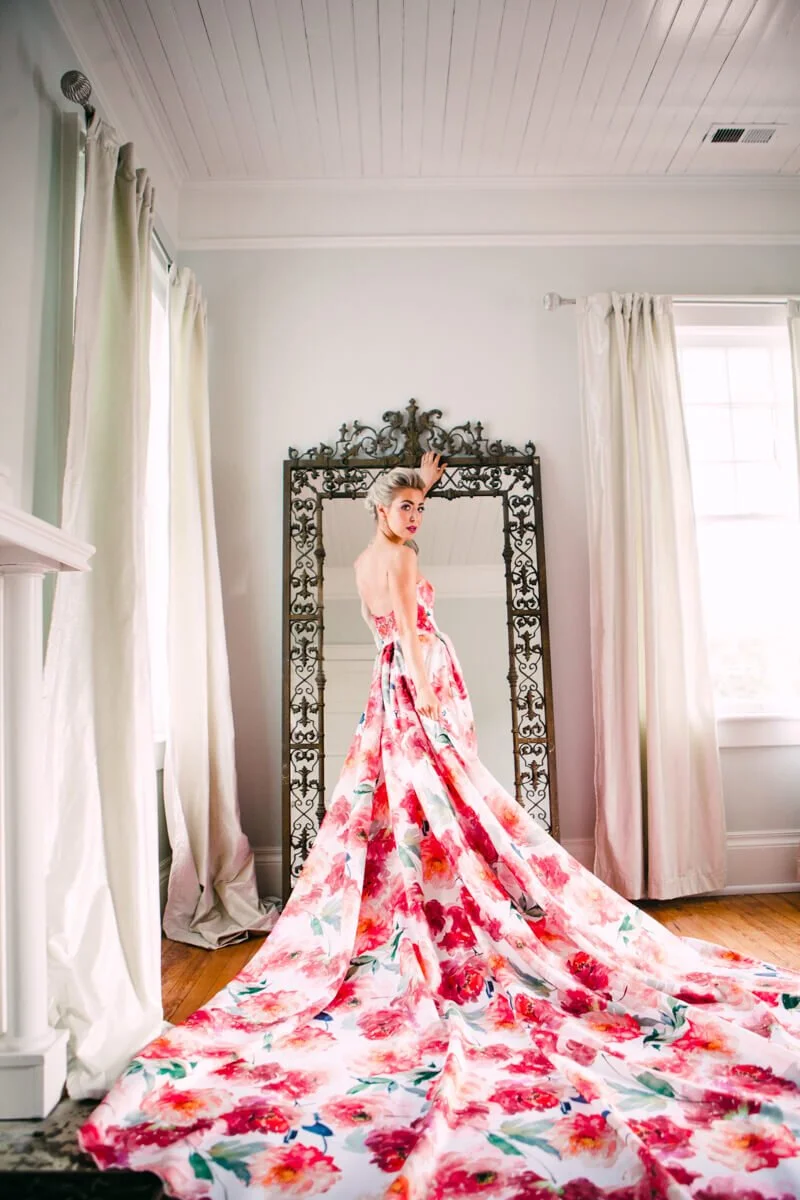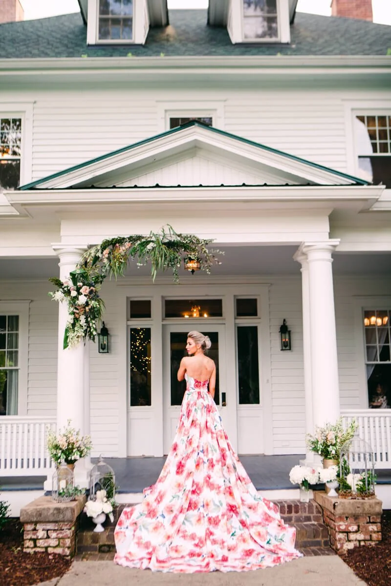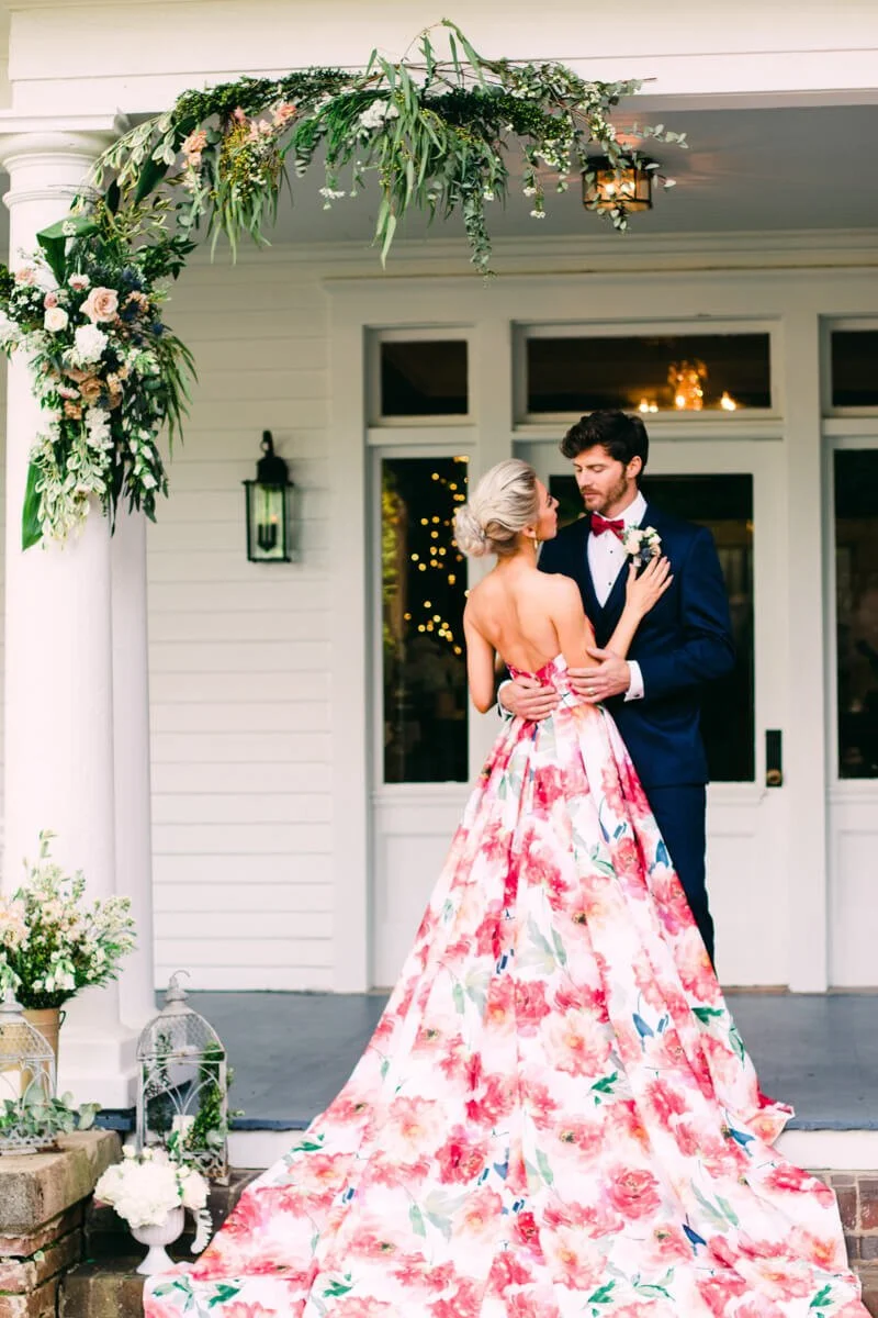 From the photographer: I decided to create a styled shoot around a floral non-traditional wedding dress. I was so excited to see more color and flair with this styled shoot. My vendors were incredible and they all brought the look together so well. These shots are absolutely breath taking thanks so all the amazing people who came together to make this happen!