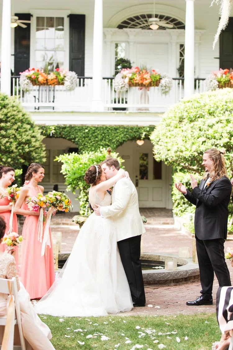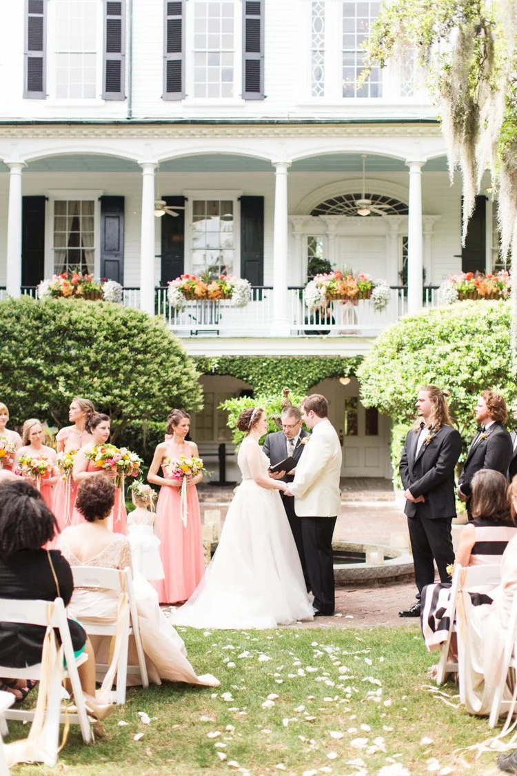 Photographer: Magnolia Photography//Tuxedo and Mens Attire: Liles Clothing Studio//Other: 428 Main//Transportation: ACW Limo Service//Apparel: Brackish Bowties //Floral Designer: Branch Design Studio//Cake Designer: Cakes by Kasarda//Musicians: Charleston Virtuosi//Culinary: Cru Cafe//DJ: Darby Events//Design and Decor: EventHaus Rentals//Other: Frou Frou Chic//Event Venue: Governor Thomas Bennett House//Bridesmaid Dresses: Jenny Yoo//Dress Store: Maddison Row//Dress Designer: Monique Lhuillier//Makeup Artist: Pink Dot Beauty Bar//Design and Decor: Pure Luxe Bride//Hair Stylist: Reina Lawrence//Veils and headpieces: Sara Gabriel Veiling & Headpieces //Other: The Mrs Box//Event Designer: Wed on Canvas//Event Planner: Winship Productions // Governor Thomas Bennett House Wedding