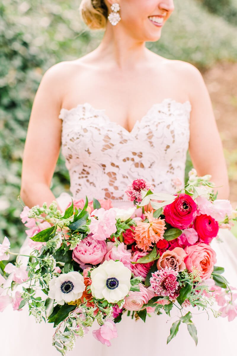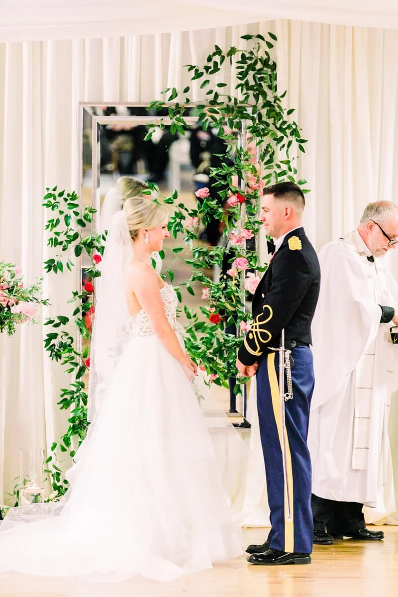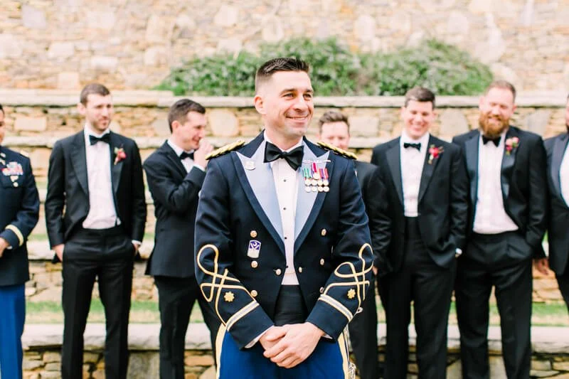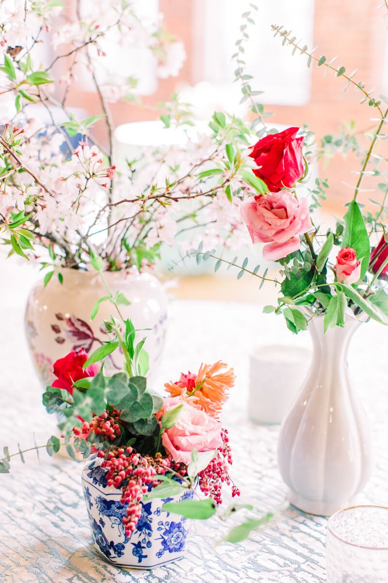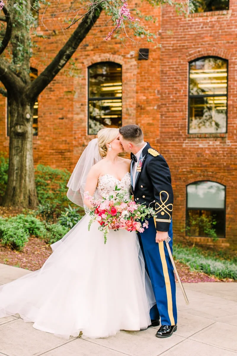 Margaret is a successful business woman, traveling all over the US for work. Ben is an Army Ranger and one of the hardest workers she knows. They knew they wanted to implement a timeless approach to their design, as well as incorporating Ben's Ranger details and dress blues. They have both attended so many weddings, and are the last of their friends to get married, so they wanted it to be something super fresh and special for all of their friends and family. Margaret spotted a small ginger jar in her living room, she was drawn to the bright and vibrant colors, and deemed it her "inspiration pot." She handed the ginger jar over to the ladies at Upstate I do, and they created magic.