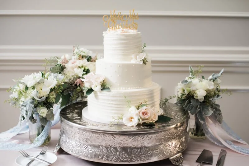 Photographer: Krystal Kast Photographers//Bakery:Sweet Memories Bakery//Floral Designer: Flowers on Broad Street//Floral Designer: Flowers on Broad Street//Hair Stylist: Wink Hair and Makeup//Shoes: Badgley Mischka//Dress Designer: Stella York//Reception Venue: Highgrove Estate//