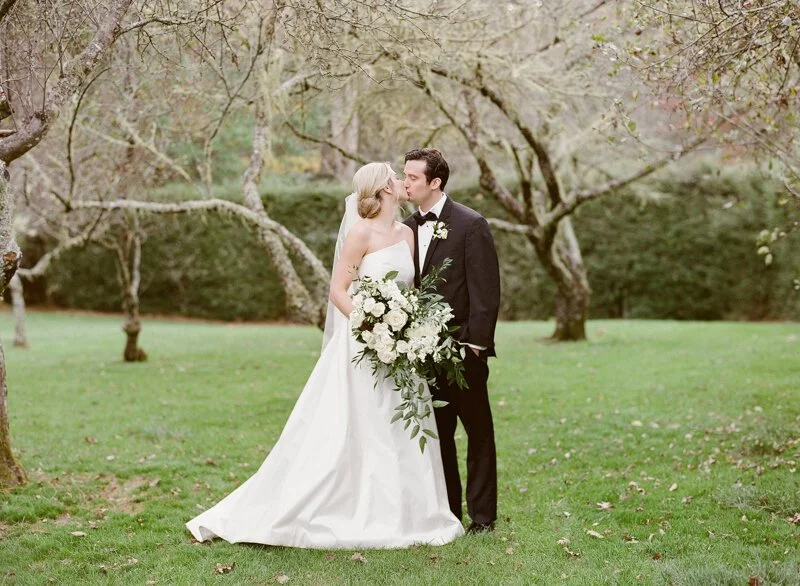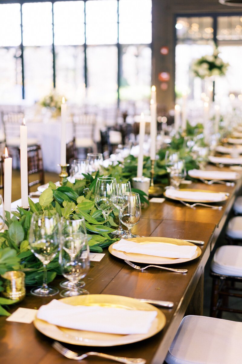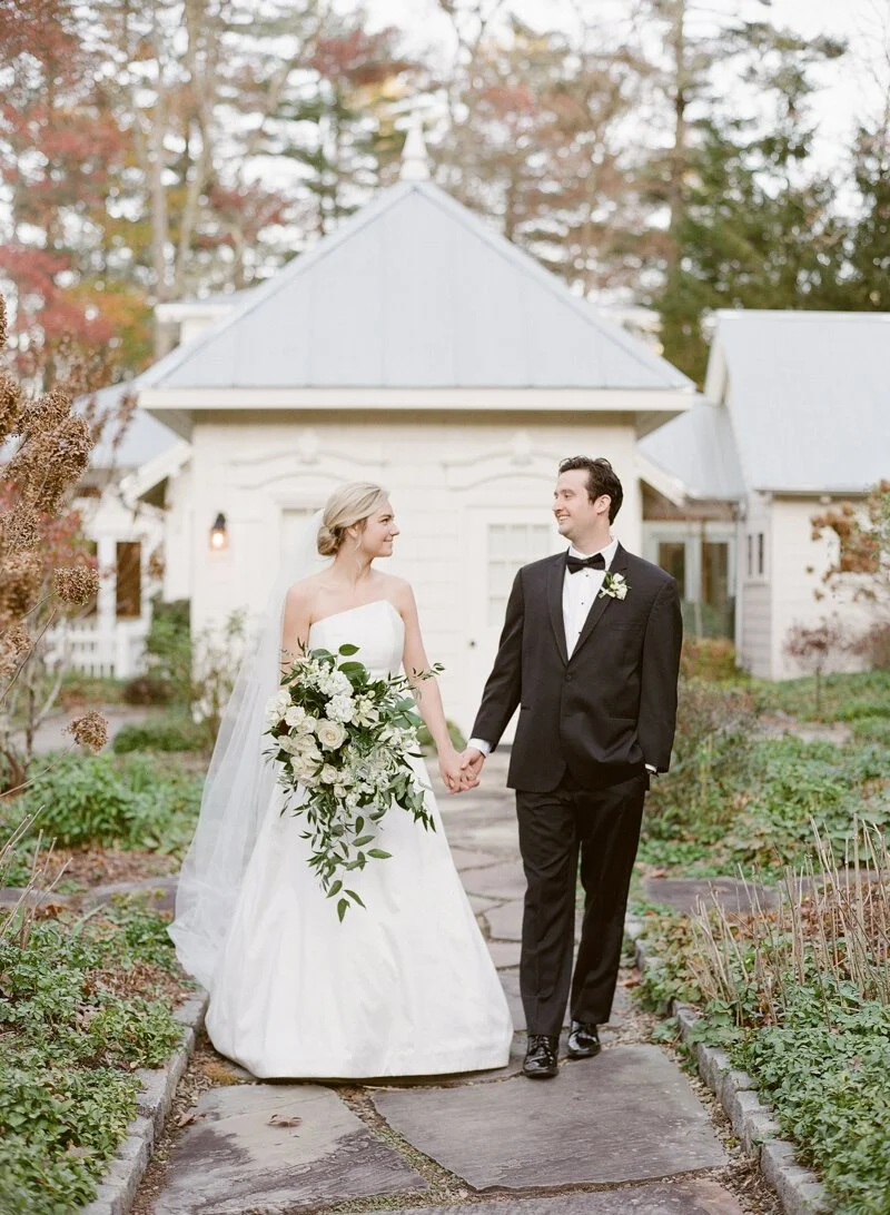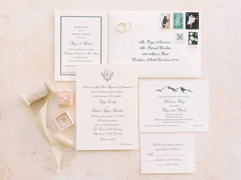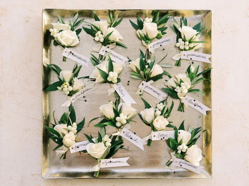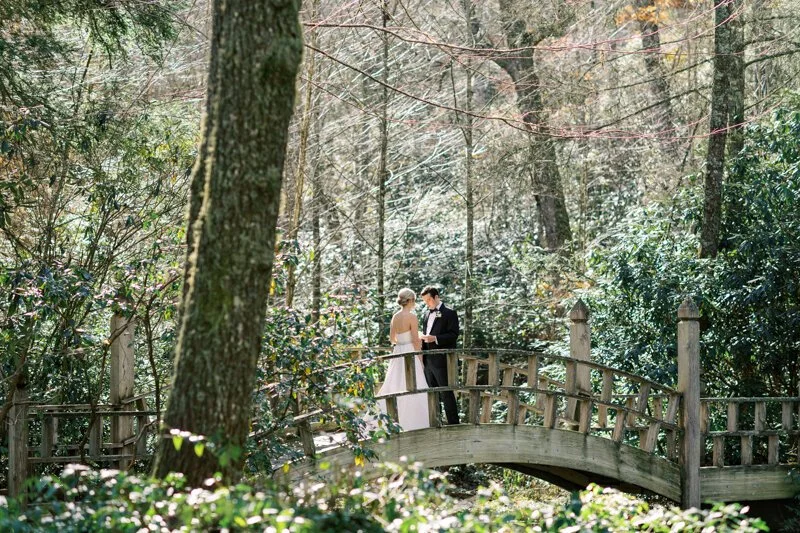 We knew we wanted the wedding to be in Highlands. My grandparents live in Highlands, and I grew up spending summers and holidays there. We wanted a classic, timeless and formal wedding, but also wanted to incorporate a “mountain feel” where we could. I wanted to use deep green florals because it reminds me of the surroundings in Highlands. We also incorporated some magnolia leaves because my mother and grandmother always had magnolias in the yard and magnolia leaves throughout the house. Our color palette was green, black, white and gold, and the bridesmaids and groomsmen both wore black.