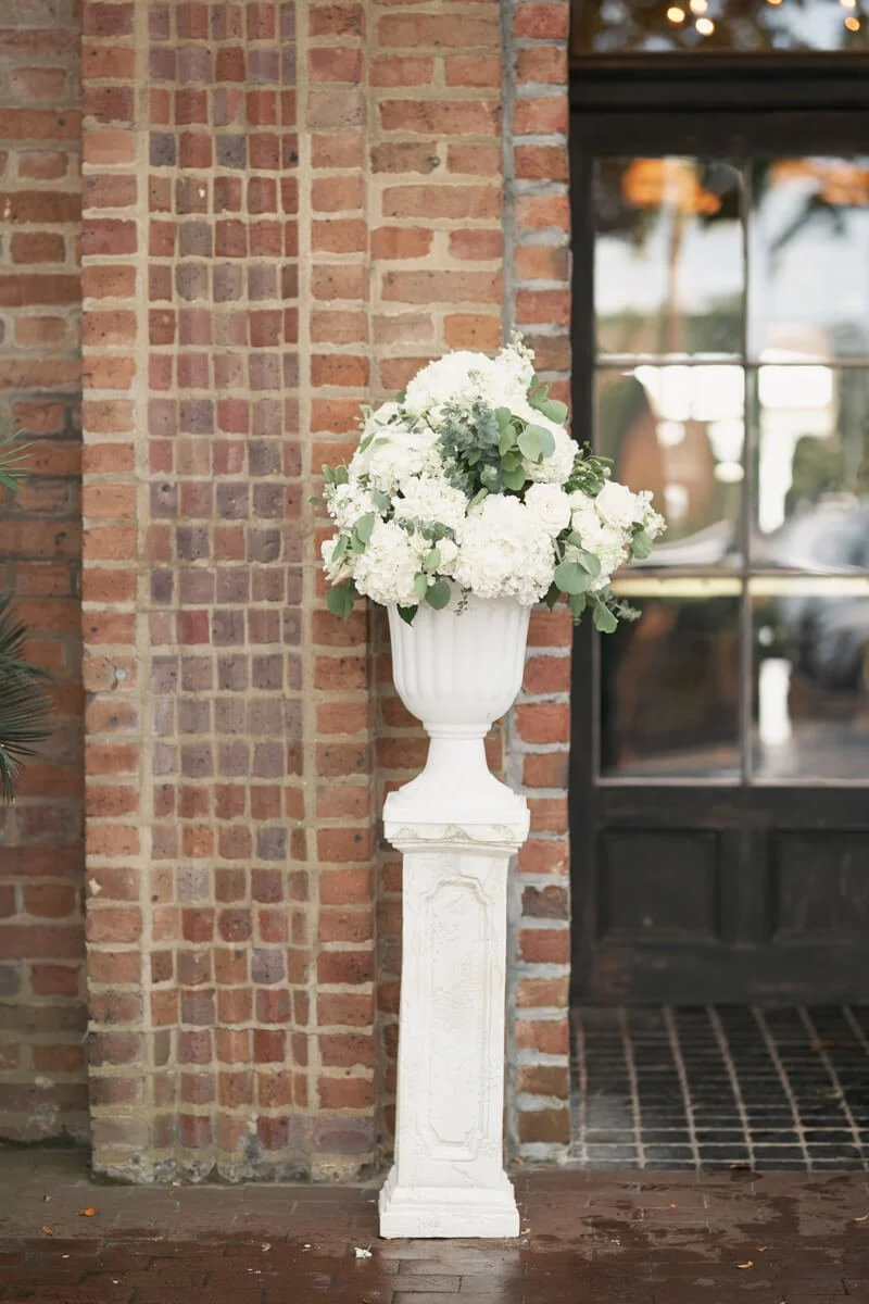 Kelly and Phillip were almost rained out of their outdoor ceremony location – but with all hands on deck for a quick wipe down (and a lucky break in the rain), they were able to hold their wedding in front of the beautiful brick facade of the Historic Rice Mill.