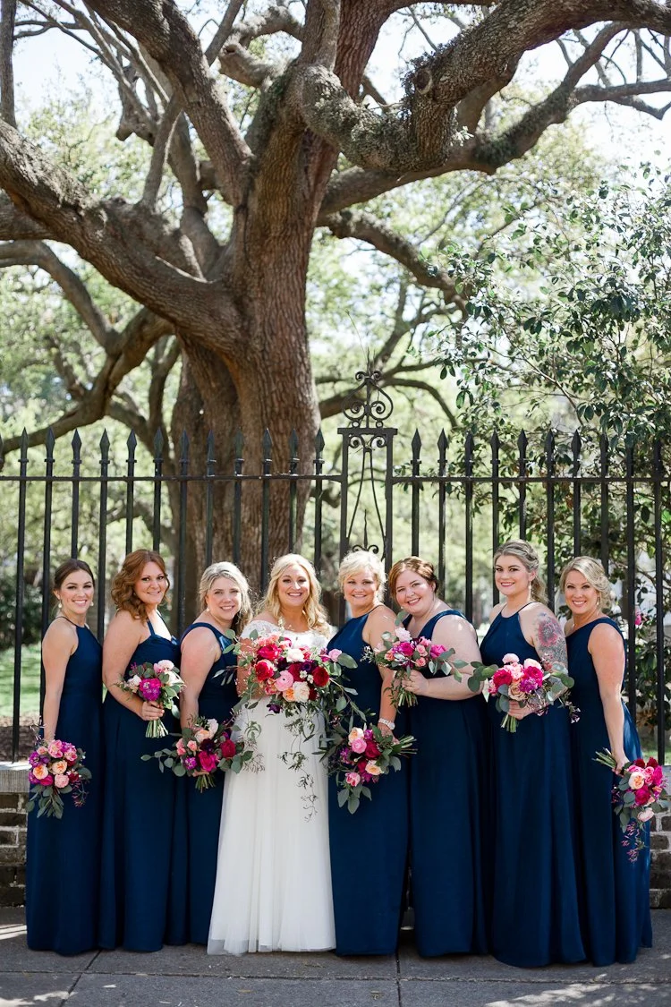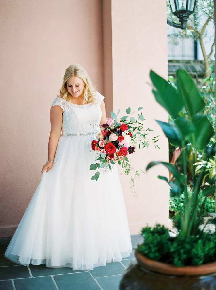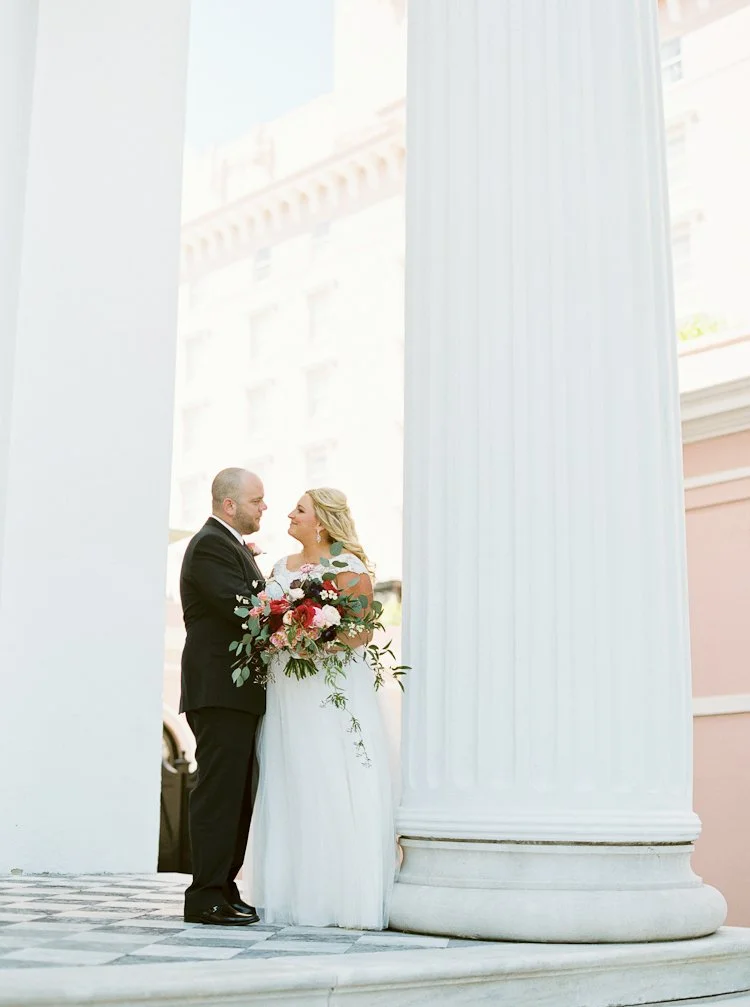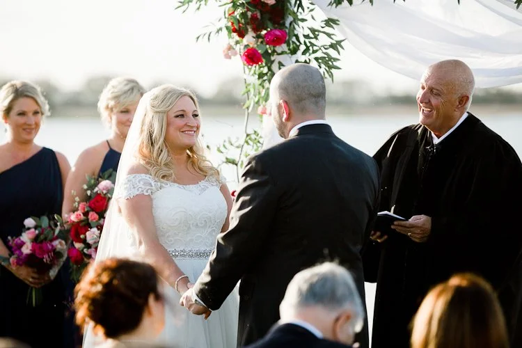 When a wedding planner gets married, you know it’s going to be nothing short of amazing! Thomas and Kala’s waterfront wedding on March 24 was set in the lowcountry of Charleston at The Island House.With a steady island breeze and a gorgeous orange and purple sunset, Thomas and Kala’s dreamy wedding was one for the books. Kala and her bridesmaids got ready at The Mills House in downtown Charleston. After the bride and groom’s first look, their wedding party joined them on the cobblestoned Chalmers Street. Then, they all boarded and trolley and traveled to The Island House for the waterside nuptials and celebration.This is a true wedding work of art thanks to the thoughtful stylings of the bride (MOD Events), flowers at every turn by Charleston Flower Market, and twinkling lights and flowy draping by Lowcountry Entertainment. It’s no wonder this day turned out as beautiful as it did!The sweeping river views, island breeze, and elegant wedding details are an absolute feast for the eyes – and lucky for you, we’ve gathered all the pretty photos here for you to enjoy!