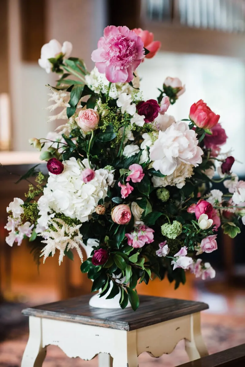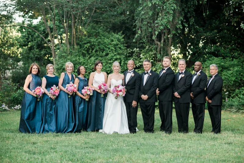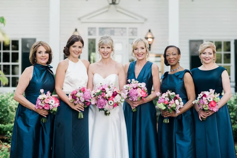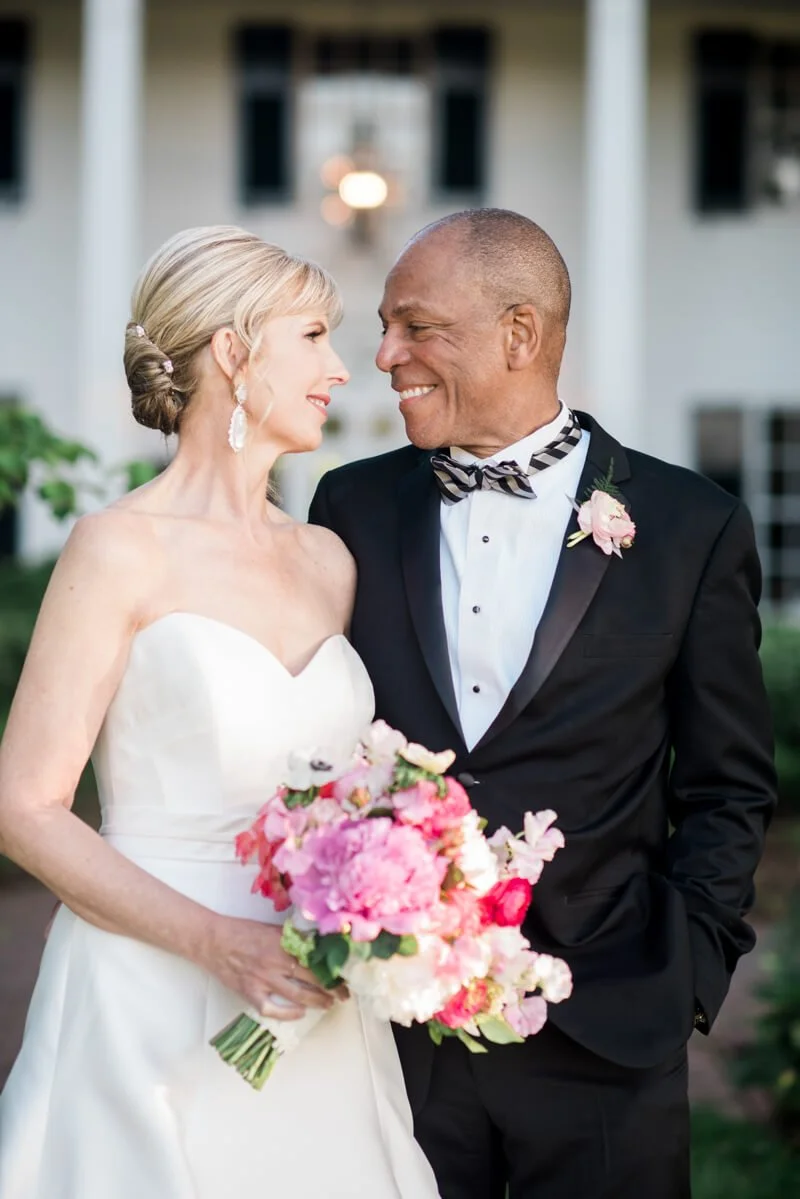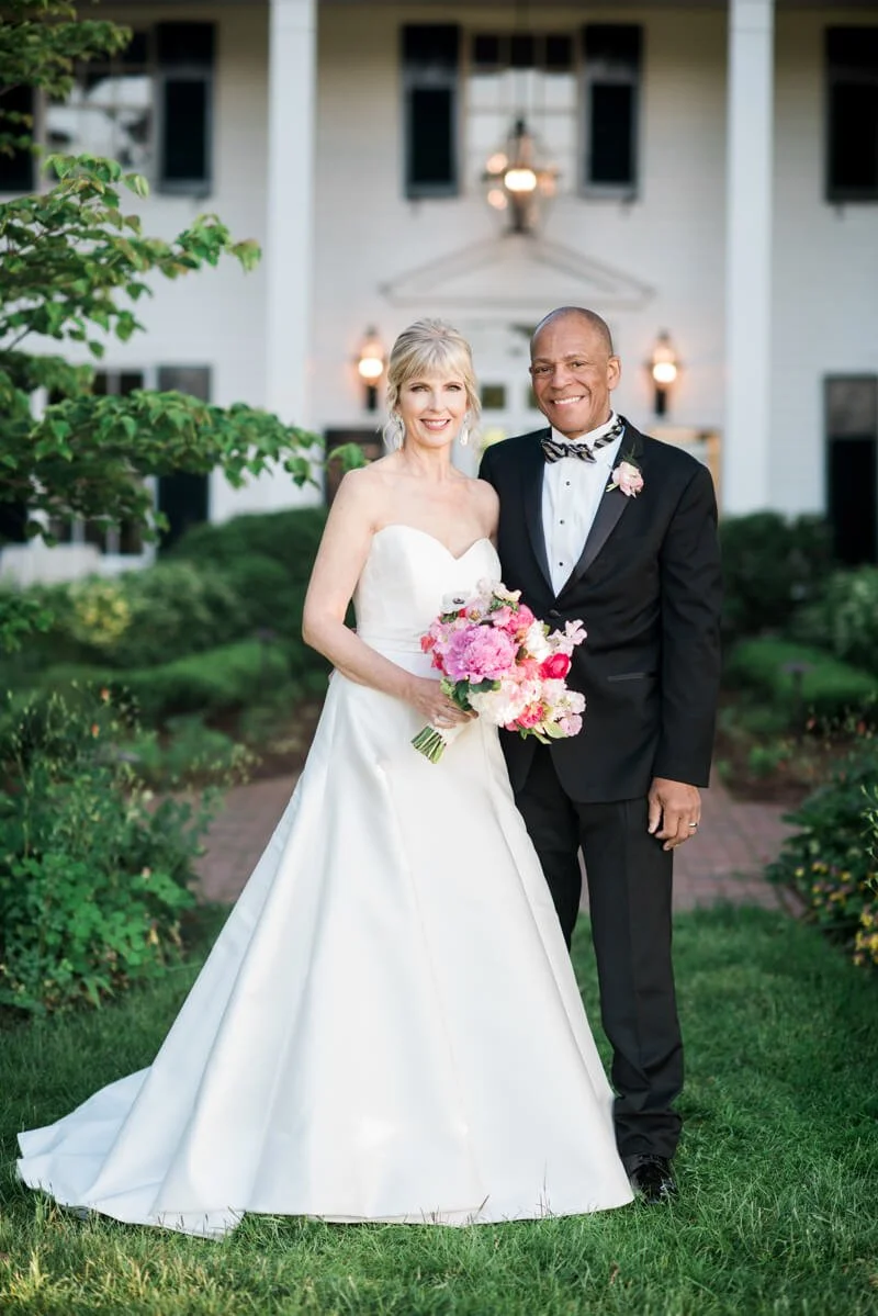 I visualized a wedding that was elegant, fun, and memorable -- and I did not want it to be like every other wedding I'd been to. Although I've been married before, I'd never done the whole wedding dress/bridesmaids/wedding thing and that was important to Carl and to me. My mother is deceased, but when she was alive, we loved to visit Fearrington when she would visit. Each time she came to town, we'd go to Fearrington for brunch and she would purchase a grapevine ball with lights from Dovecoat and would ship it to her home in Arkansas. Her entire yard was covered with lighted Fearrington grapevine balls hanging from the trees. Her yard was this huge, botanical garden like oasis that she'd created over the years. it was gorgeous. So I knew I wanted to incorporate these elements in the Fearrington Barn. My vision was to transform the barn into a garden at night with white lights, lots of greenery, and lots of peonies and hydrangea. I think it was truly a design success thanks to Cheryl-Anne and Mary, all of the vendors, and the entire Fearrington team! As a 59 year old bride, I knew that I wanted to take in every moment of the week before and the day of the wedding so that I could remember it and not have it fly by. I was very calm and - with Cheryl-Anne's help - there was no stone left unturned or glitch -- at least not that I saw! I also knew that I wanted a band, specifically Liquid Pleasure, and that turned out to be perfect as well! I asked you to do the photography because I'd loved a friends photos and you'd done her wedding as well.
