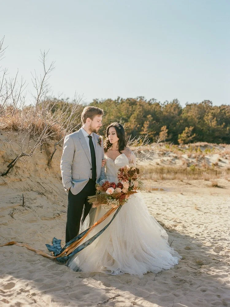 We love this wedding inspiration from the Outer Banks, North Carolina. It's the perfect look for fall weddings.
