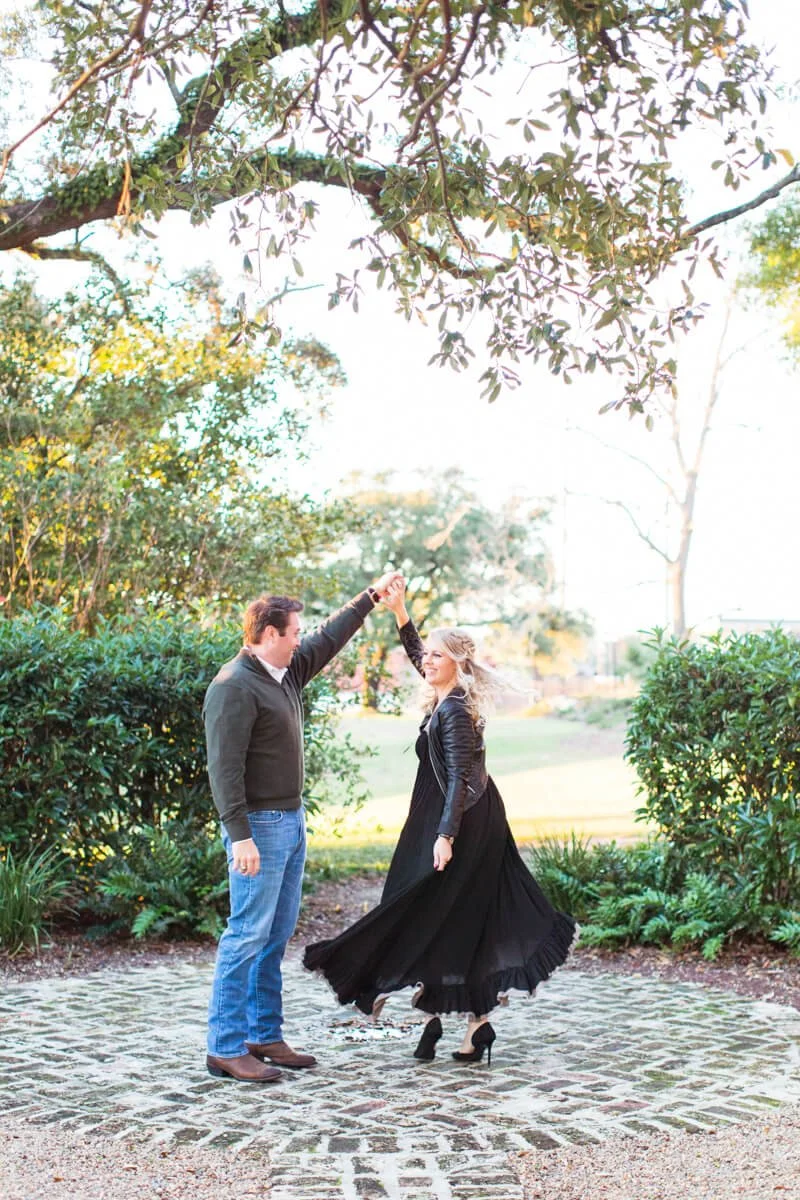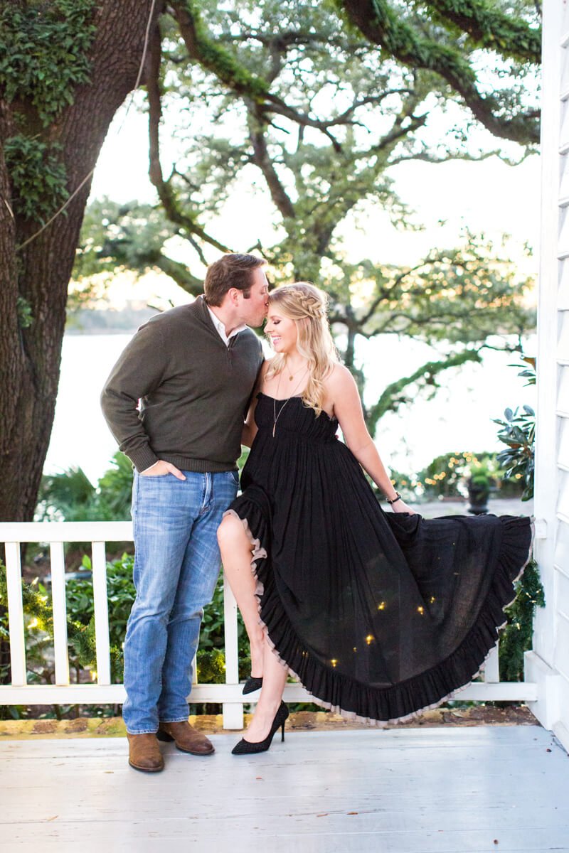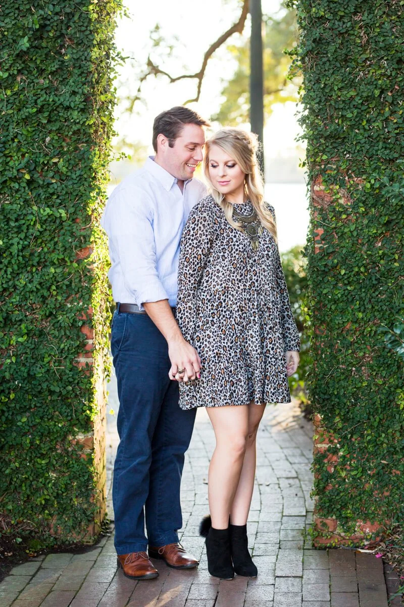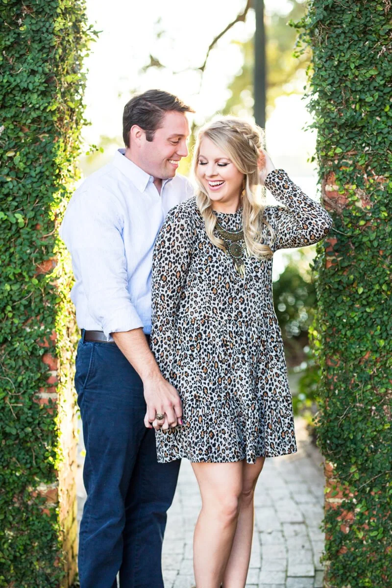 Bride to be Bree is a talented calligraphy & illustration artist located in Myrtle Beach, South Carolina. You can see her work in the album below for her own custom save the date! When it came time for her own engagement photos her and fiance' Scott chose the up and coming town of Georgetown, South Carolina- particularly the historic Kaminski House which sits right on the water front. Bree and Scott are a fun loving couple who bring out the absolute best in each other! As you can probably tell by her outfit choices, Bree has a eye for pattern, texture and being bold. We love that she chose to pair such a historic venue with a cheetah patterned dress!