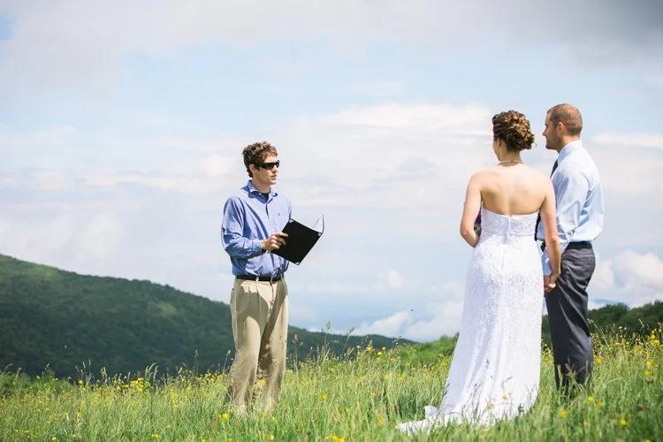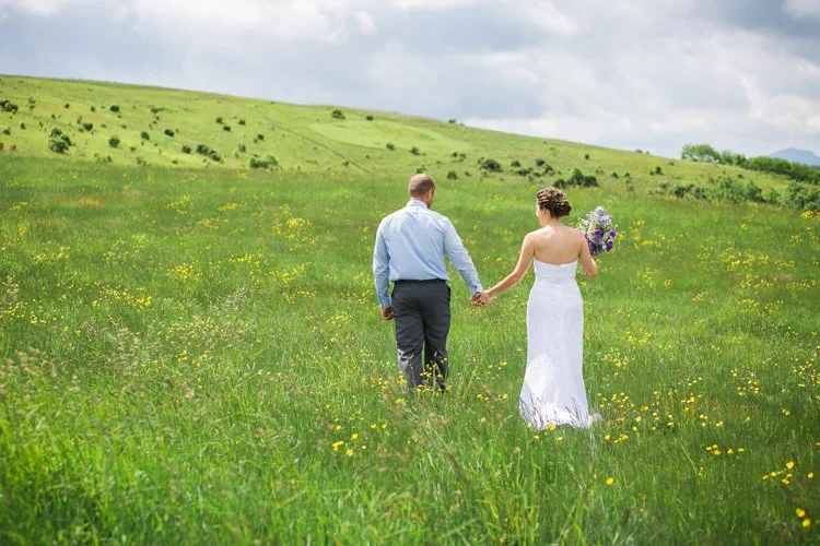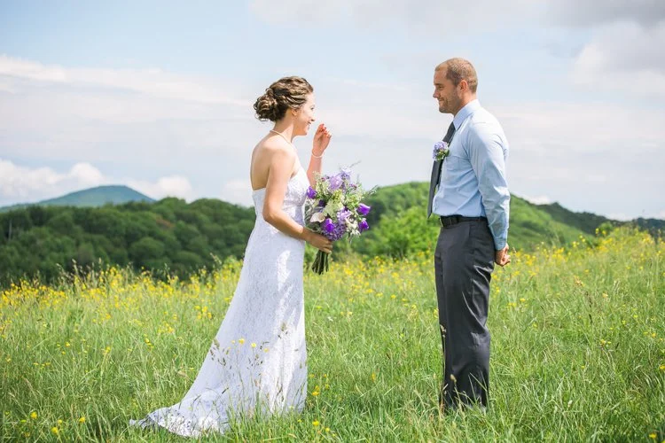 Three and a half years ago I met the love of my life, Josh, in a place I wouldn’t have expected – the gym! I was looking to amp up my exercise routine so I joined a local fitness team that he happened to be a member of. At first I felt a little intimidated and knew I could use some guidance. Josh was so welcoming and had this genuine kindness about him that seemed so rare in the fitness world, so of course I asked him for help! It didn’t hurt that he happened to be really, really handsome! From the get-go there was a crazy connection between us. It felt like we had known each other for so long, like we had been always been the best of friends. He was so easy to talk to, laugh about inappropriate things with and complain about working out to! We spent almost every day together just talking and getting to know each another on a really deep level. It didn’t take long for us to fall in love!Josh and I knew we wanted our wedding to be low key, simple and romantic so eloping was perfect. With North Carolina being our first choice, Asheville Adventure Weddings just made sense! Meghan suggested Max Patch and it was absolutely beautiful! We couldn’t have picked a better spot to share our vows and express our love for each other.The proposal was really sweet! Josh knew how much I loved the beach so he planned to pop the question at my favorite place, Anna Maria Island. He told me after that he wanted to wait until I suggested a day trip so he wouldn’t look suspicious! One Saturday came and I asked if he wanted to make the trip and spend the morning shell picking and relaxing. Of course he said yes so off we went! After a few hours it started to get really hot so I suggested that we leave a little early so we started packing our supplies. I noticed a pretty big pile of seaweed next to my towel that hadn’t been there earlier. At first glance I saw a small box peeking out of the mound which made me really curious! I wanted to know what in the heck it was so I smacked the seaweed off with my towel (I’m girly and seaweed is gross!) and discovered a tiny treasure chest sitting in the sand! My first thought was that we had found actual treasure, but I was a little nervous to open it because what if there was something weird inside?? Josh wouldn’t open it so I carefully unhooked the little latch on the front and flipped the lid open. At first all I could see were tiny gold coins so for a second I thought we had actually found treasure! But then I saw the ring, tucked perfectly in the center of the coins! I turned to look at Josh and he was already down on one knee. We made eye contact and then he said, “Amber, you’ve shown me true happiness, you’ve shown me true love. Will you do me the honor of being my wife? Will you marry me?” ~ Max Patch NC Mountain