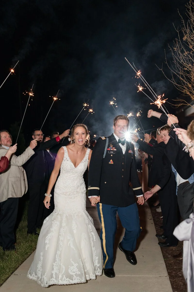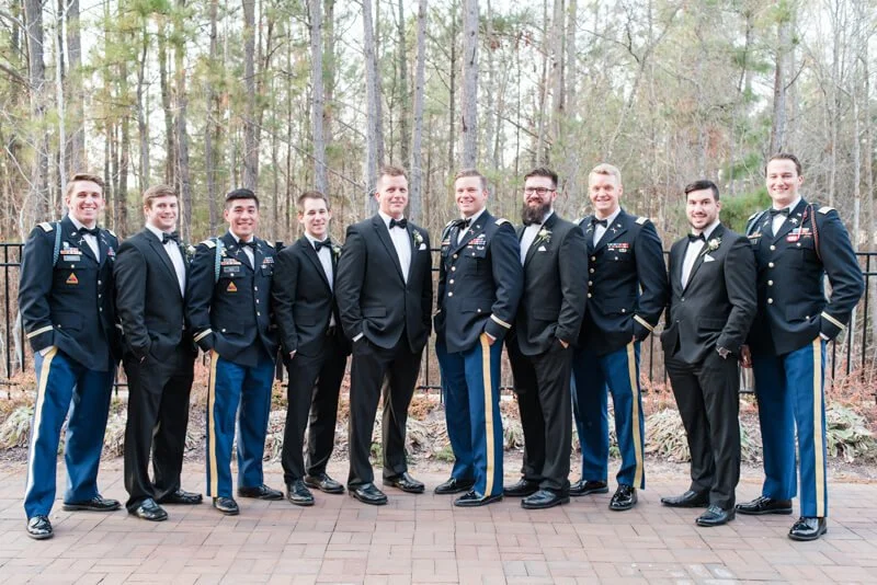 Bridget and Kevin’s gorgeous champagne inspired Military vow renewal at Noah’s Event Venue was an amazing end to our 2017 year! After having a very intimate ceremony on 12/30/2016, before Kevin's deployment. The couple wanted to celebrate their one year anniversary by holding a lavish wedding with friends and family from all across. Even with the temperatures only being in the low 40’s, Bridget and Kevin went outside not only for their couple session but also for formal photographs! They seriously are the best!