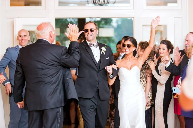 After the ceremony, the bridal party hopped on a trolley and headed to the marina where they boarded a beautiful Hatteras boat for the ride to the country club. As you will surely see from the photos they had a great time on the ride down the river. Once the guests greeted the bridal party it was time to party! Shannon changed into her reception dress and she and Miles never looked back from the dance floor!