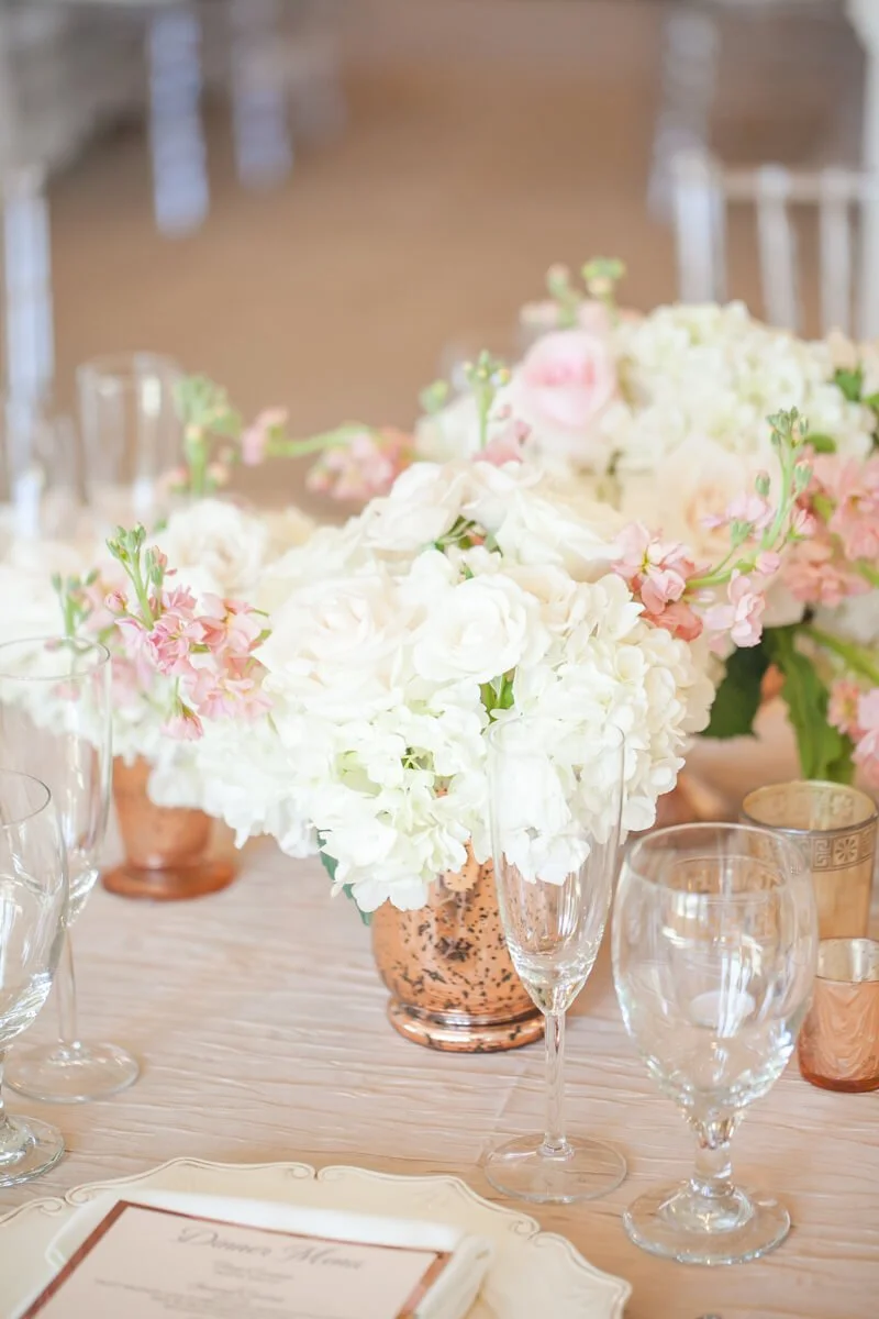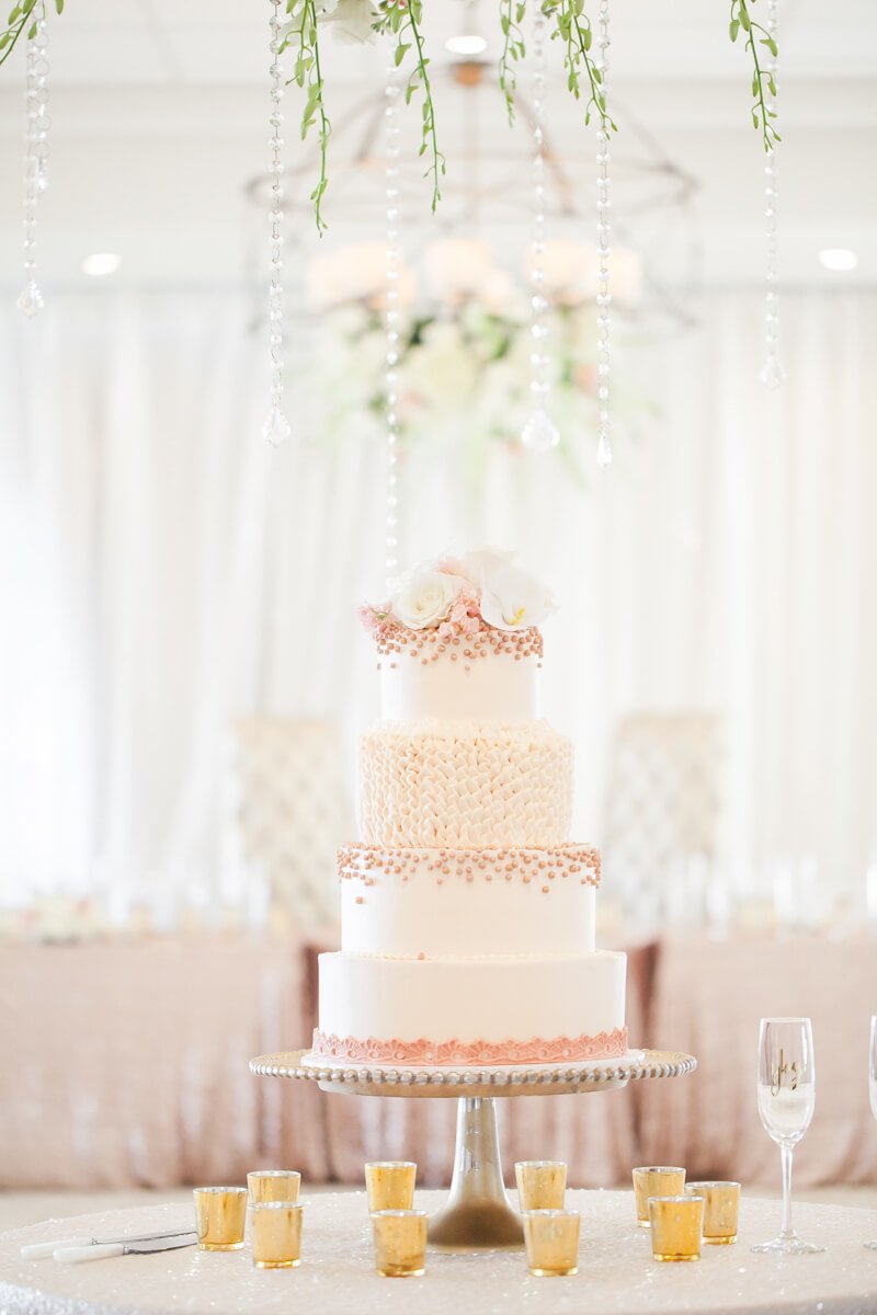 Tori and David had a fairytale of a wedding day. With a custom tree arbor adorned in fresh blooms and hanging candles, it was the perfect piece to create that wow factor. Once guests entered the reception, they were immediately greeted with hanging floral chandeliers, pink and gold decor, and the most beautiful and delicate pink cake. The day was gorgeous, but it wouldn't be complete without their furry companion arriving in their getaway car.