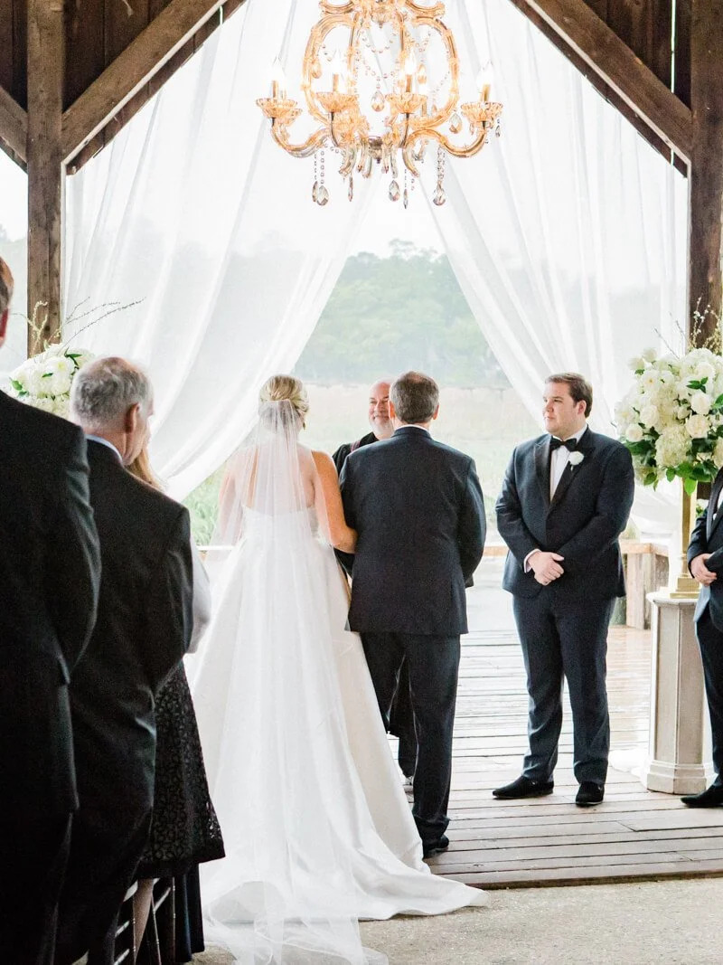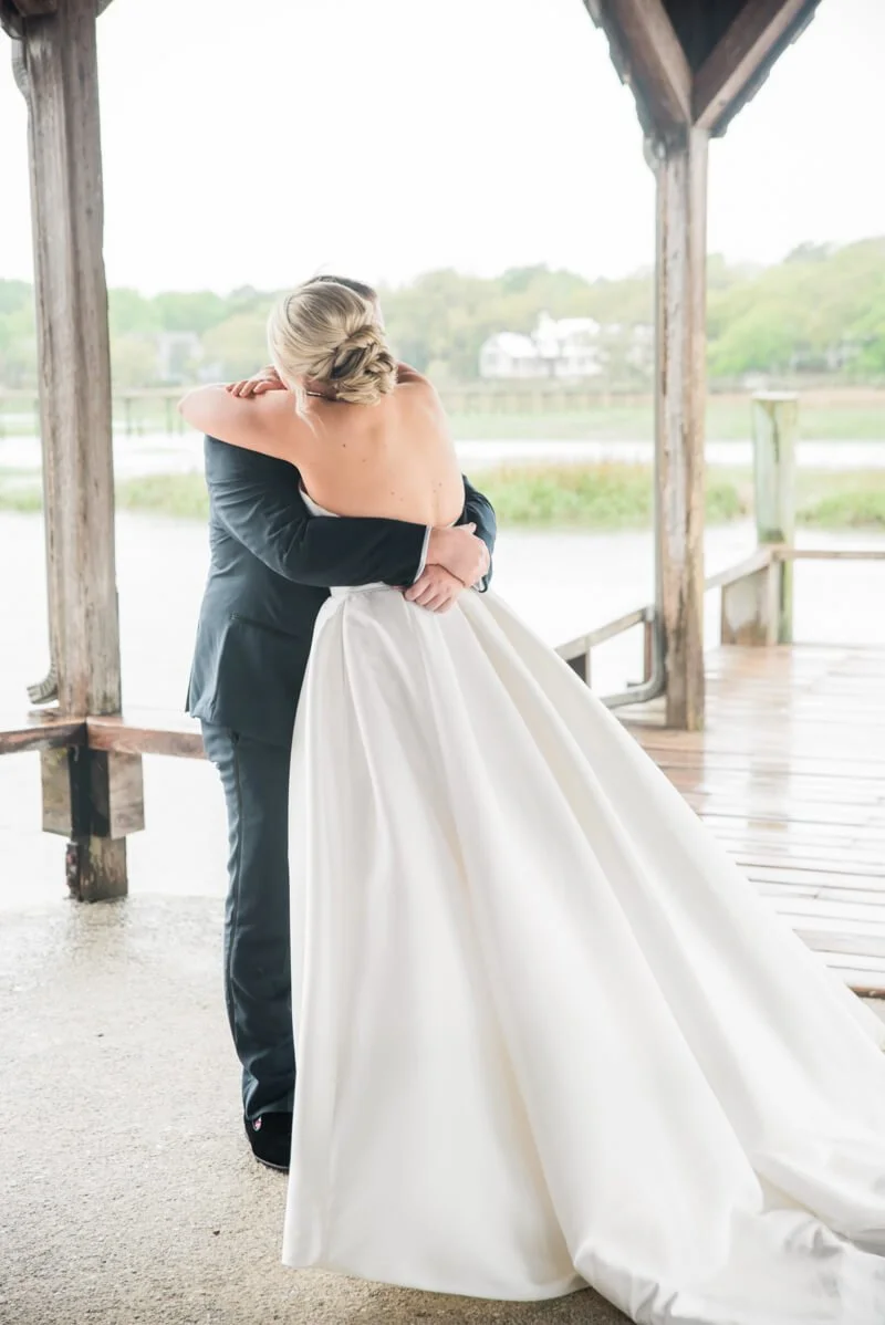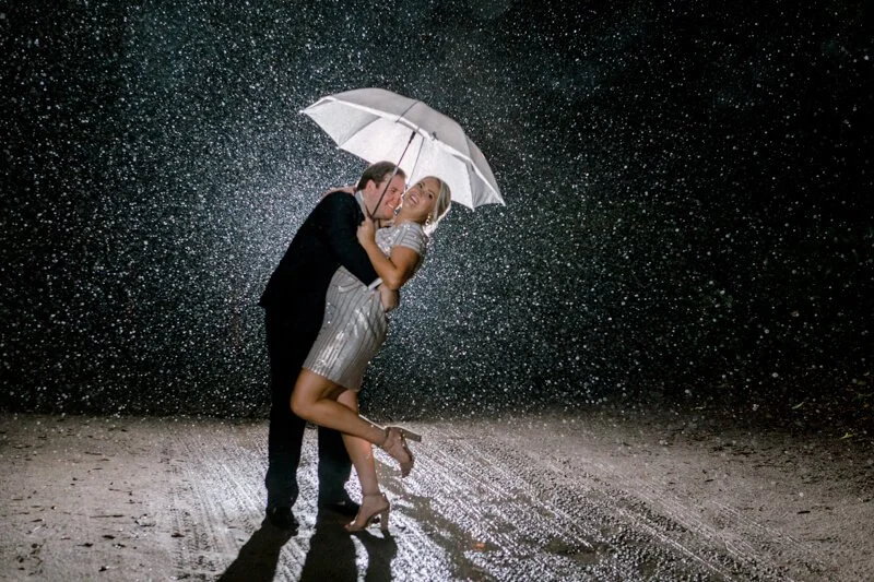 Jessica and Austin's wedding was planned with a ceremony on the front lawn of Boone Hall Plantation, and reception to follow on the Cotton Dock. However, God had another plan altogether and sent a day full of rain! While this might have thrown a lot of couples for a loop, Jessica and Austin and their entire families never showed the slightest bit of disappointment. Every vendor involved rushed to put plan B into action, and the entire wedding came off beautifully. We didn't let the rain stop us from getting some truly epic photos of the bride and groom, either!