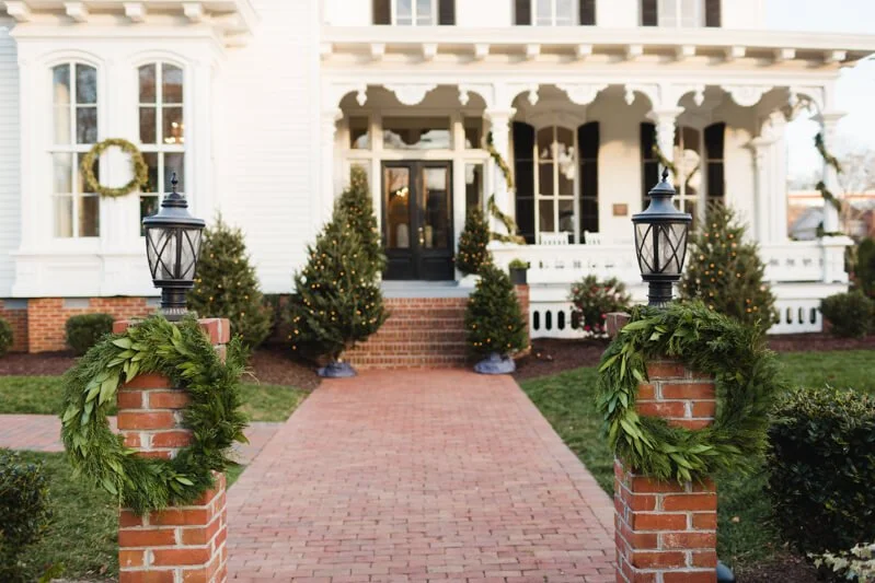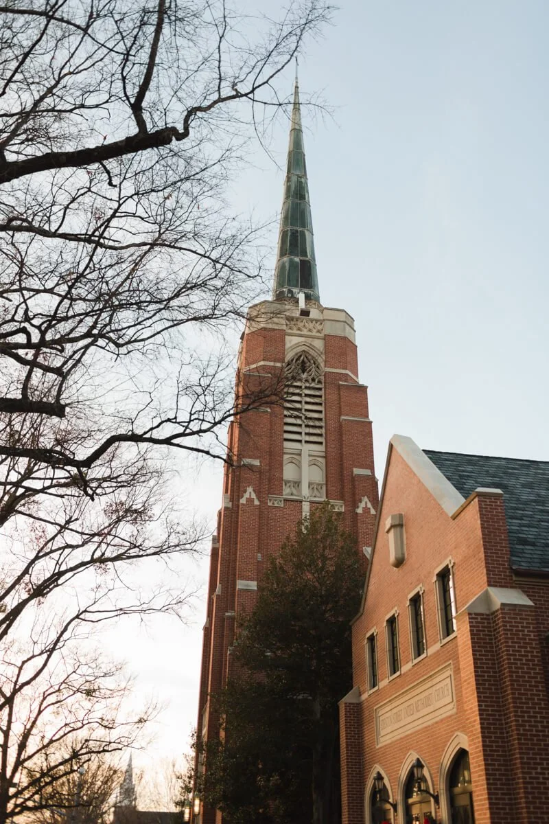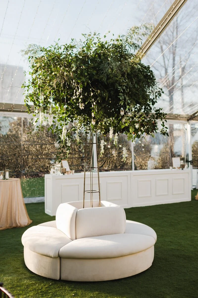 Elizabeth and Si were married at Edenton Street United Methodist Church and celebrated their reception at the beautiful and historic Merrimon-Wynne House in downtown Raleigh, NC last December. The Christmas themed wedding featured live Christmas Trees, a tent full of twinkly lights, lounge areas with custom trees filled with orchids and votive candles and a jingle bell exit!
