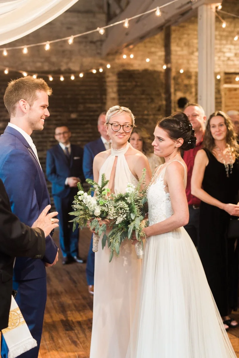 Ryan and Caryn choose The Stockroom because they love the exposed brick, the wood, and the character in the building. The venue is so beautiful by itself that they don’t feel like they needed much decor. We couldn’t agree more! The Stockroom made a fantastic backdrop for these two love birds!