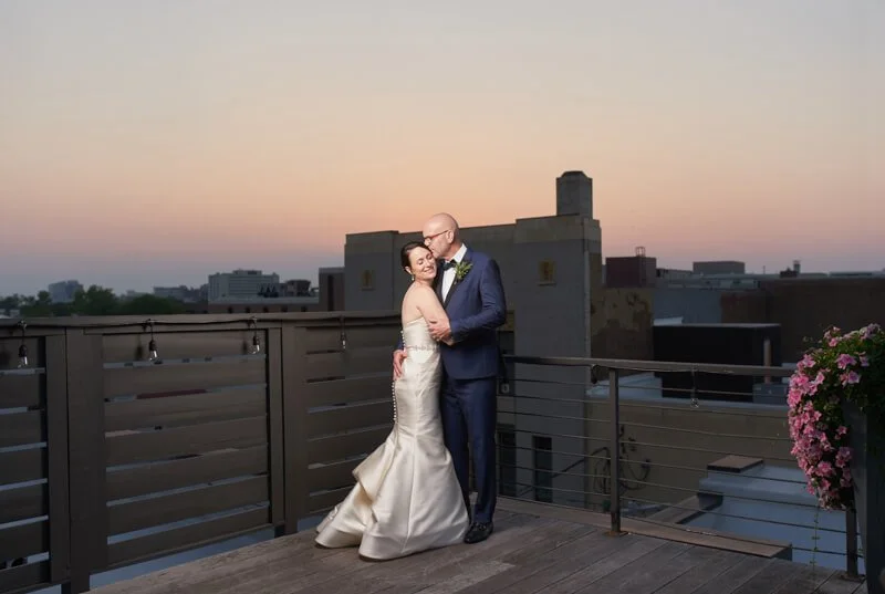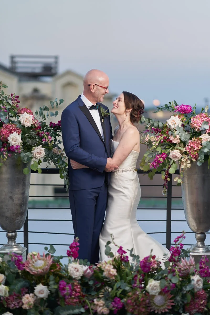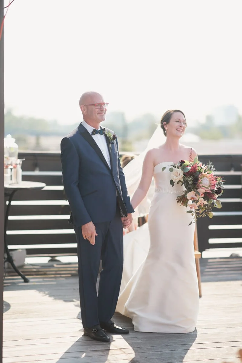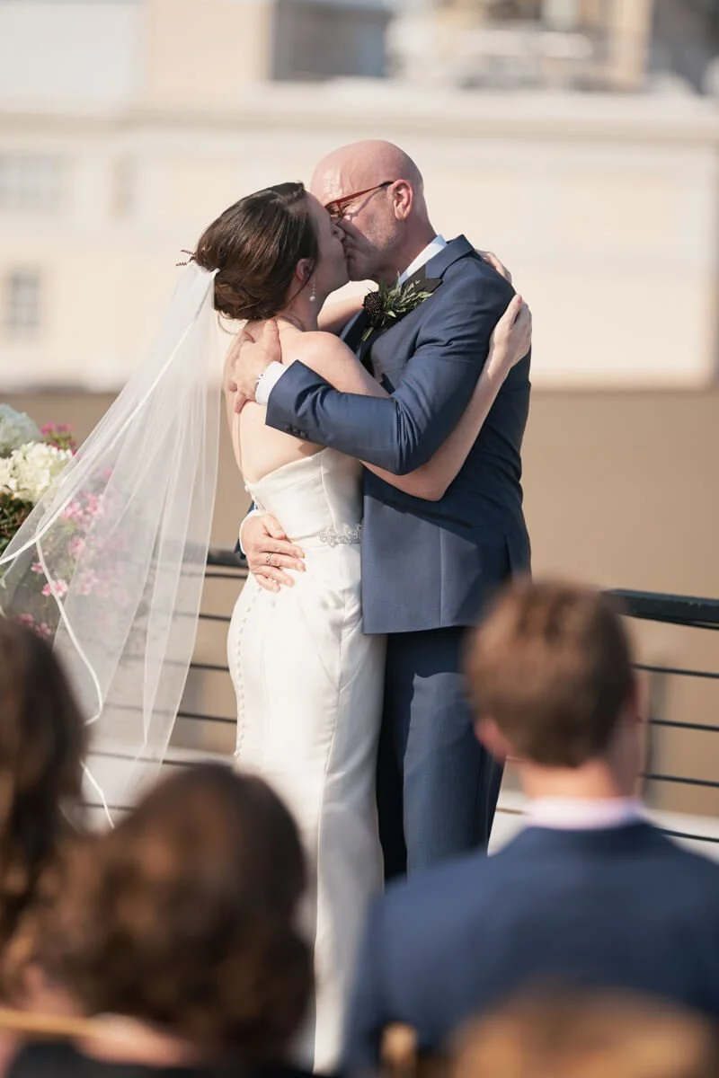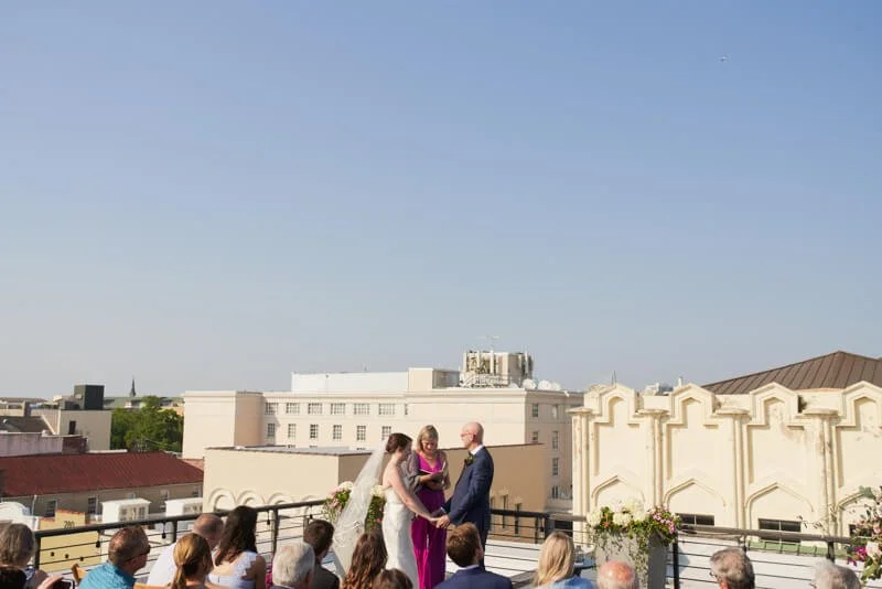In a wonderfully non-traditional ceremony, Sarah and Jeff were married on the private rooftop of the beautiful Restoration Hotel in the heart of downtown Charleston, South Carolina.