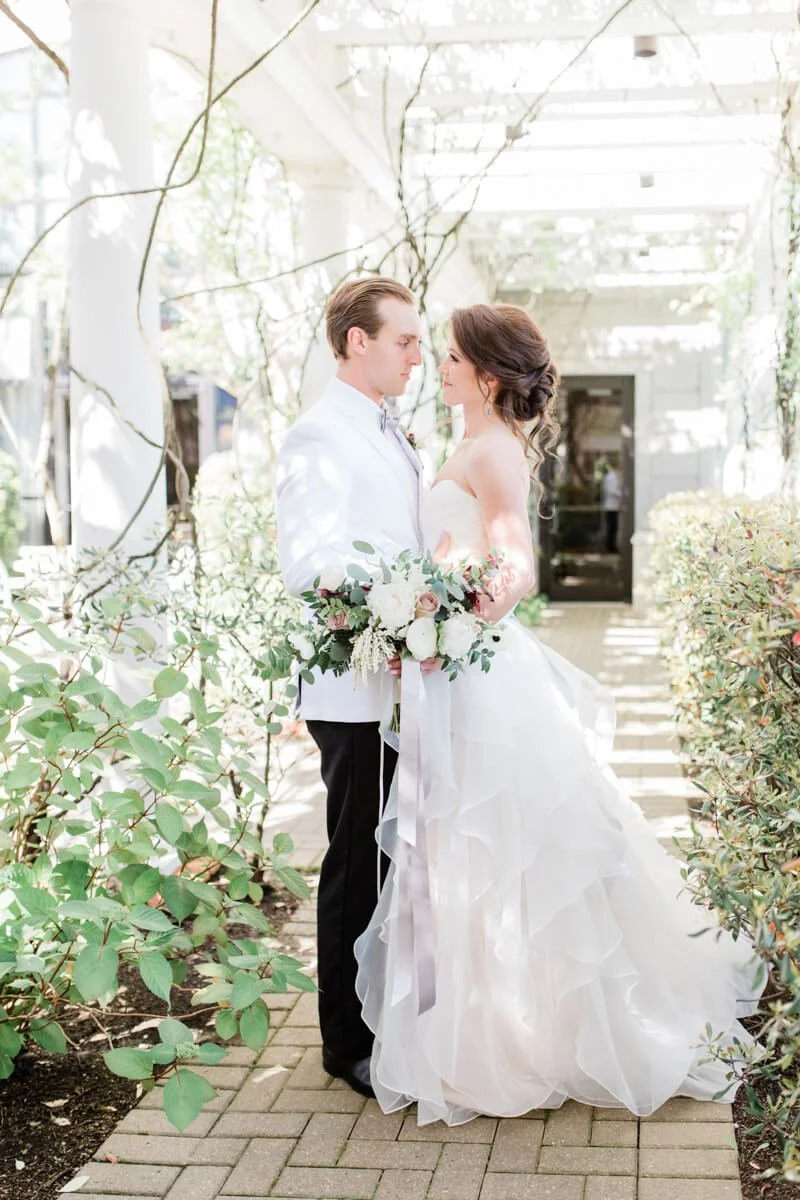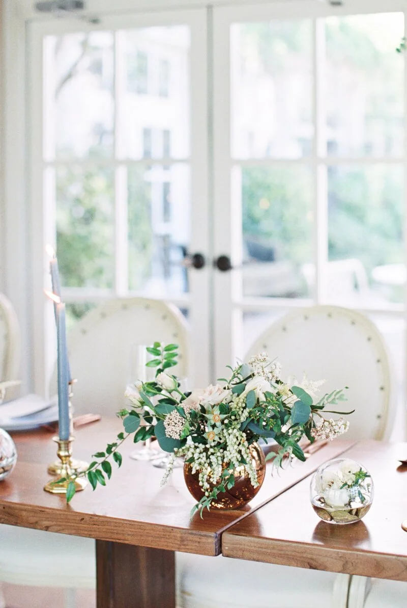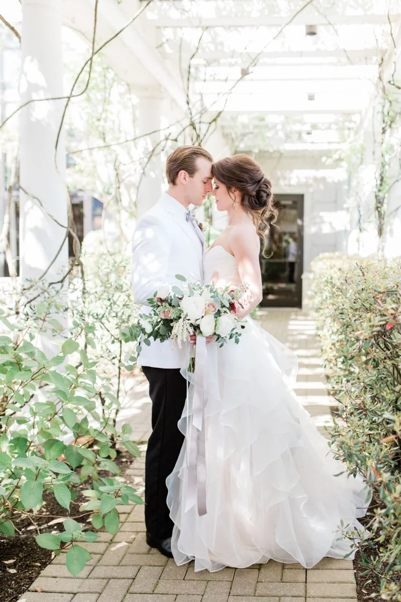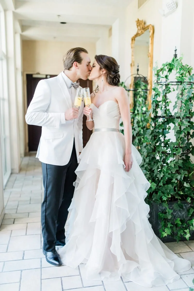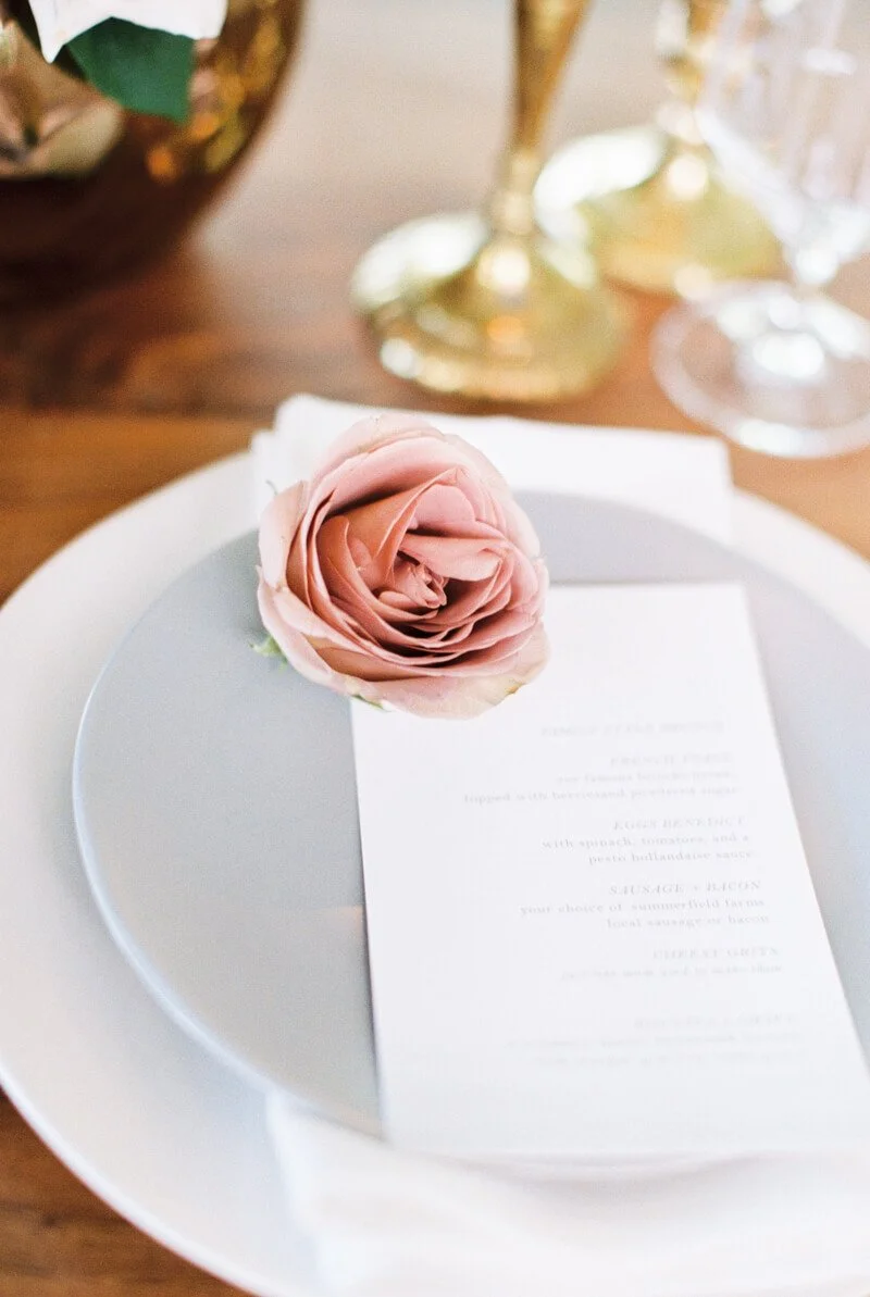 The O.Henry hotel, in Greensboro North Carolina, is a classic landmark with an intimate garden, perfect for hosting a small romantic wedding. Every wedding is unique, but to really stand out they incorporated a romantic brunch wedding inspiration theme. Brunch is almost unfair to other meals, with all of its yummy foods! This shoot had a donut bar, southern shrimp and grits, and a biscuit bar, all made in house by the O.Henry's pastry and head chef. When having brunch, you can’t leave out the perfect morning cocktails, mimosas and Irish coffees. They made sure to include both.