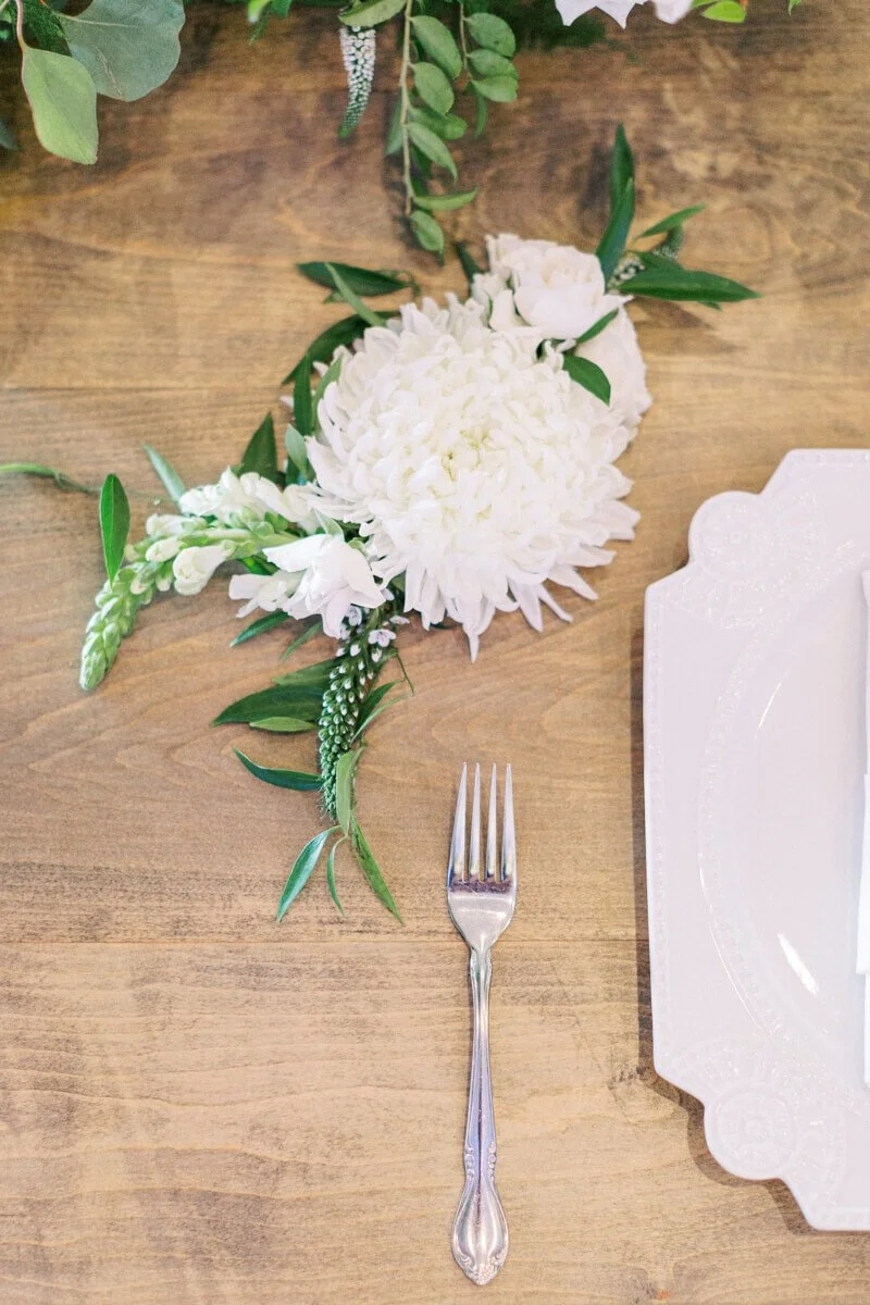 Inspired by a gentle garden feel the romantic greens and soft white hues matched the gentle personalities of the bride and groom.