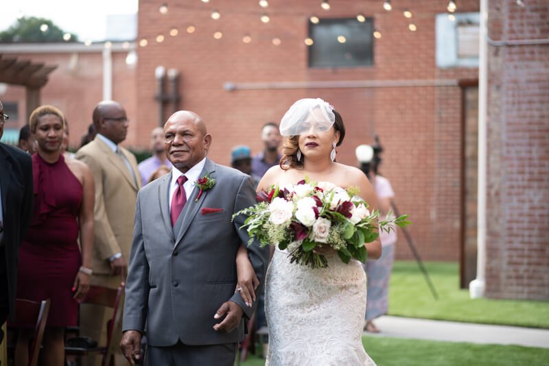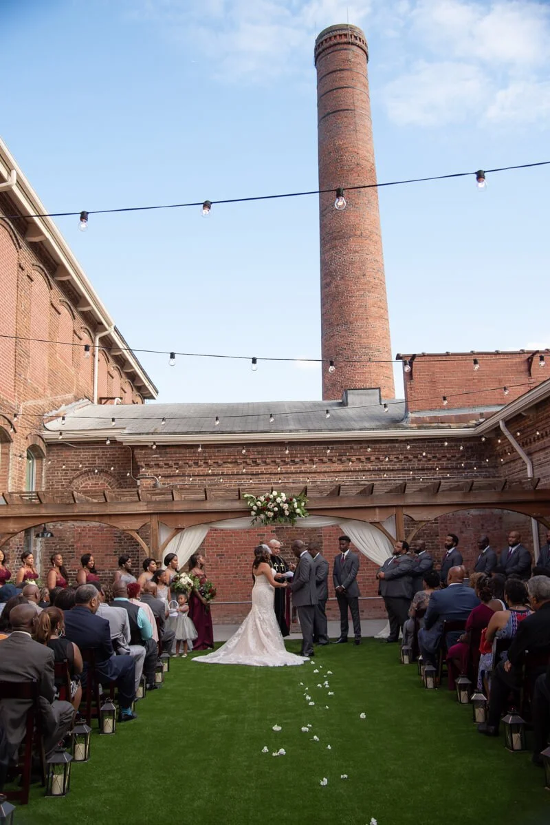 Hair Stylist: Twisted Mane Salon//Event Planner: Anew Consulting and Events//Beauty: The Kween Experience//DJ: Infamous DJ Streetzz//Bakery: Whipped 2 Perfection//Caterer: Cook Shack Catering//Tuxedo and Mens Attire: Mens Wearhouse//Dress Store: Carolina Bridal World//Floral Designer: ABBA Design//Event Venue: The Cloth Mill at Eno River//Photographer: Heather Gunter Photography