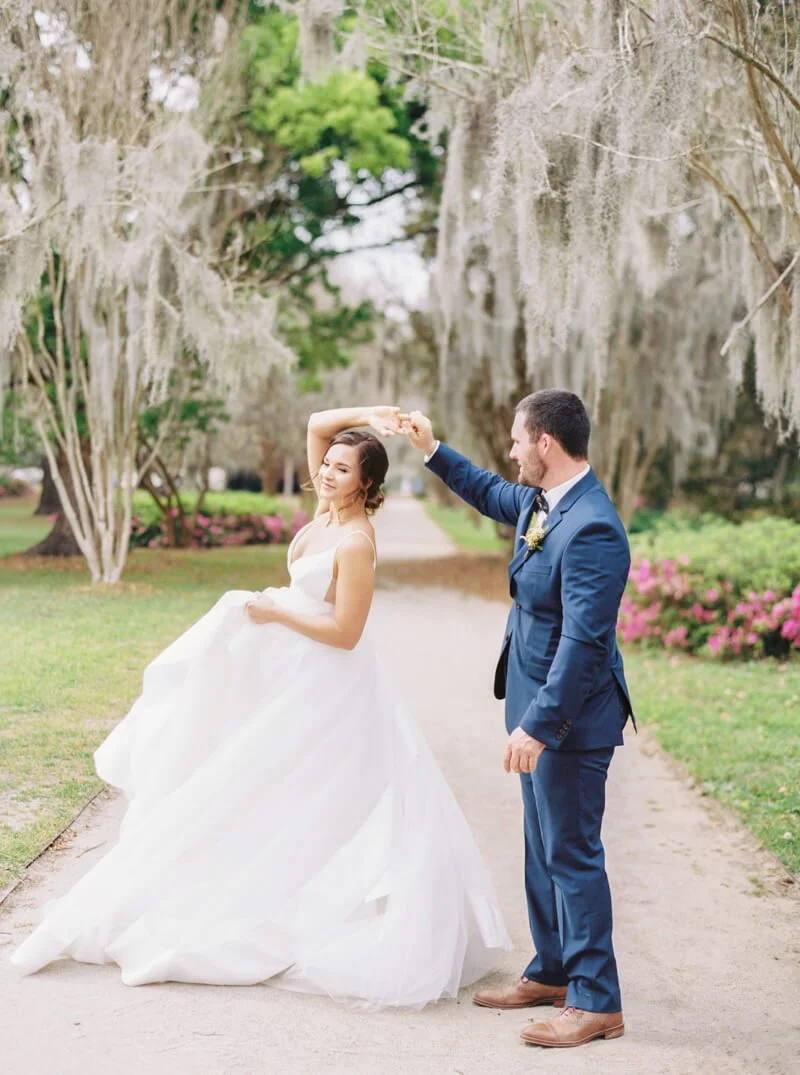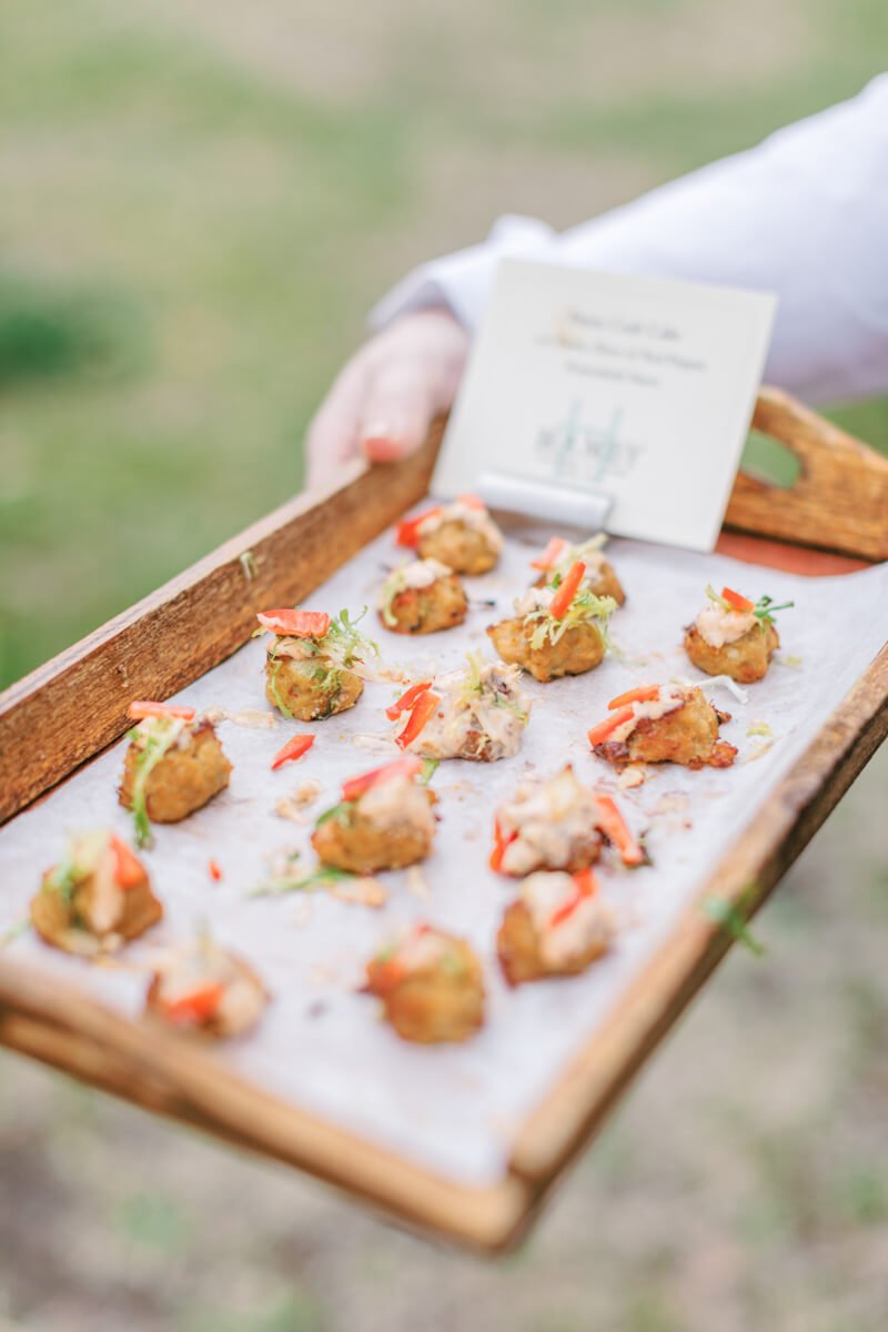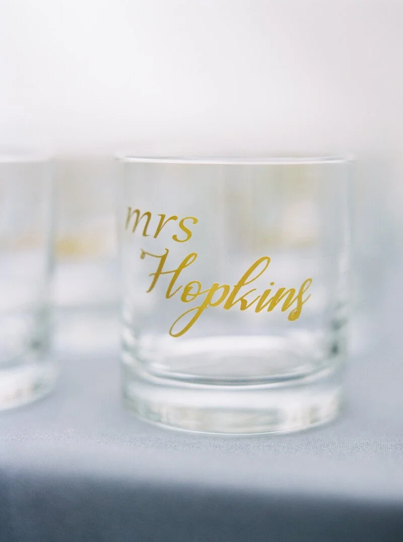 The reception took place at Runnymede Plantation which in total ruin and VERY romantic. Cocktail hour was under a beautiful tree on the Ashley River, and since they did a First Look, the newlyweds got to mingle! Guests were then welcomed into the reception area by picking up an Old Fashioned glass with their name on it.