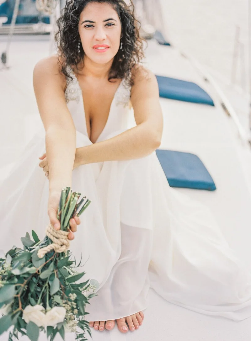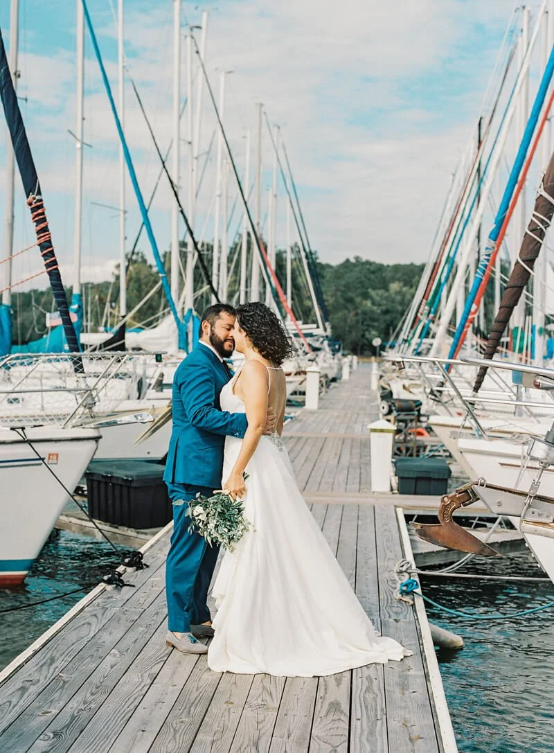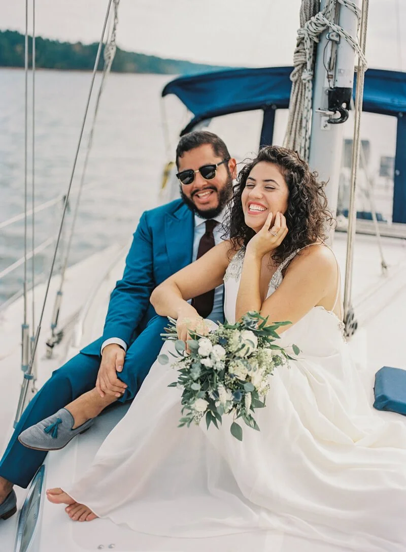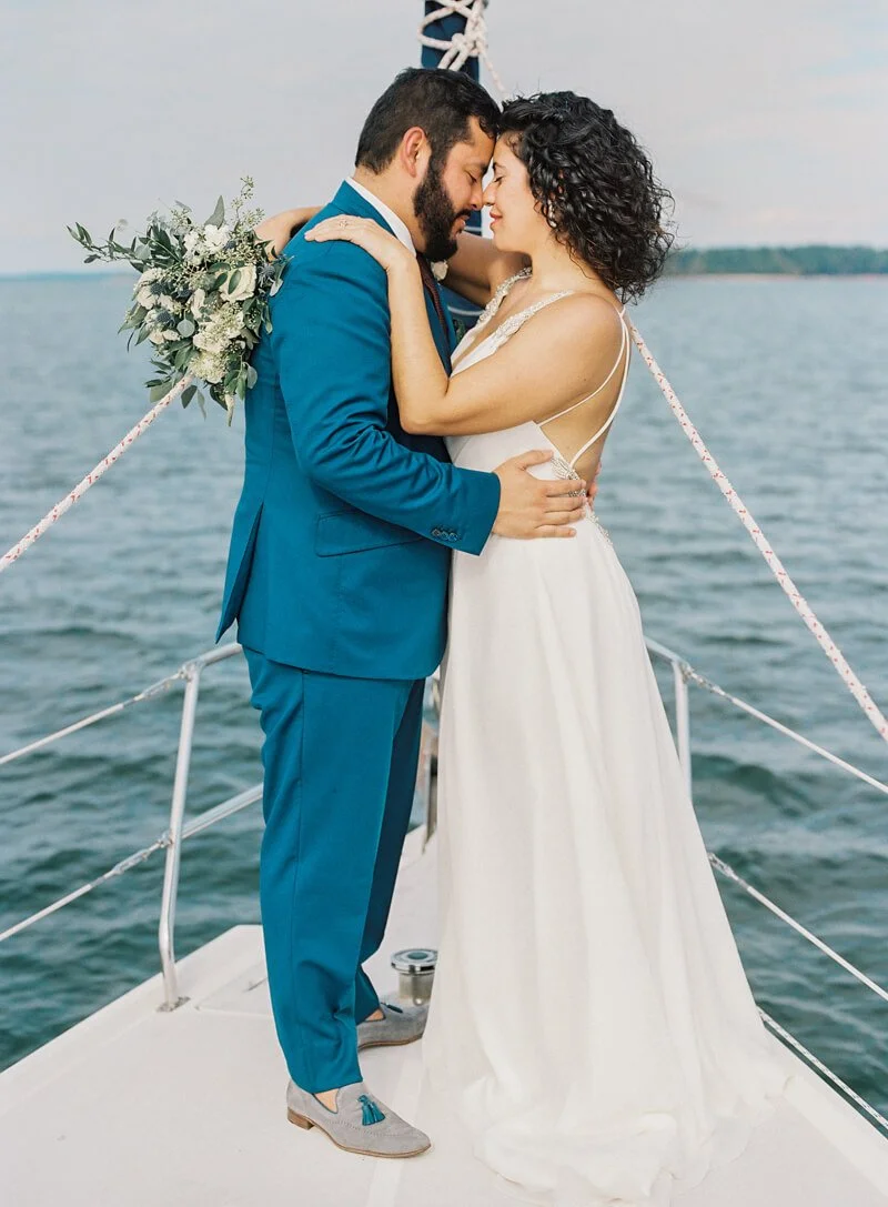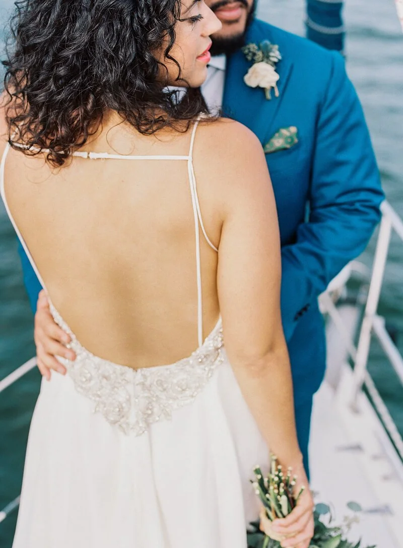 Liz and Nate met a few years back and fell in love almost immediately. Their love for travel took them all across the world, but their favorite was just out on the big blue. Since Liz is in the Coast Guard, it was only fitting to showcase them on their wedding day in her true form; on her sailboat. With the salty waters just ahead, a warm head and heart, these two were meant for adventure and it is just contagious. Fall in love like we did.