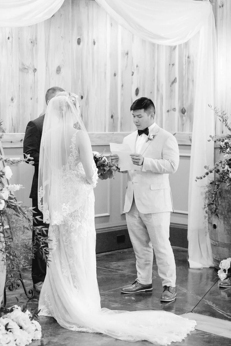 However, the storm surge didn’t dampen Morgan and Jack’s mood. They were all smiles and you could feel the love flowing around the venue. After squeezing in a few shots of the groomsmen before the storm, we made our way back to the groom’s quarters and it was time for him to read his love letter from Morgan. I don’t think there was a dry eye in the room as we witnessed his reaction to her letter!