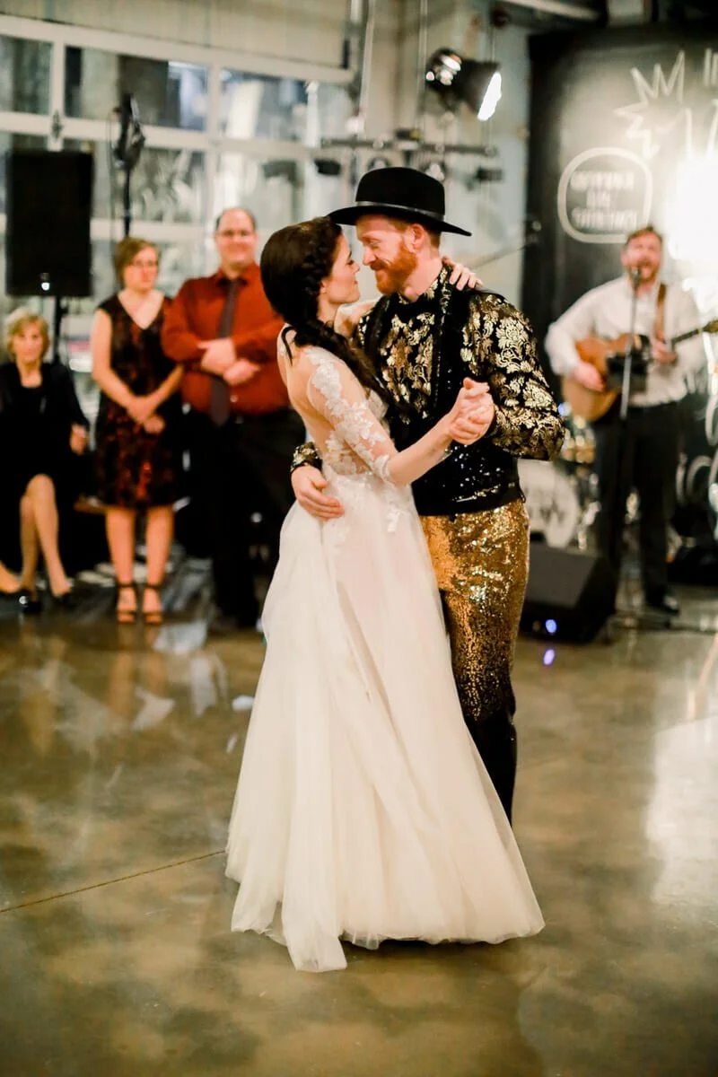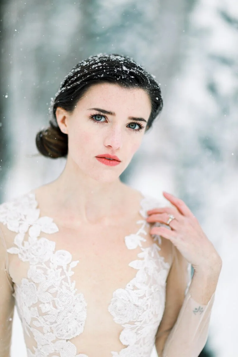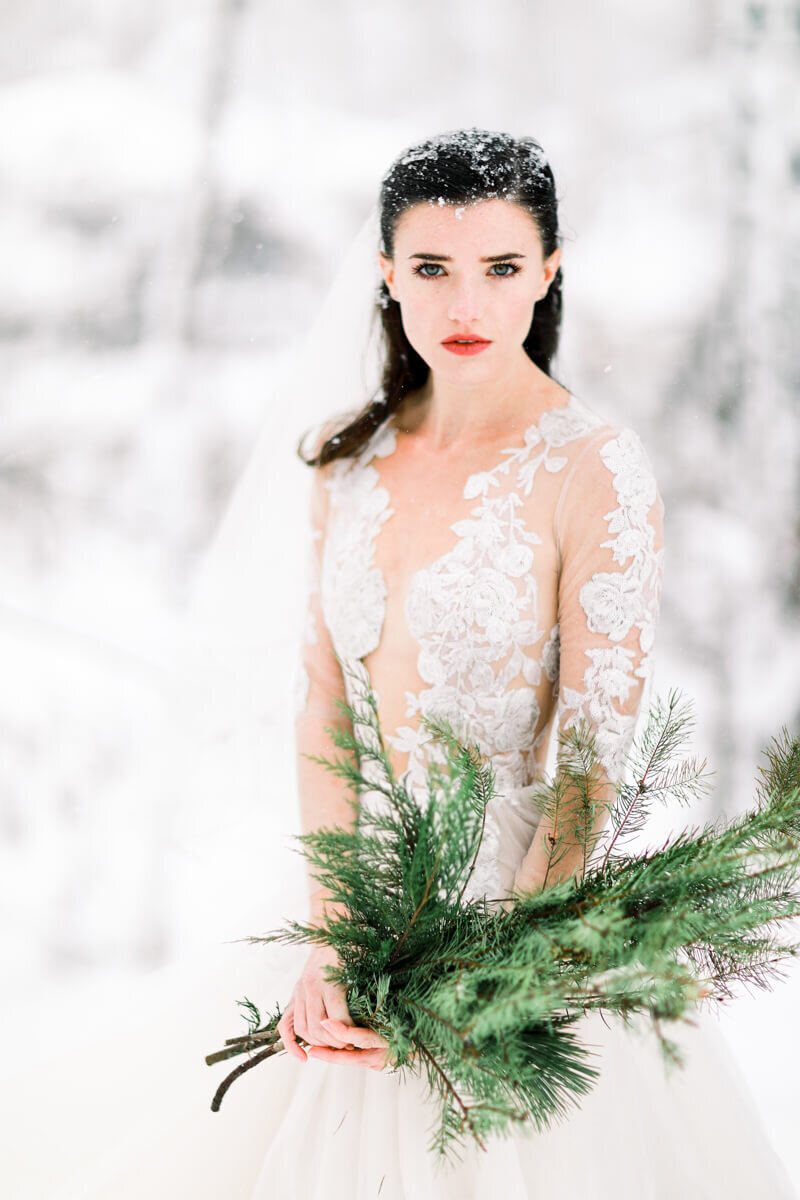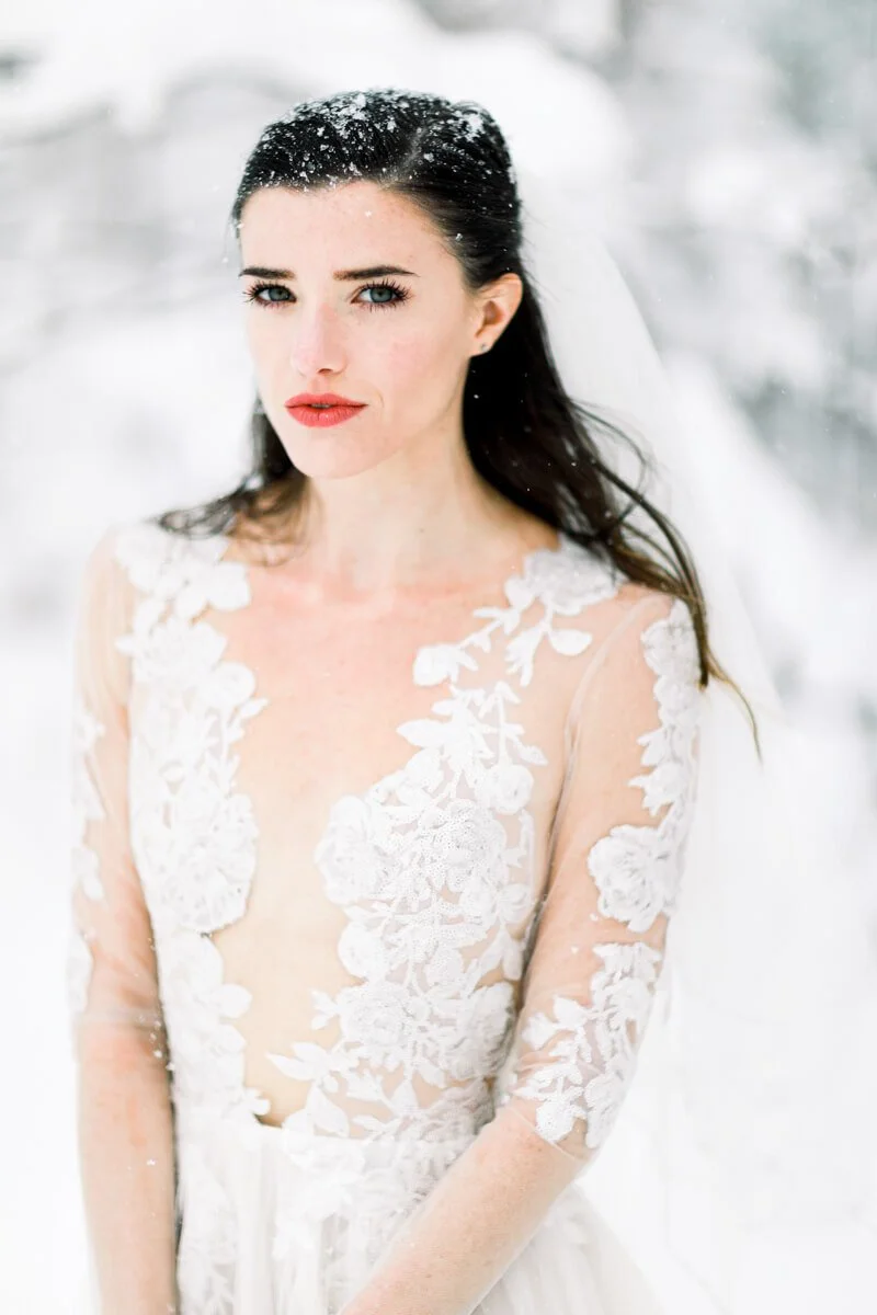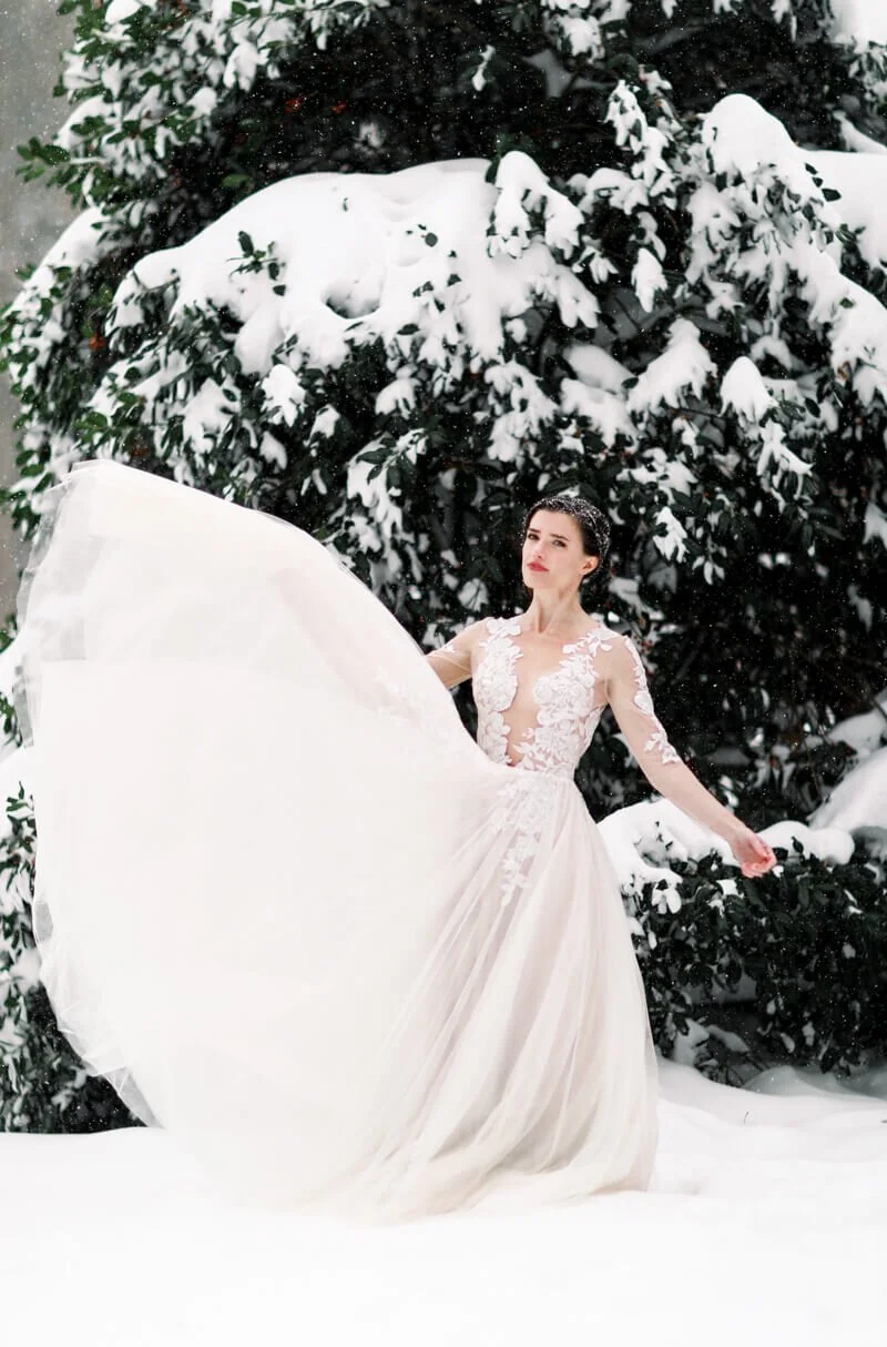 Chloe had her bridal portraits schedule for the day that we had the biggest snowstorm of the year, and Neil drove her across town in feet of snow so that we could do this gorgeous snowy session. Since he was there, he decided to bring along his wedding day outfit (he's an American Ninja Warrior, and his competition costume is gold, so his wedding outfit was black and gold) for photos. He didn't want to see her in her wedding dress before their New Year's Eve wedding, but we managed to get beautiful shots of the couple together while he kept his eyes closed.