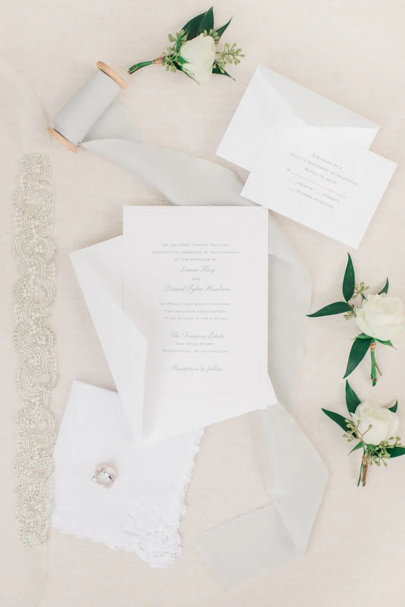 What a perfect day for an outdoor wedding! Laura and Tyler’s wedding took place at the beautiful Duncan Estate in Duncan, SC. Everything about this beautiful location just screams Southern elegance! The gorgeous white house with pillars, the gardens surrounding the grounds and outdoor ceremony space and even a bamboo forest! Laura and Tyler could not have picked a better location for their intimate ceremony and celebration of their marriage.