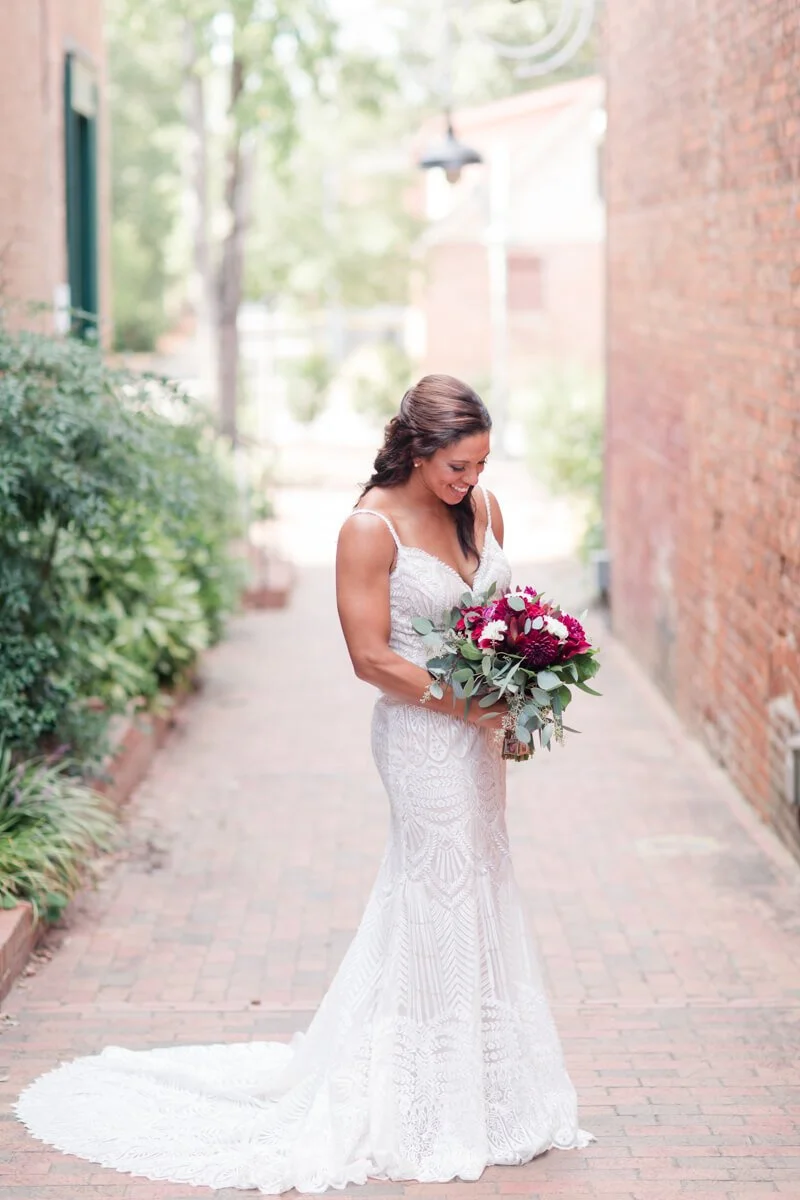 Ceremony Location: The Sunrise Theater//Event Venue: 305 Trackside//Cake Designer:C Cups Cakery//Shoes: TOMS.com//Dress Store: New York Bride and Groom of Raleigh//Cinema and Video: Sandhills Videography//Caterer: The Leadmine//Lighting: Ward Productions//Beauty: Retro Studio//Floral Designer: Jack Hadden Floral and Event//Photographer: Jennifer B. Photography