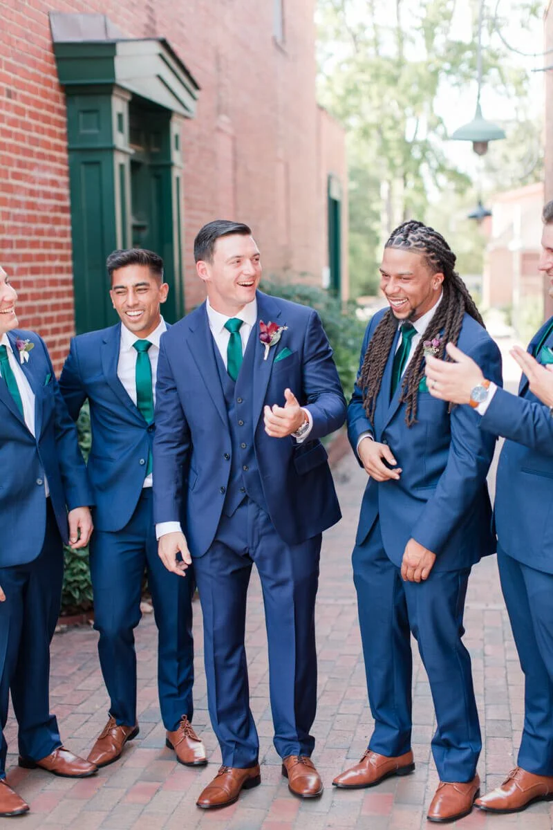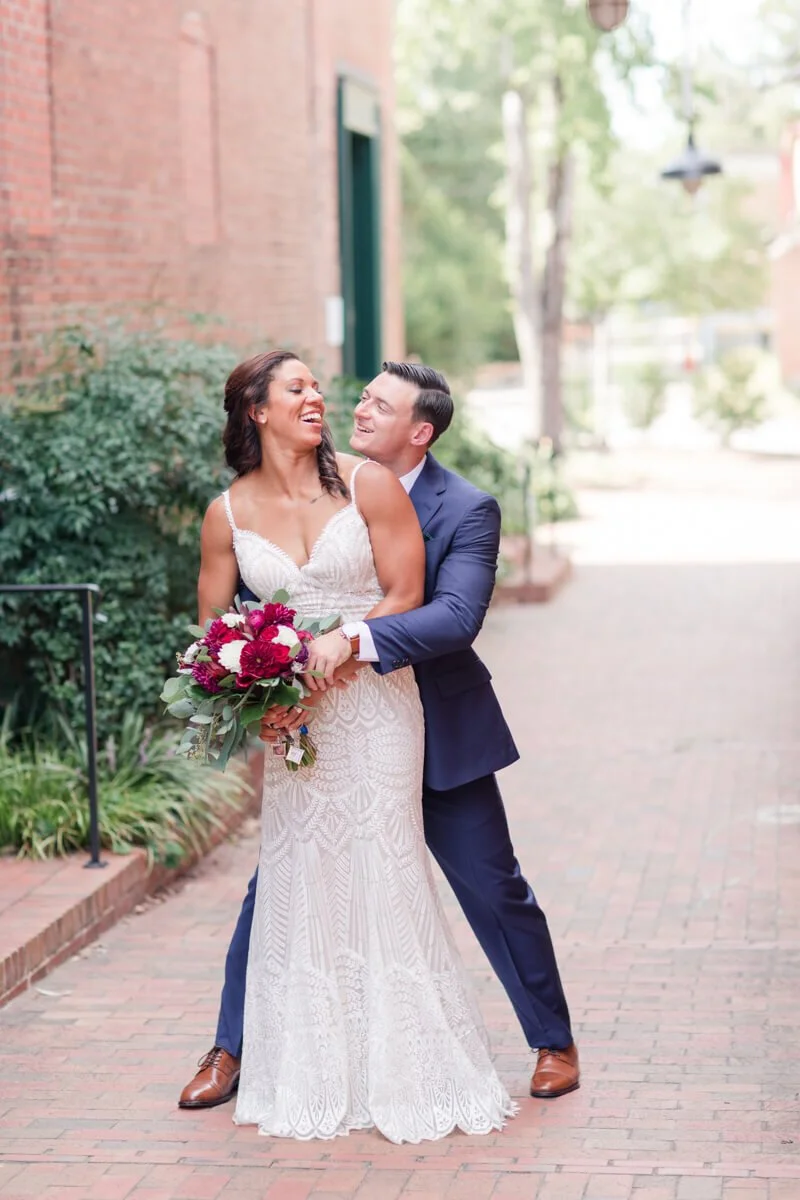 Their wedding day was simply amazing ... Elyse is one of the most relaxed brides...and I think it was her type A personality that had everything worked out and scheduled that helped her stay so calm ... she was ready. They started off at Retro Studio bar with mimosas, hair, and makeup. Then they walked to the Jefferson Inn to get ready. Jacob met her outside for a sweet first look. Then off for some portraits around Southern Pines. They were greeted by just about every stranger with a big congratulations!