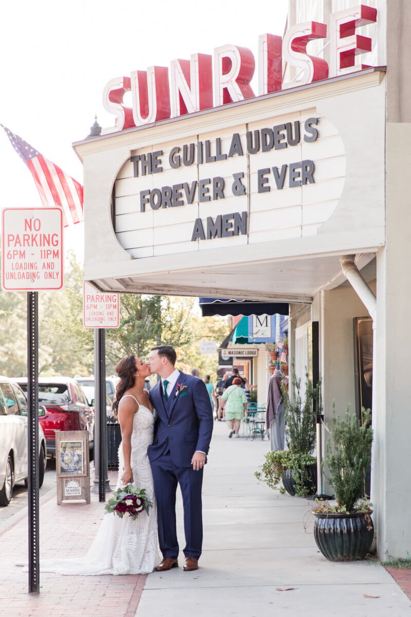 The site of the wedding was outside The Sunrise Theater. The theater placed, in big letters, "The Guillaudeus. Forever and ever, Amen". Elyse's brother walked her down the aisle and gave her away. It wasn't until Elyse met Jacob during the ceremony that she became tearful. The day was perfect and the ceremony was one of my favorite parts of the day.